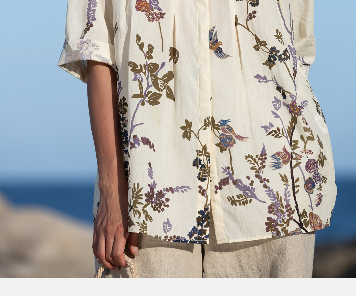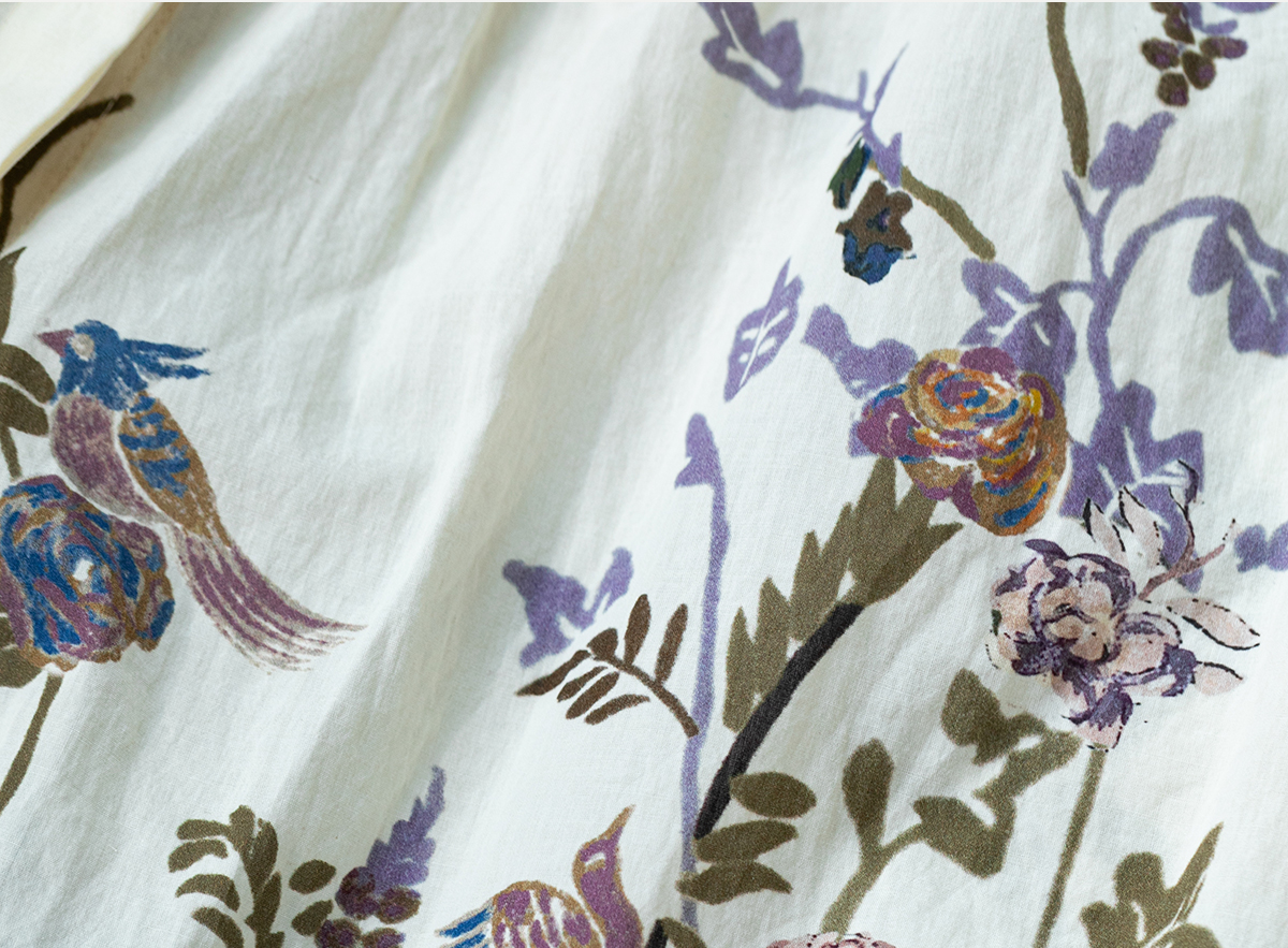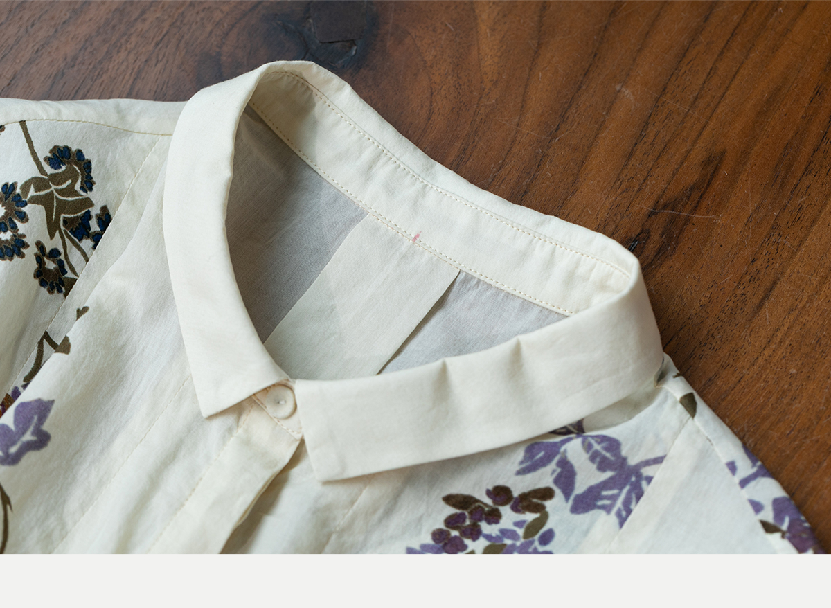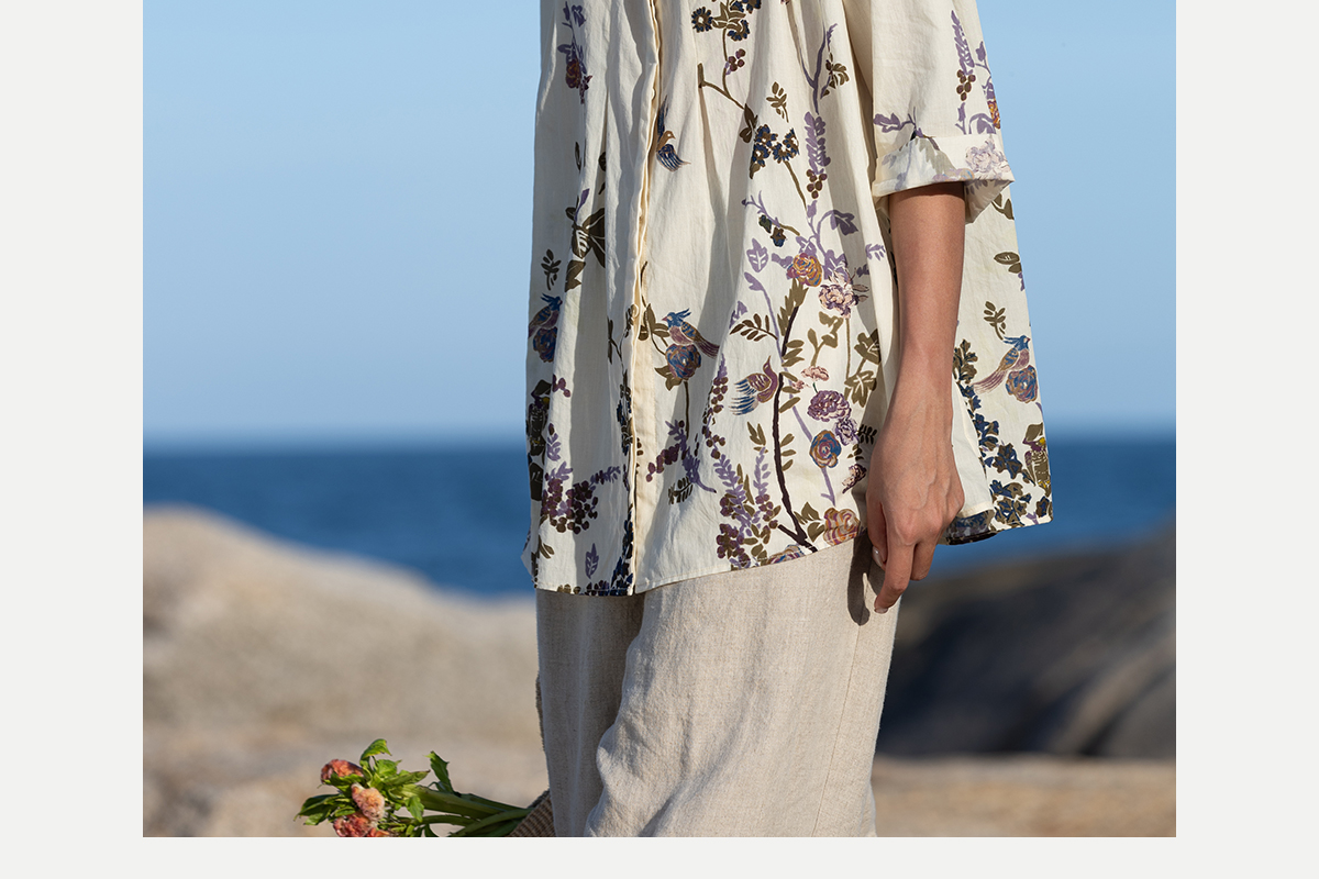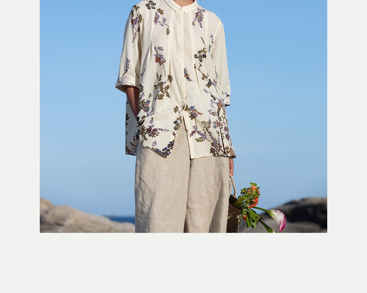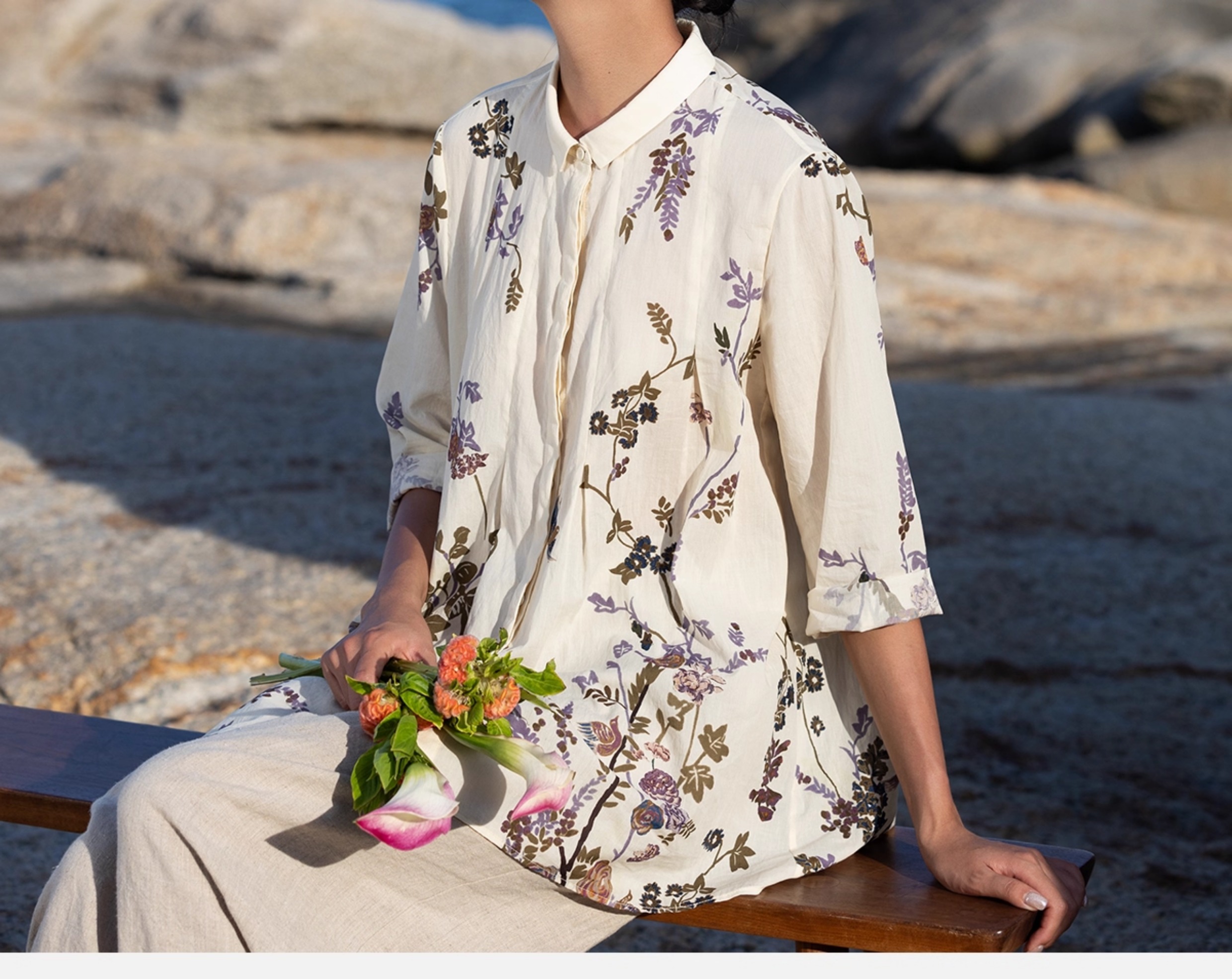 牧衣游原创 印花100支进口比马棉衬衫轻薄柔软百搭文艺衬衣 青沁