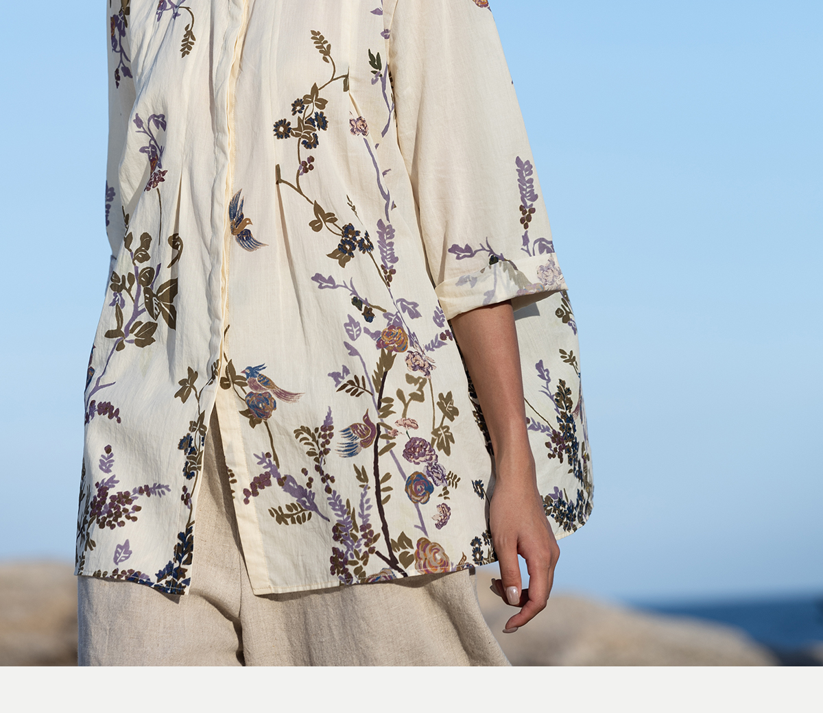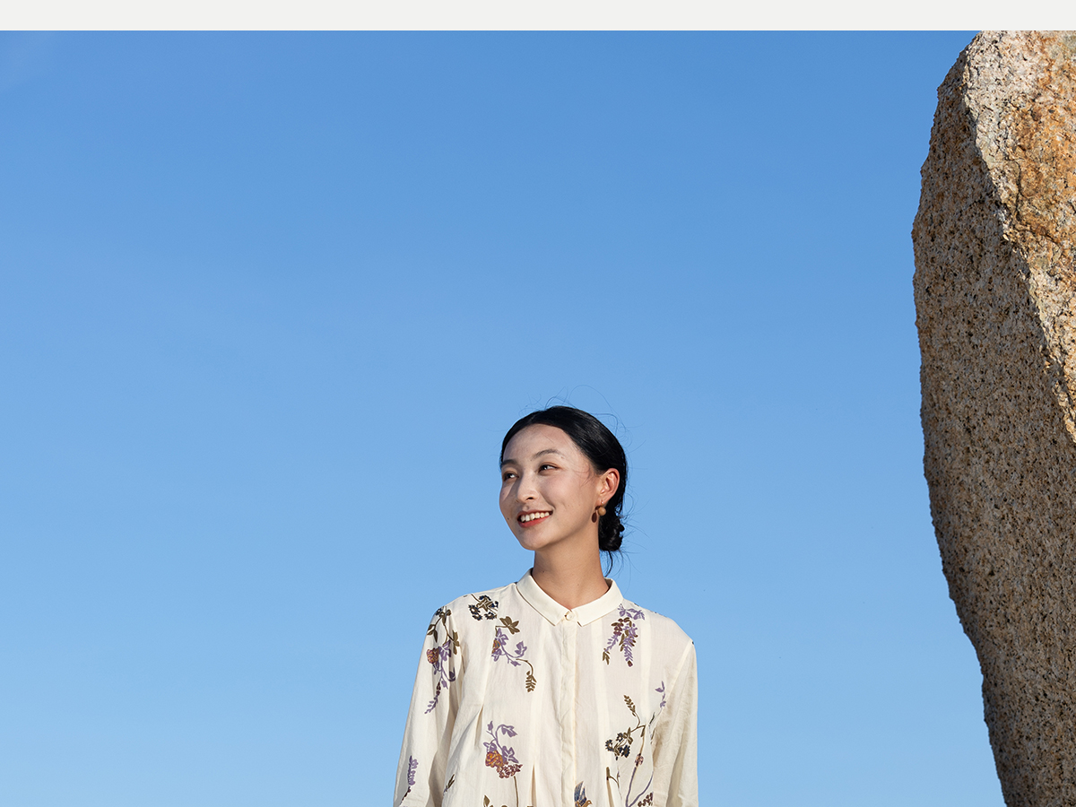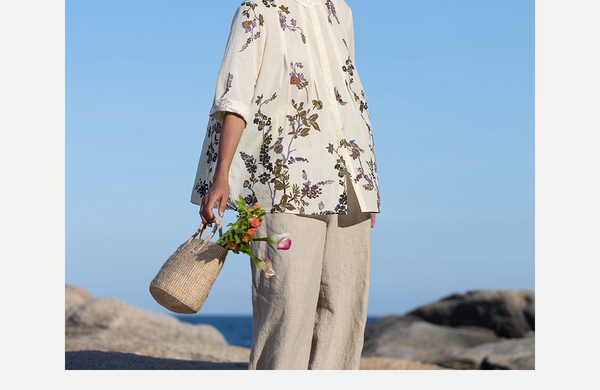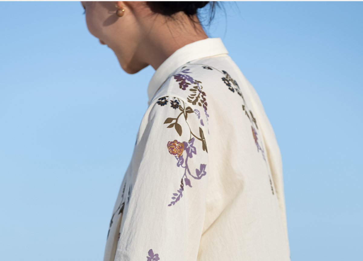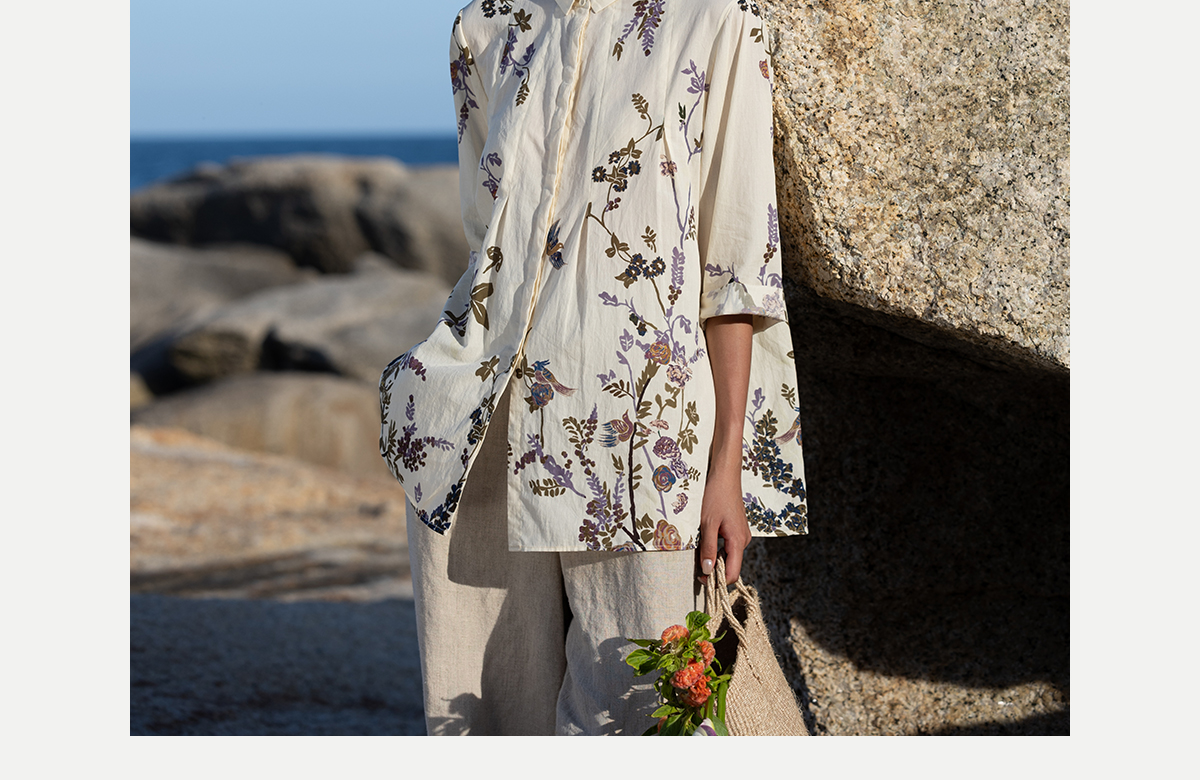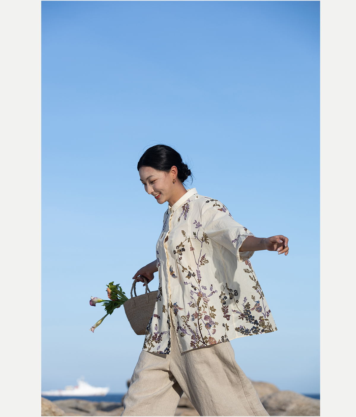 牧衣游原创 印花100支进口比马棉衬衫轻薄柔软百搭文艺衬衣 青沁