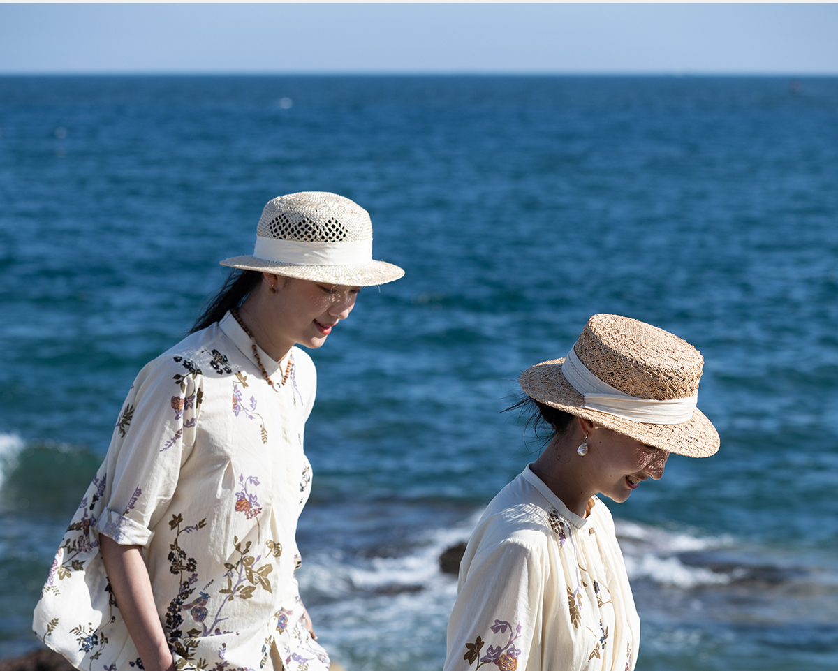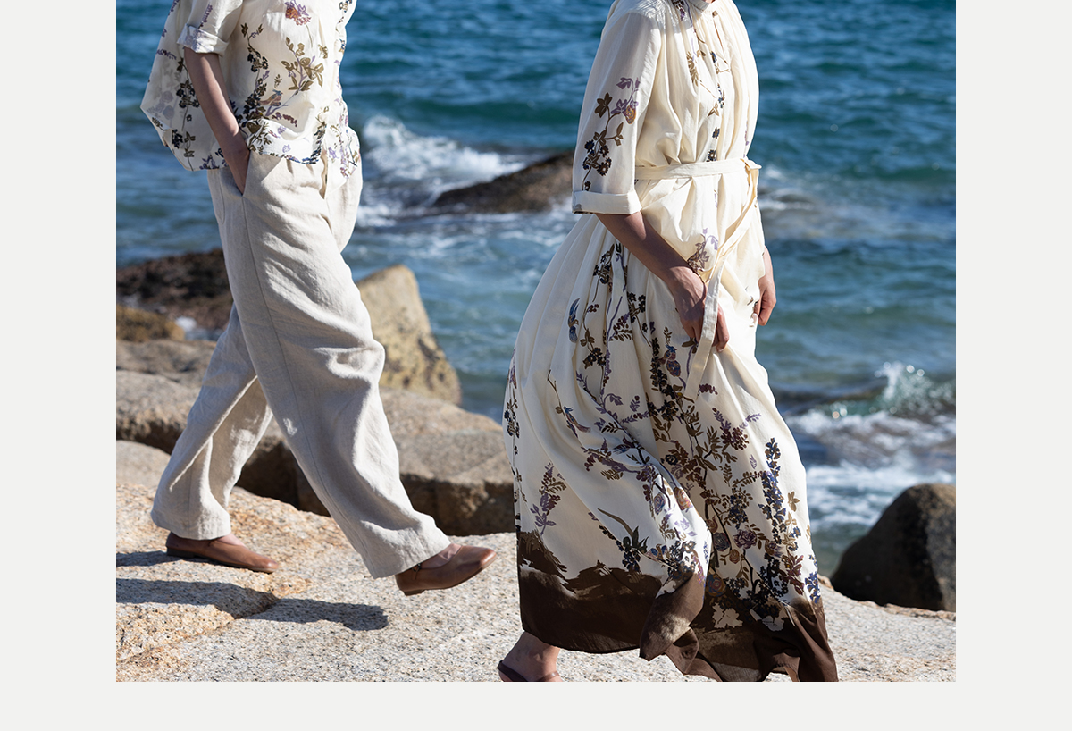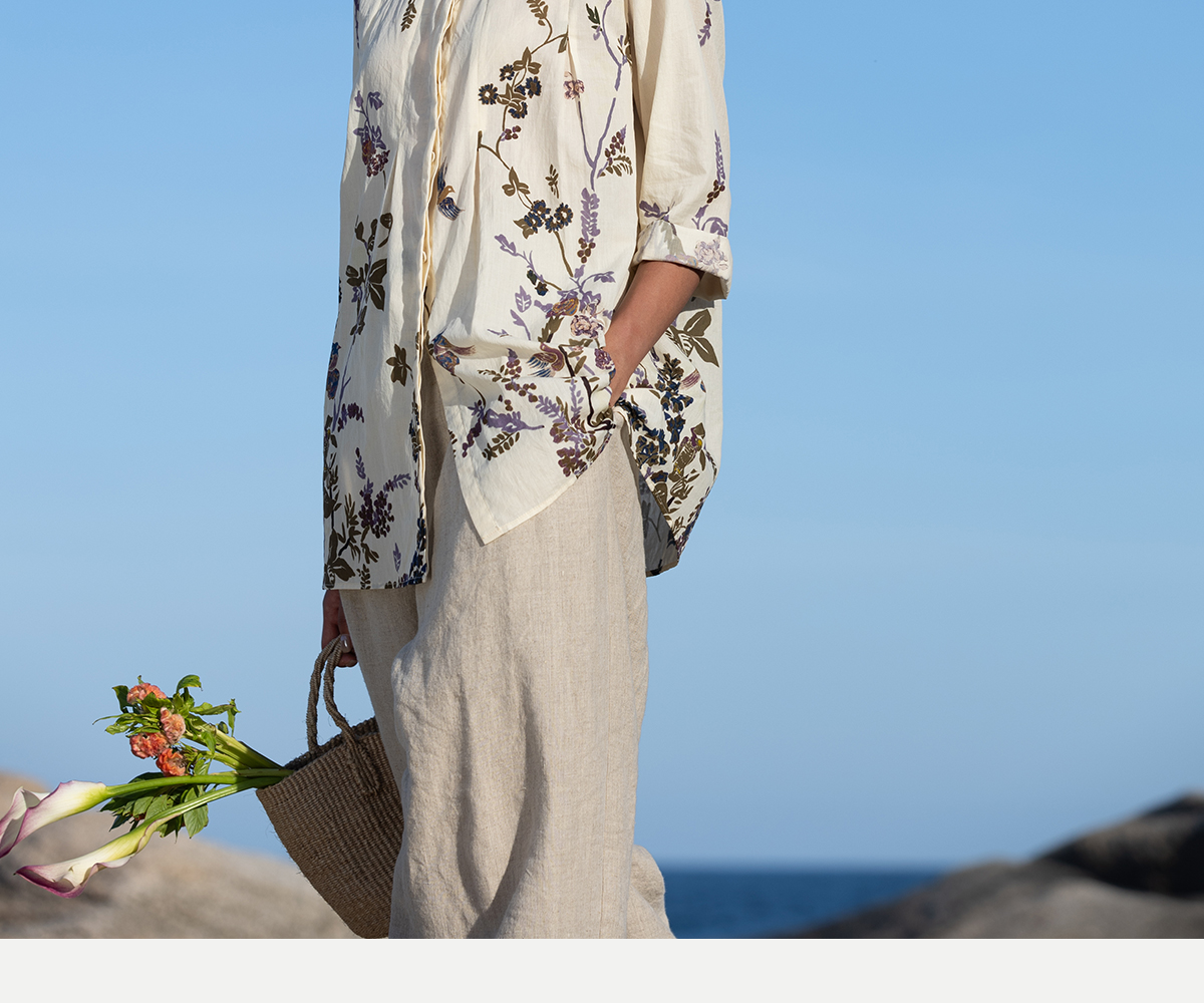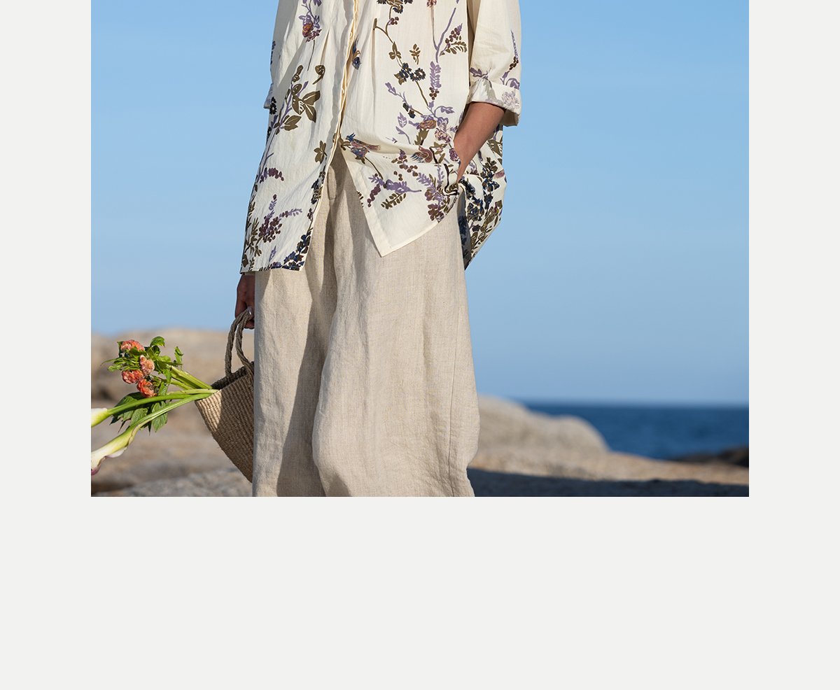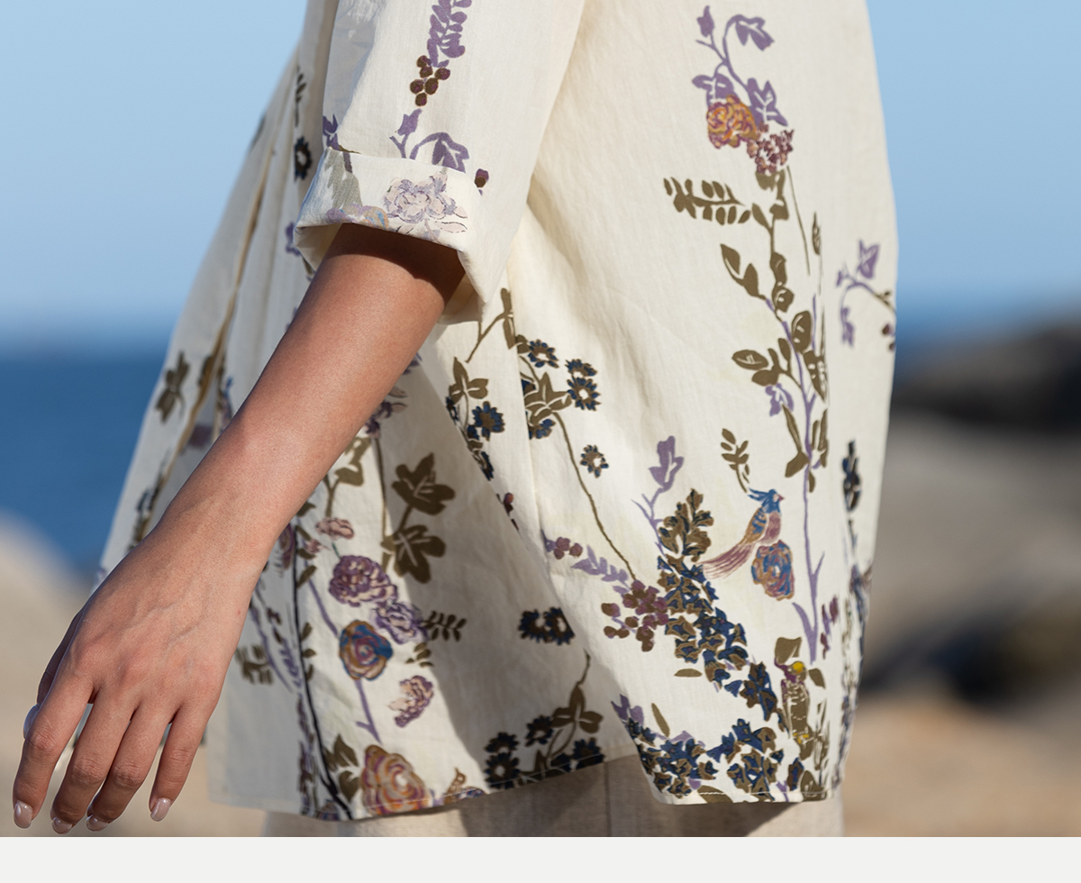牧衣游原创 印花100支进口比马棉衬衫轻薄柔软百搭文艺衬衣 青沁