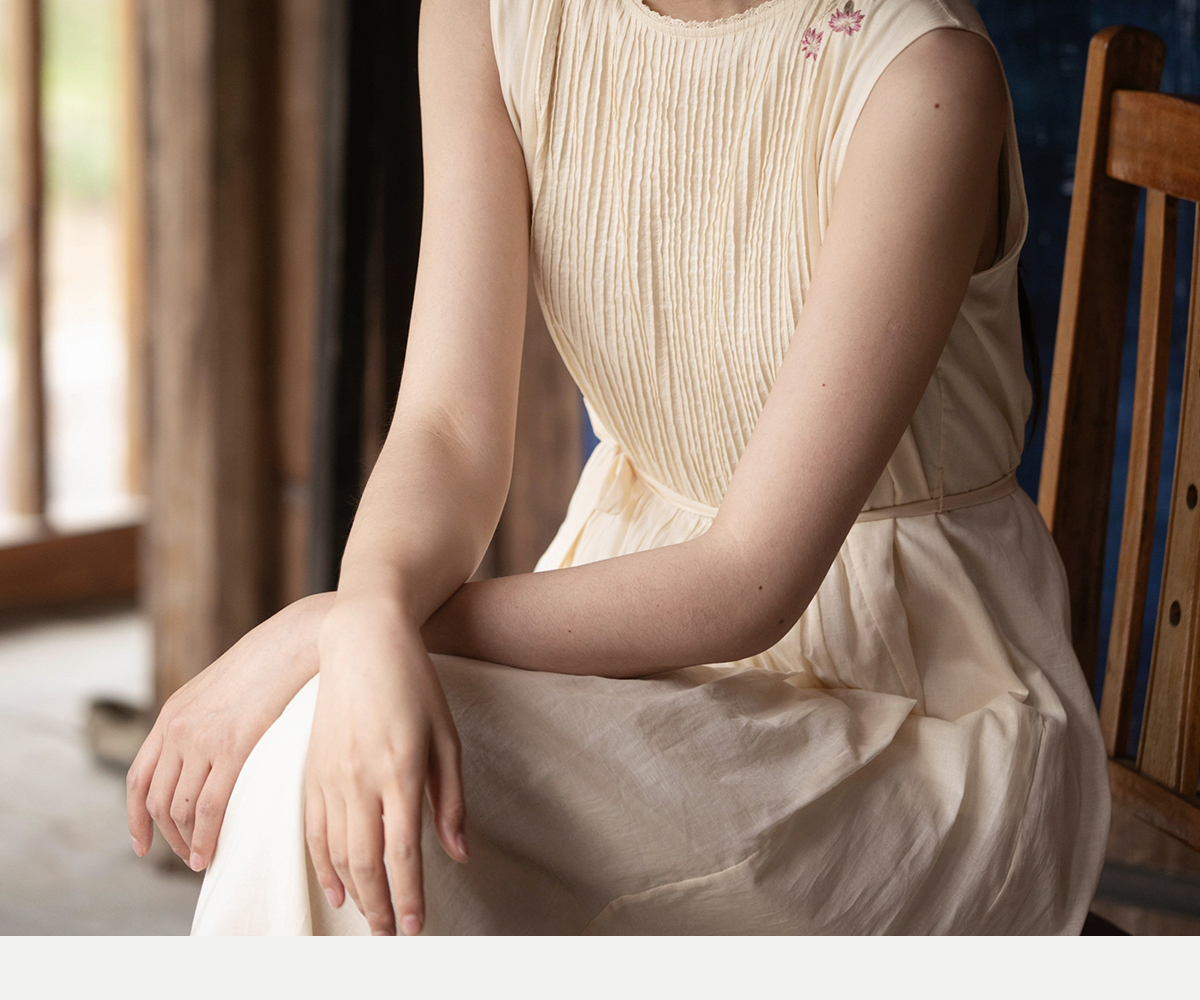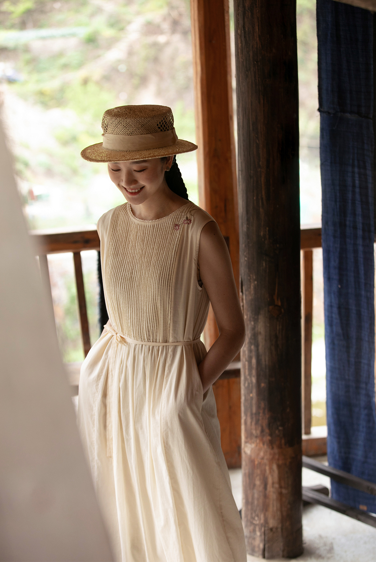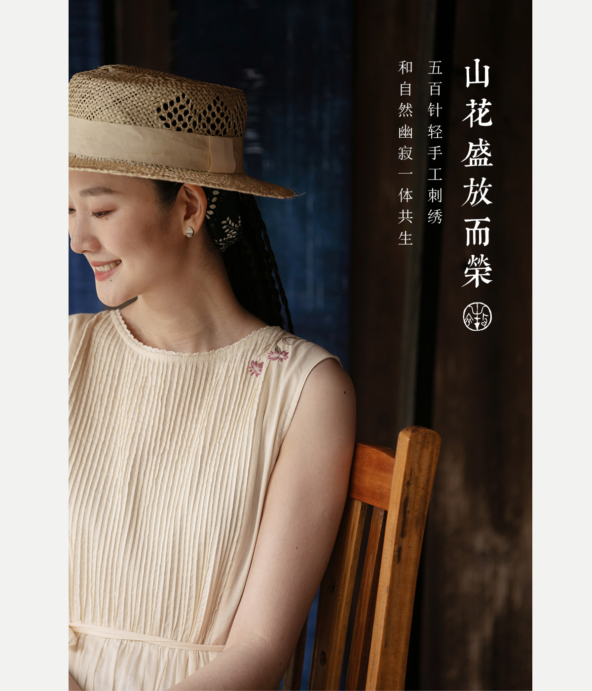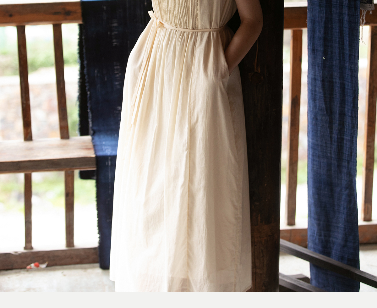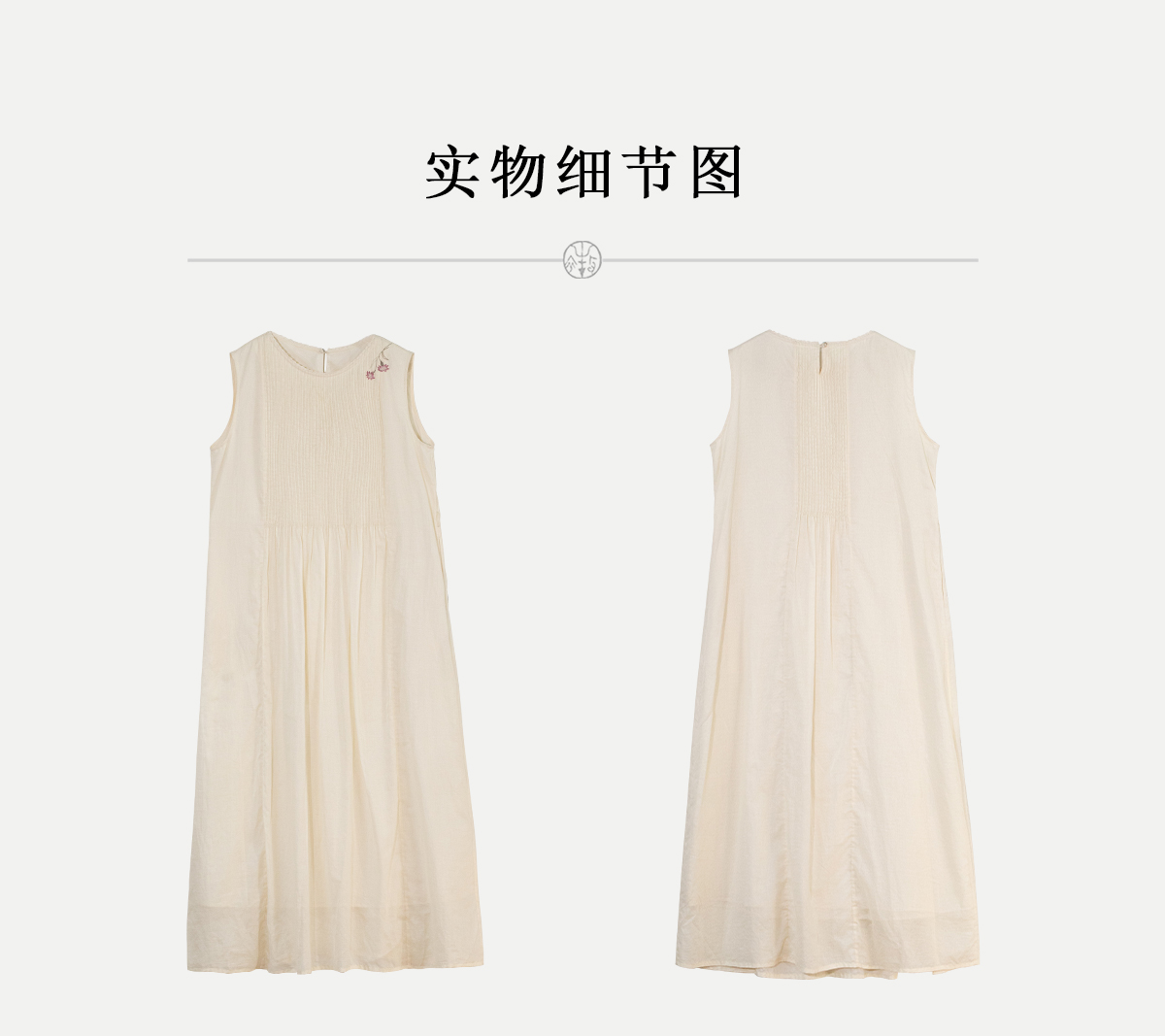 牧衣游原创手工刺绣打条100支精棉无袖连衣裙轻薄质朴长裙 小风铃