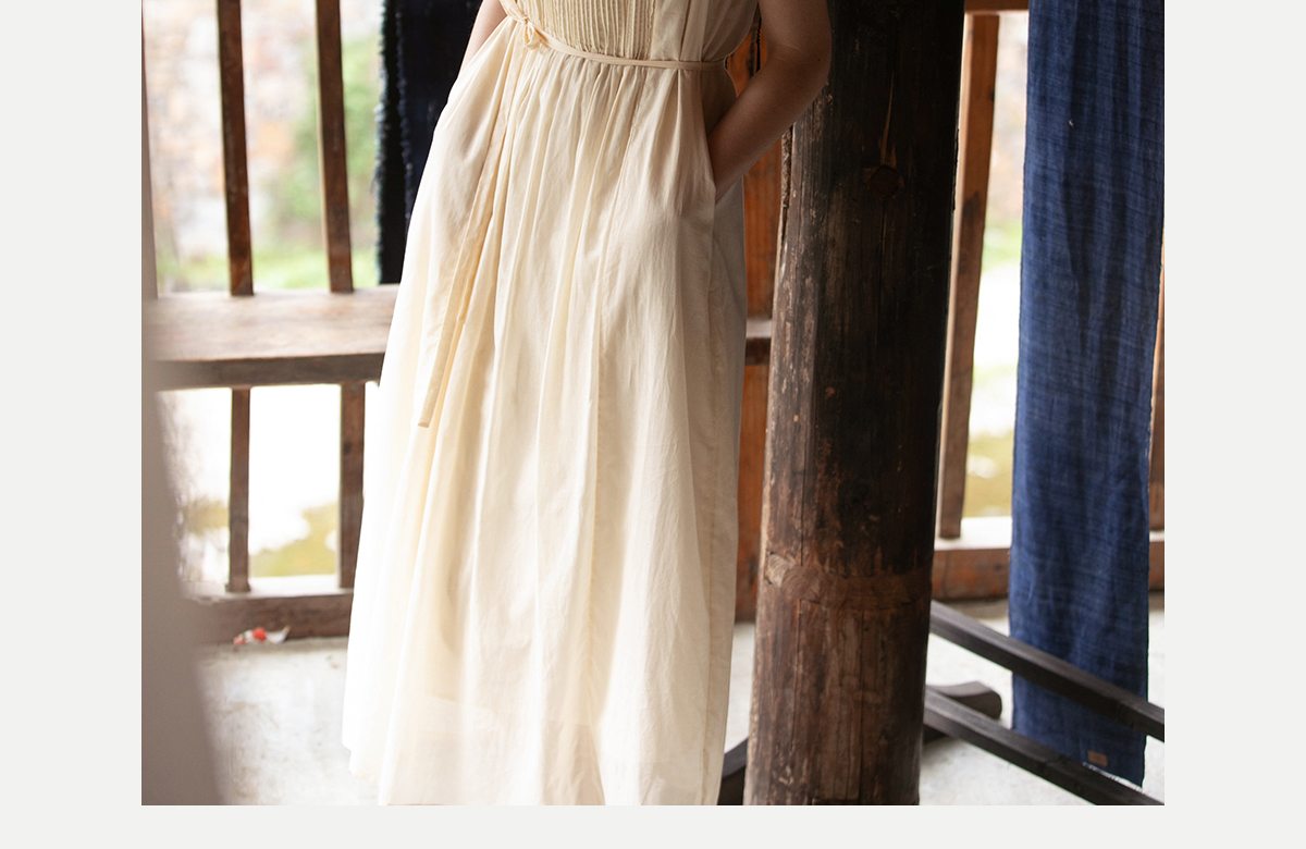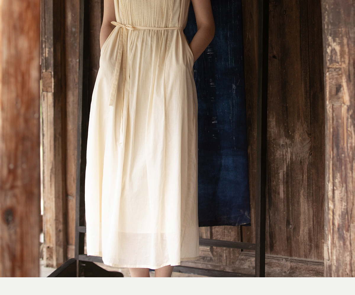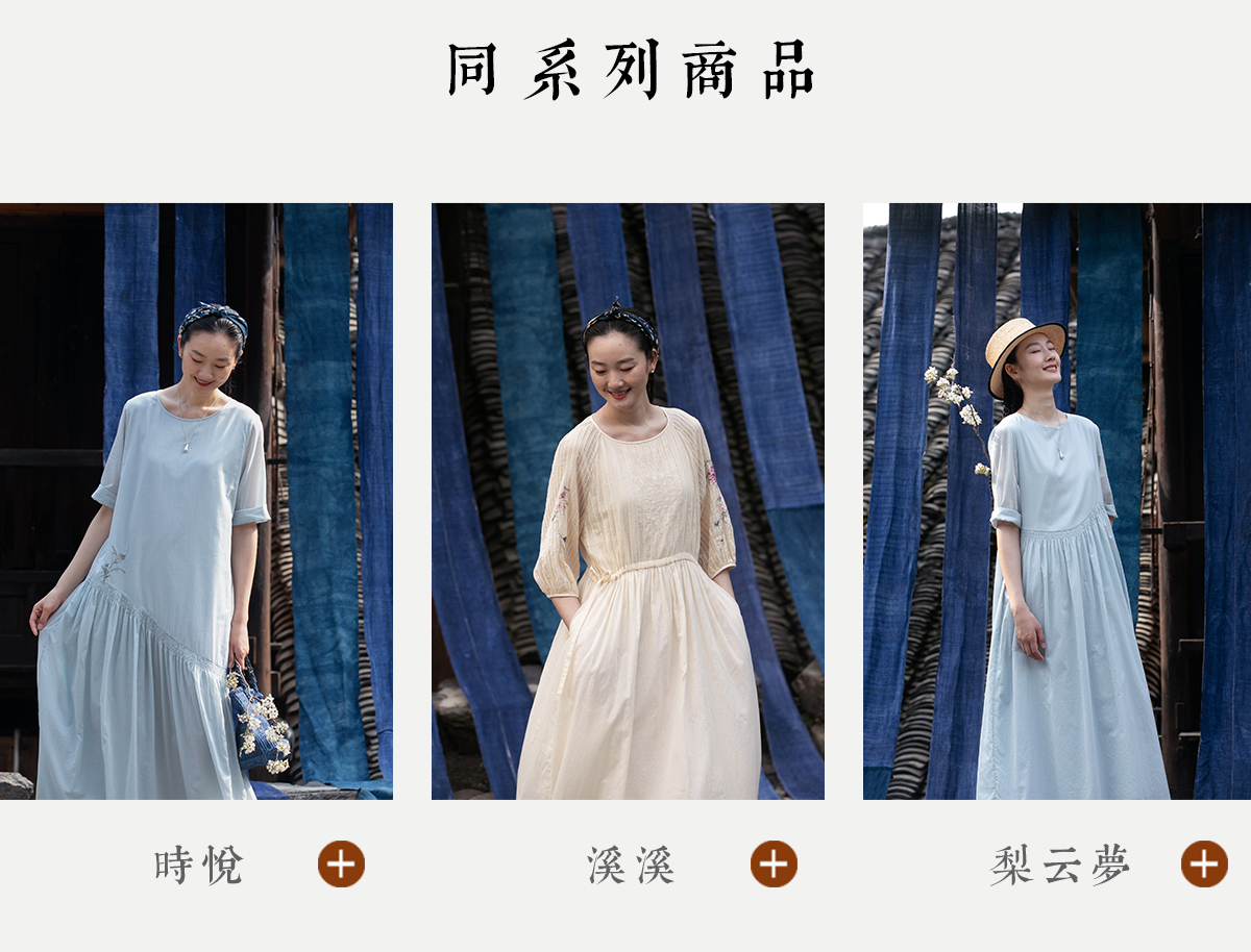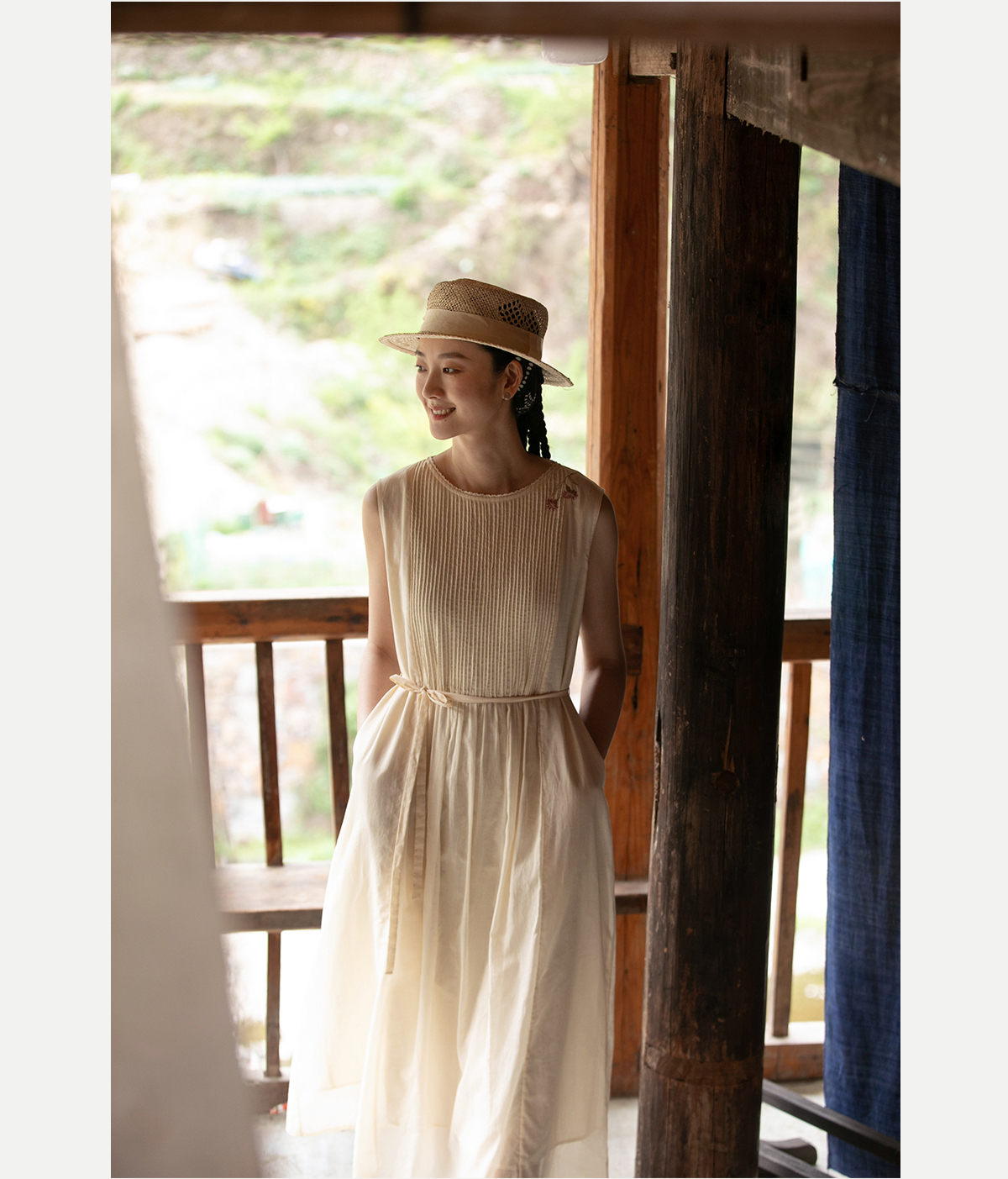 牧衣游原创手工刺绣打条100支精棉无袖连衣裙轻薄质朴长裙 小风铃
