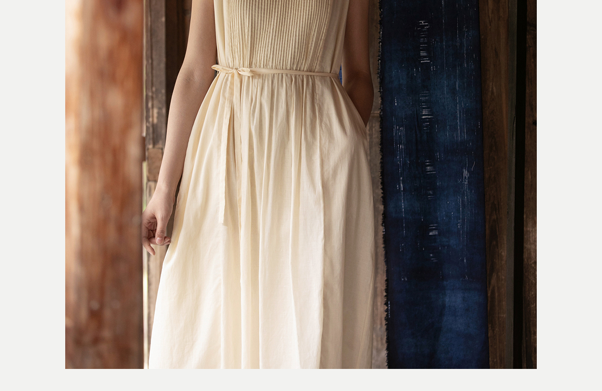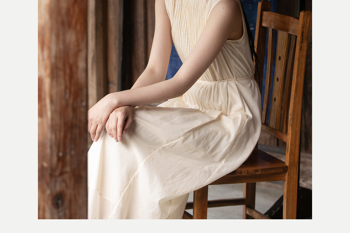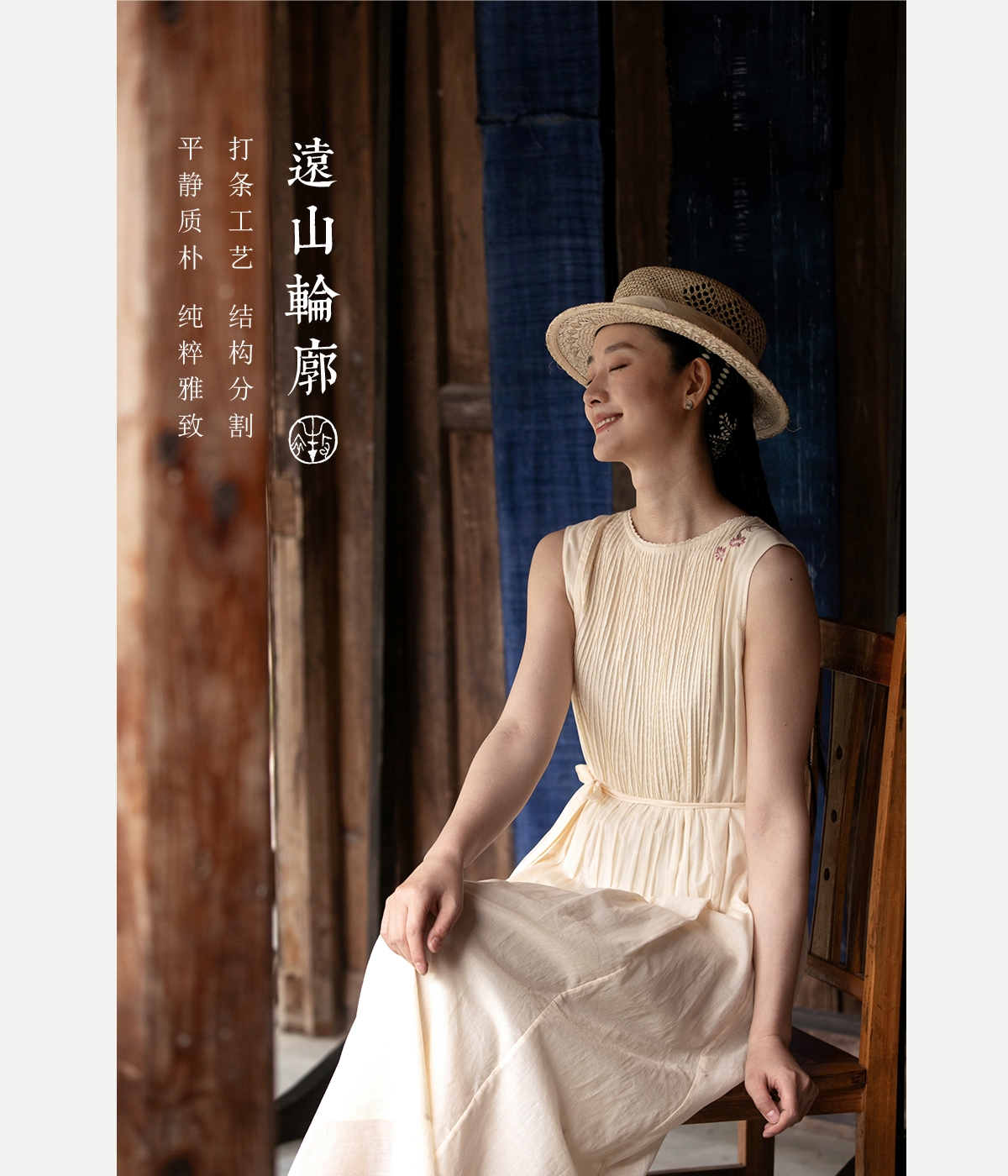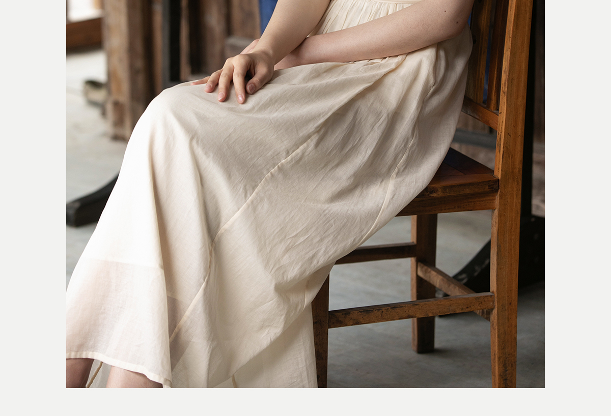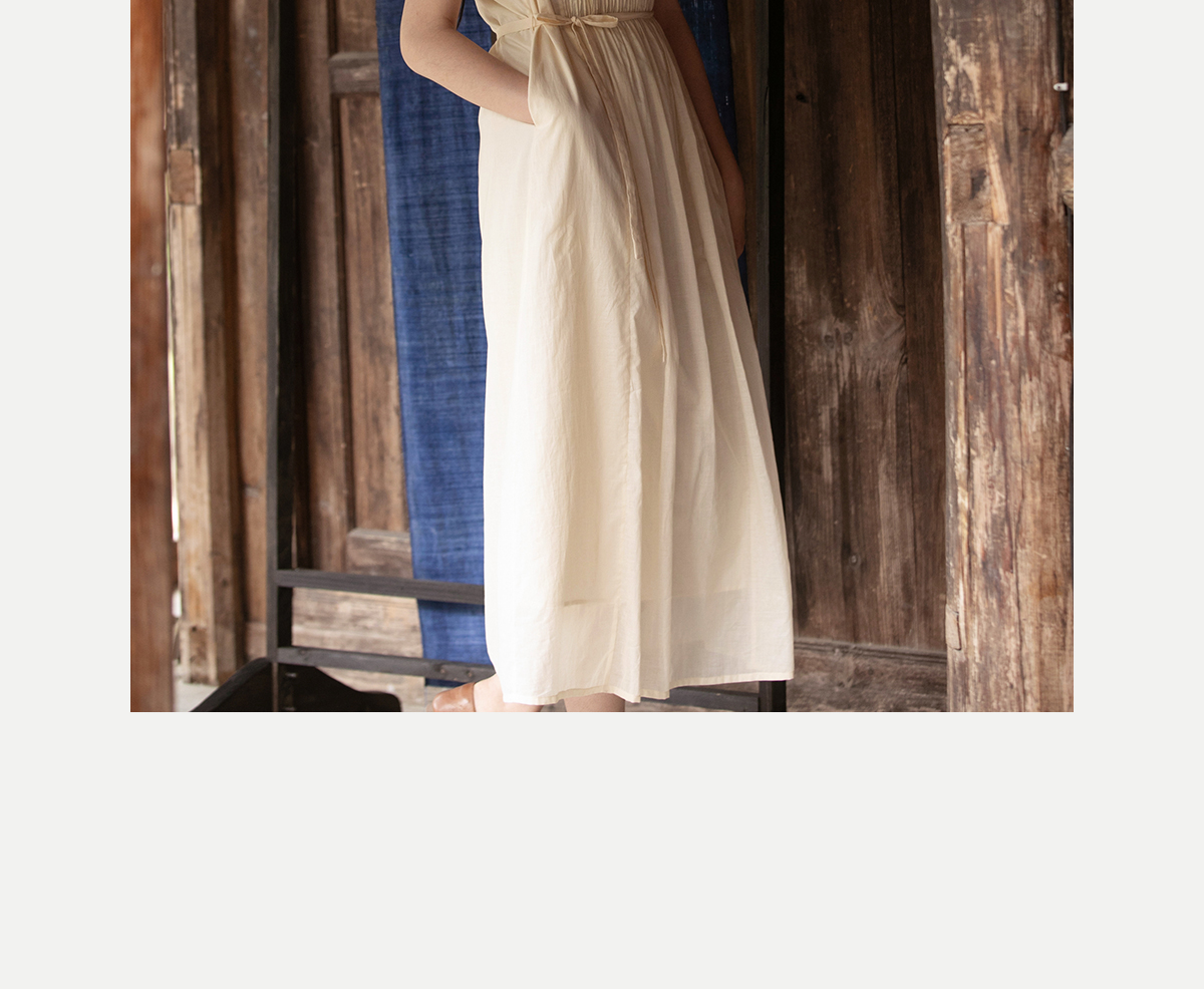 牧衣游原创手工刺绣打条100支精棉无袖连衣裙轻薄质朴长裙 小风铃