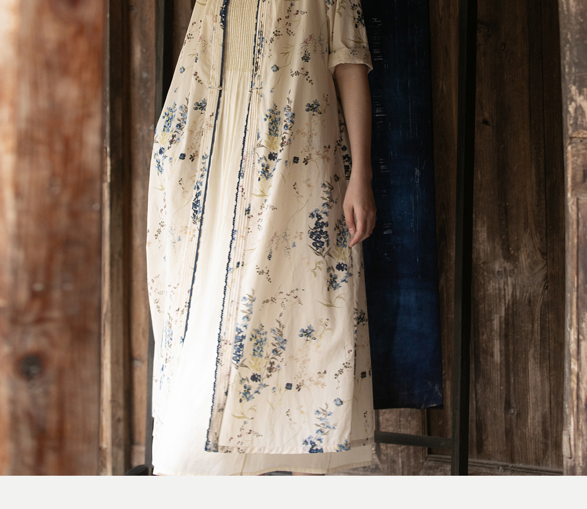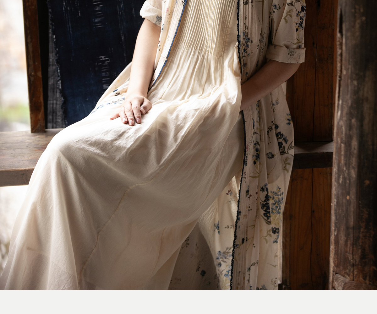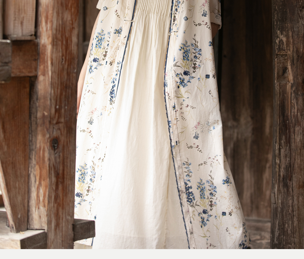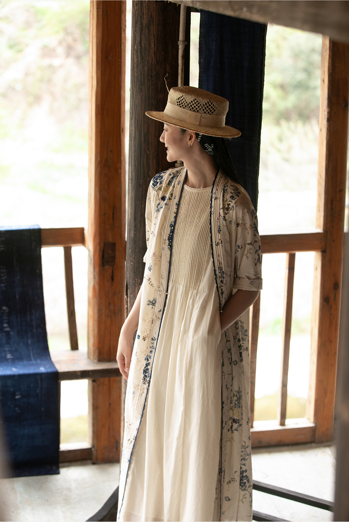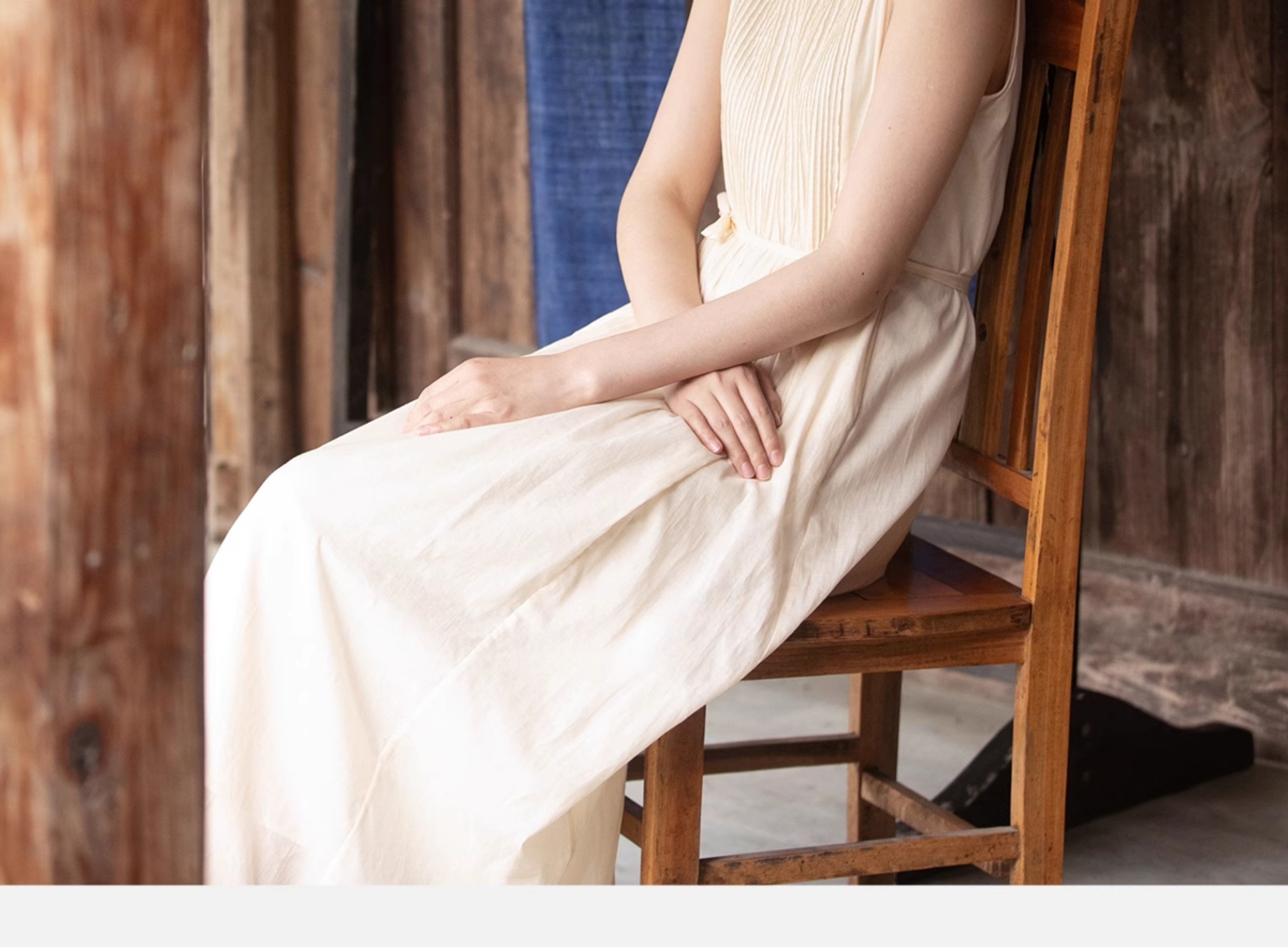 牧衣游原创手工刺绣打条100支精棉无袖连衣裙轻薄质朴长裙 小风铃