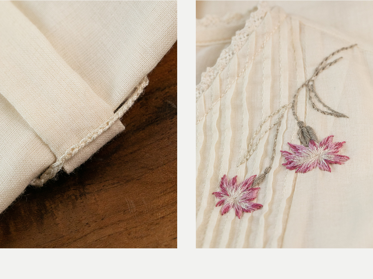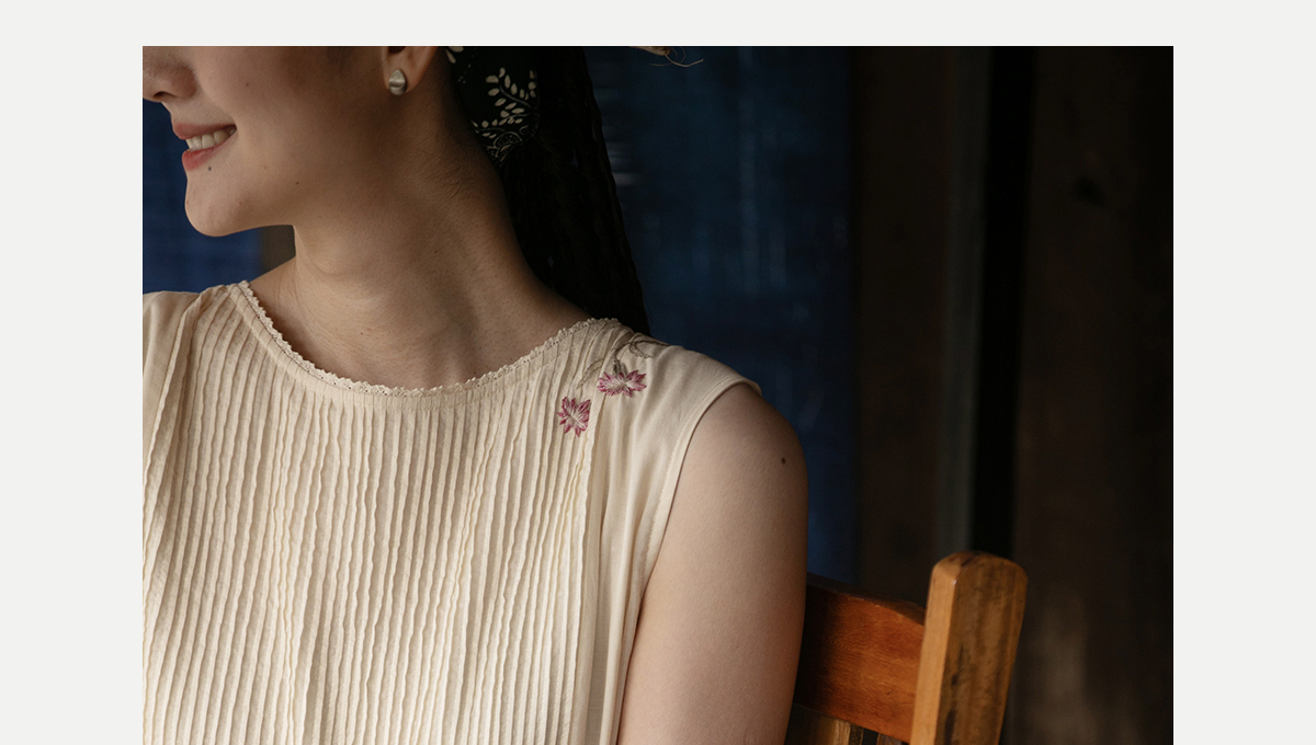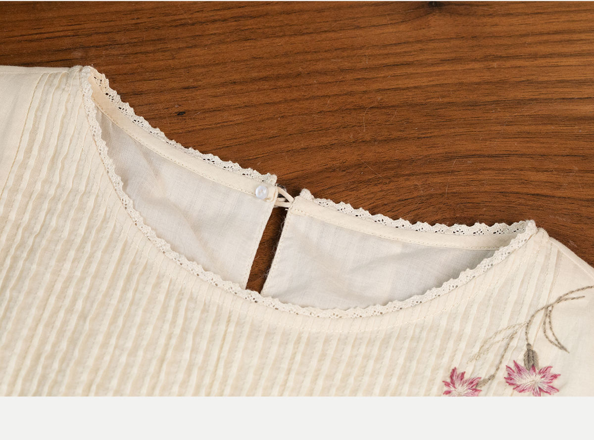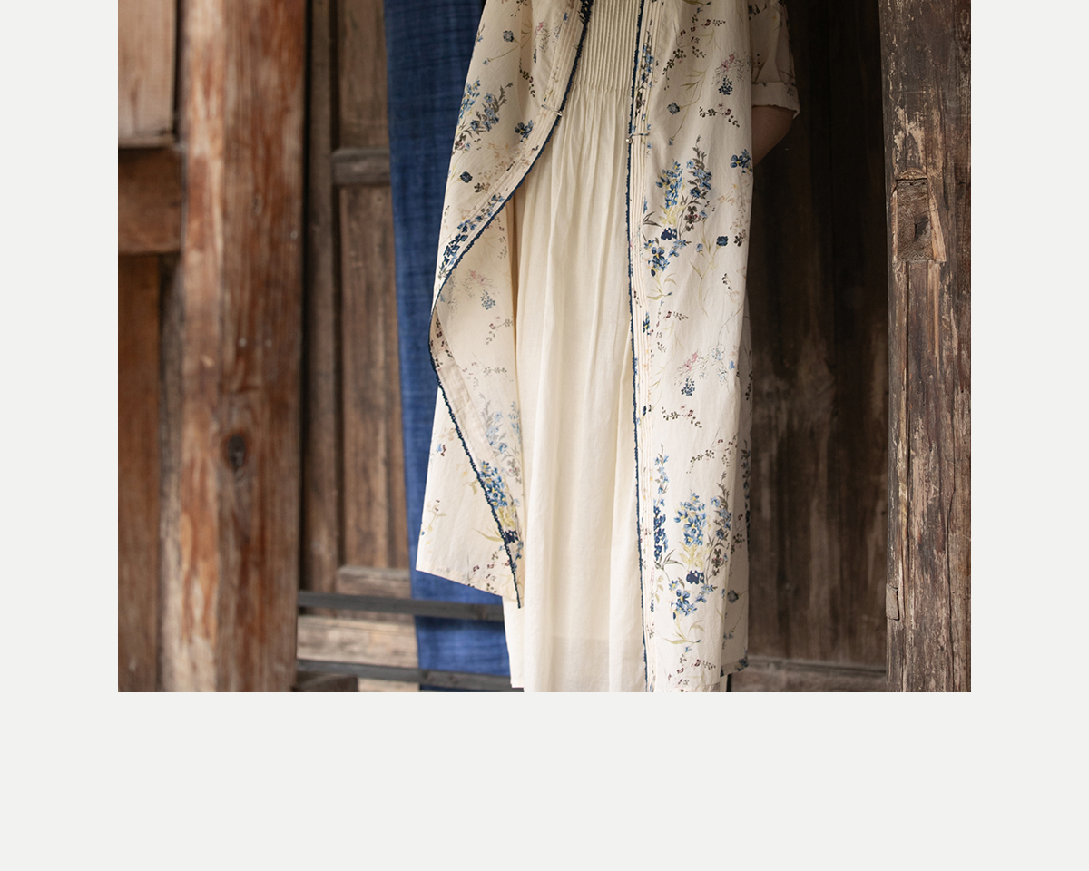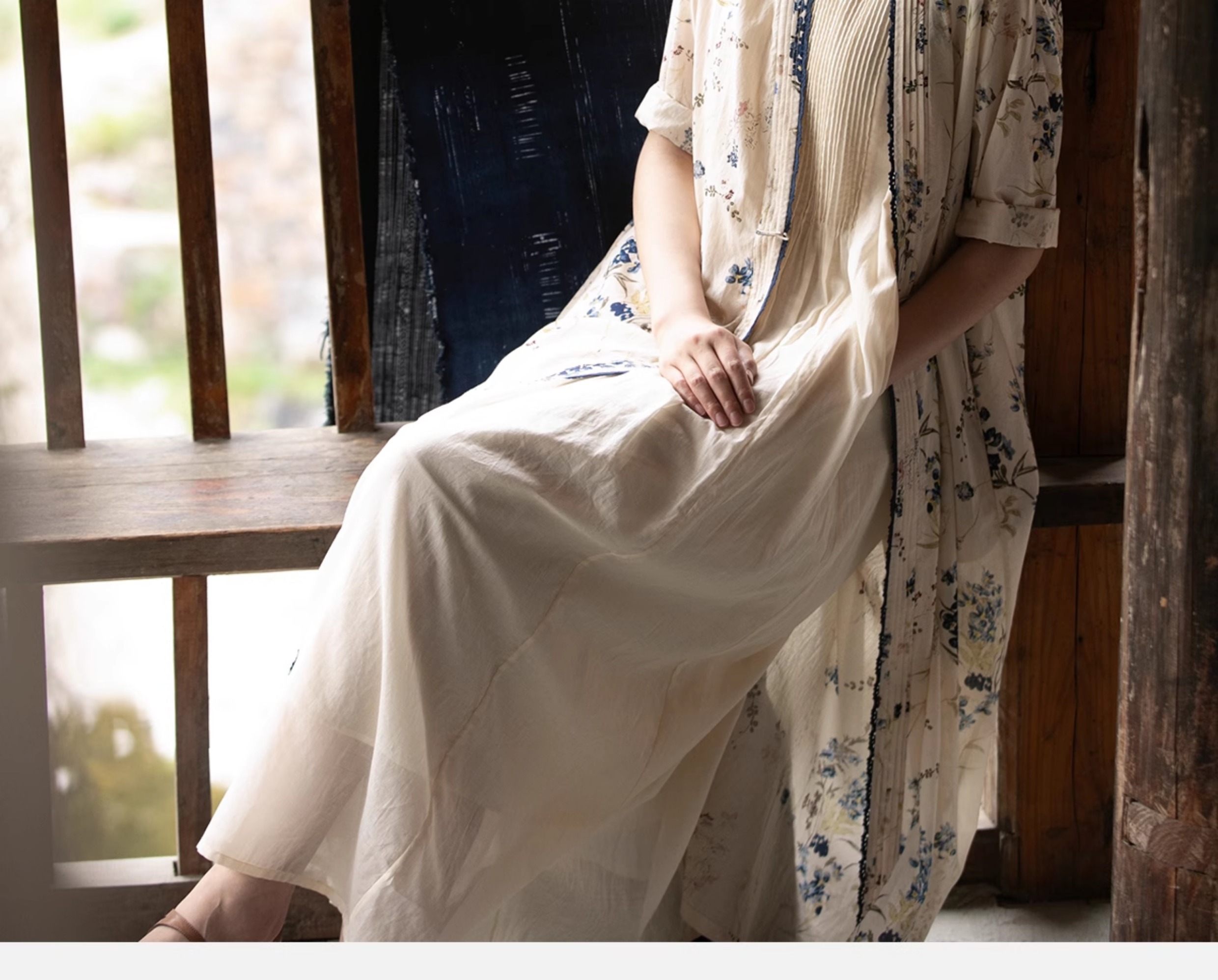 牧衣游原创手工刺绣打条100支精棉无袖连衣裙轻薄质朴长裙 小风铃