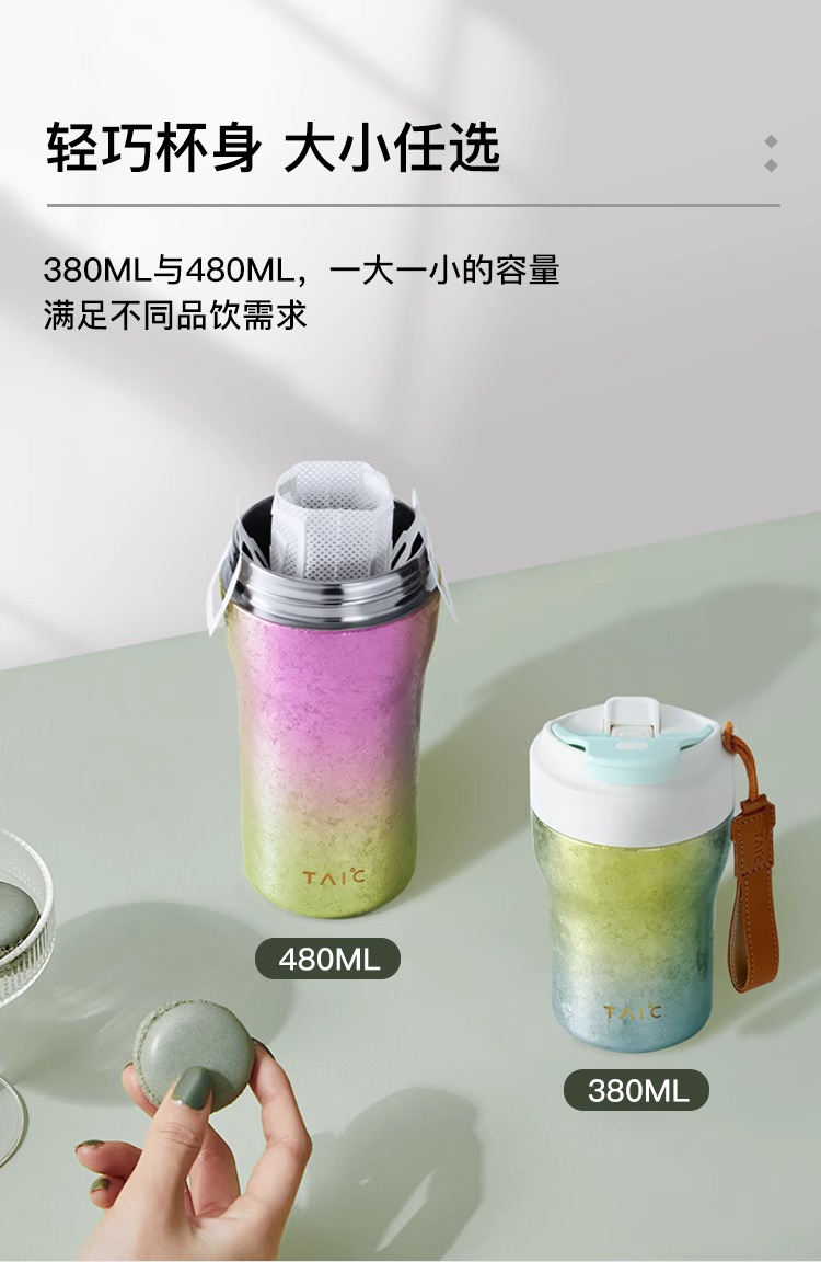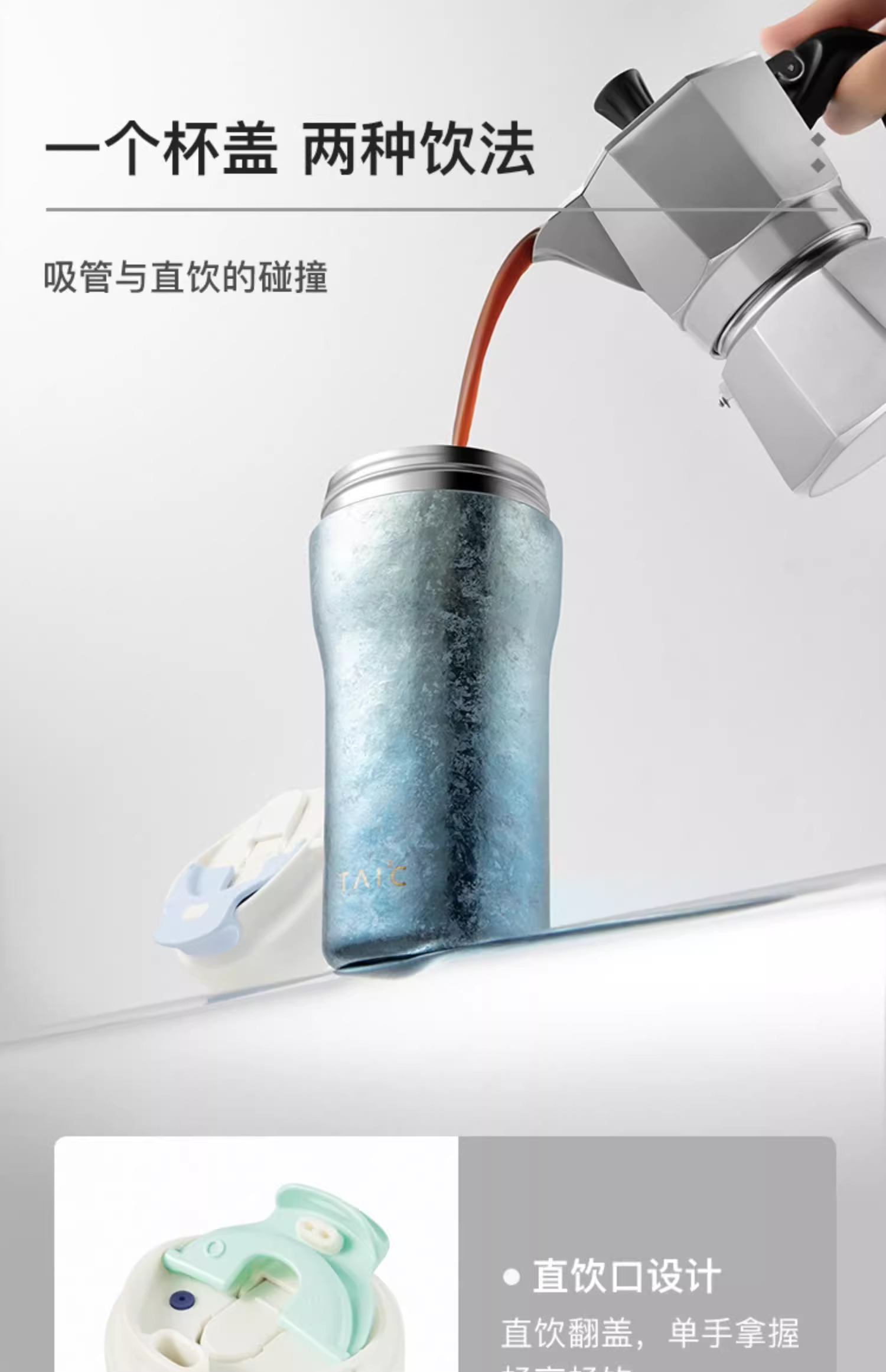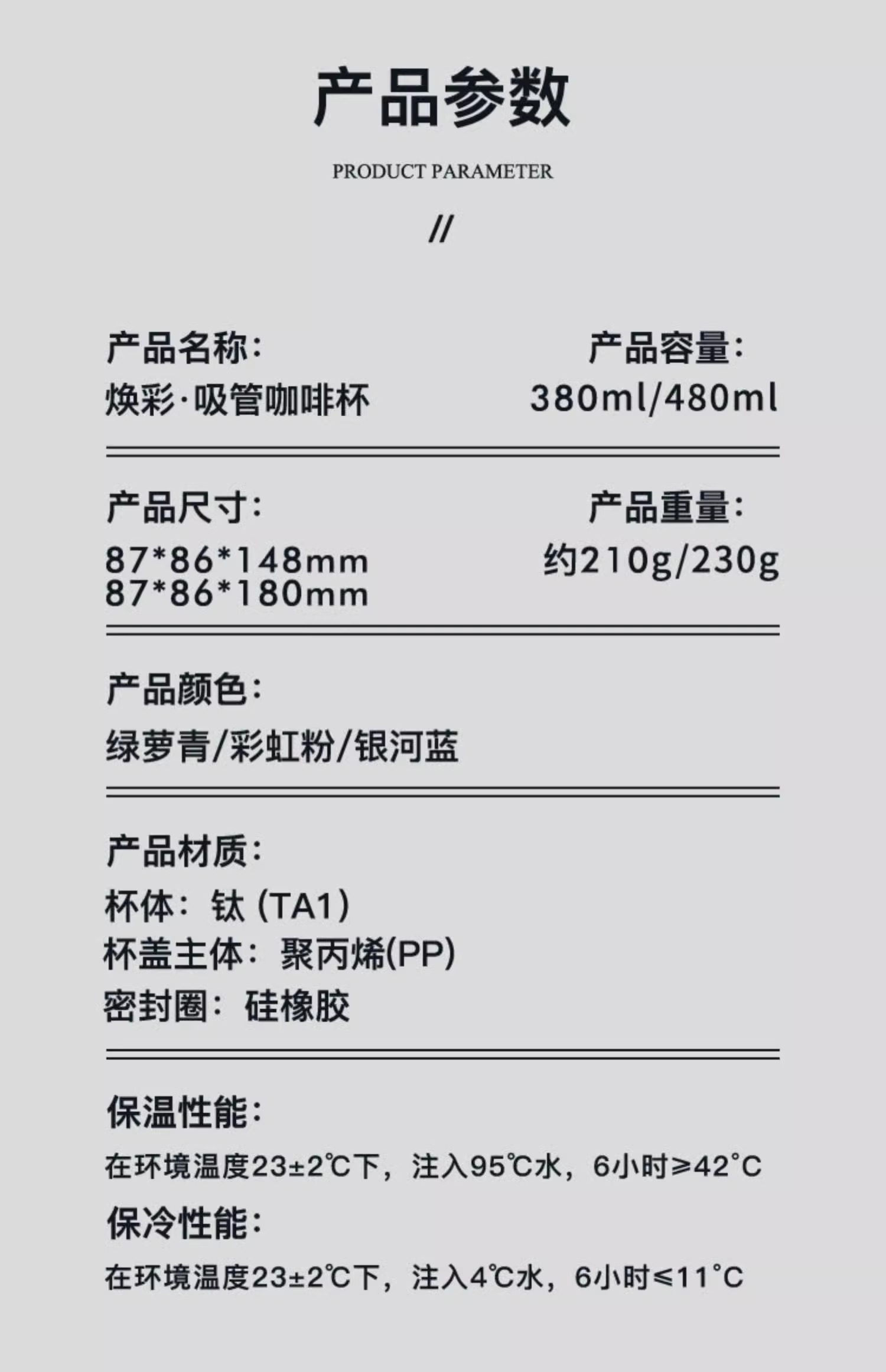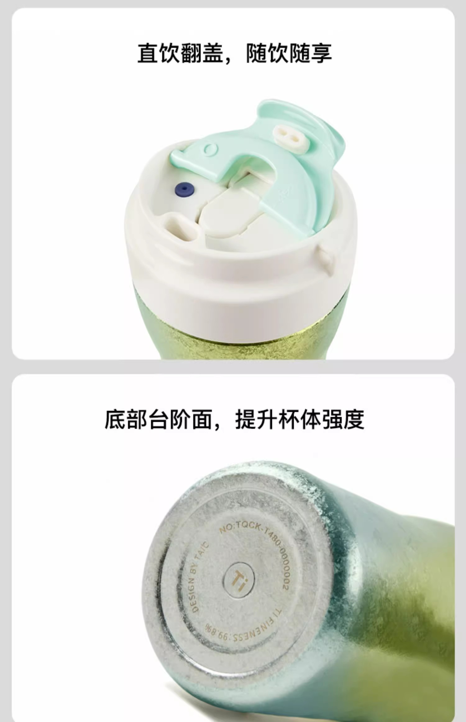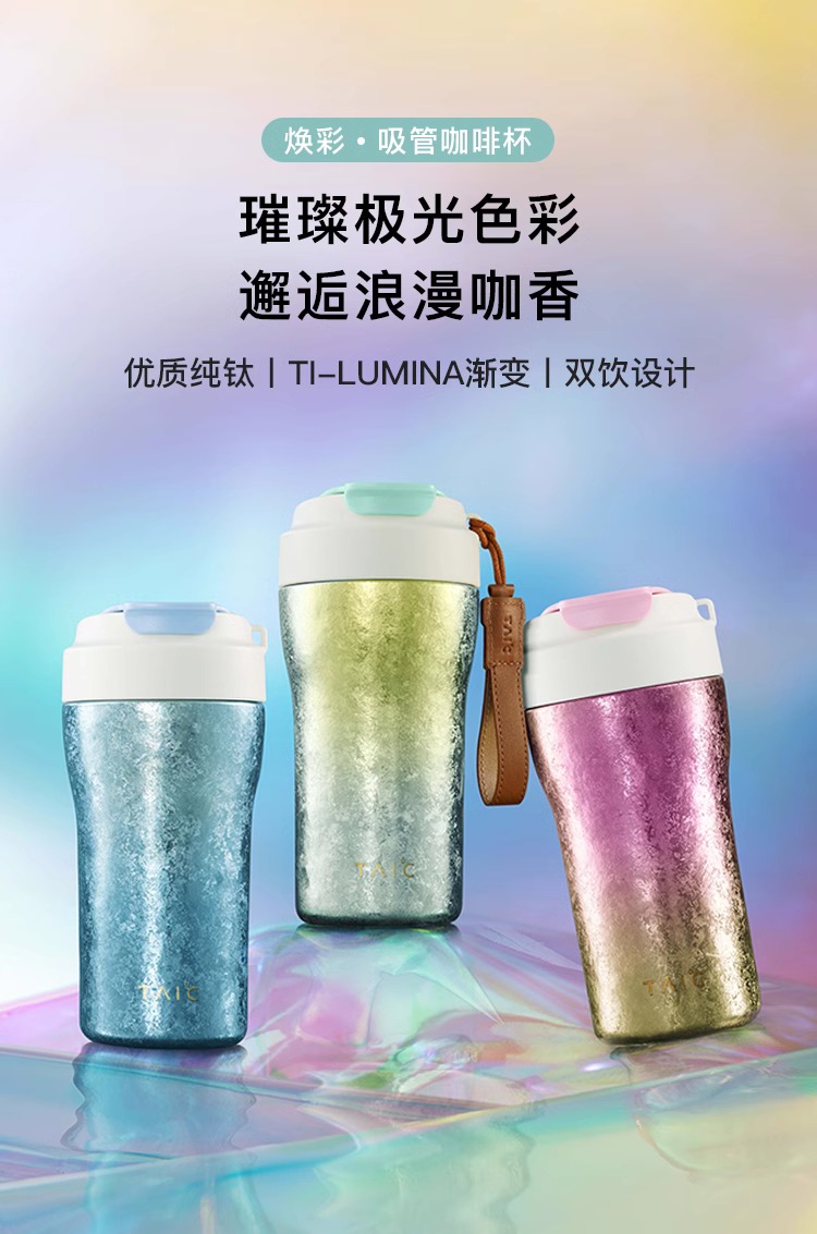 太可纯钛双层焕彩·吸管咖啡杯高颜值轻奢水杯380ml(绿萝青)-YHD