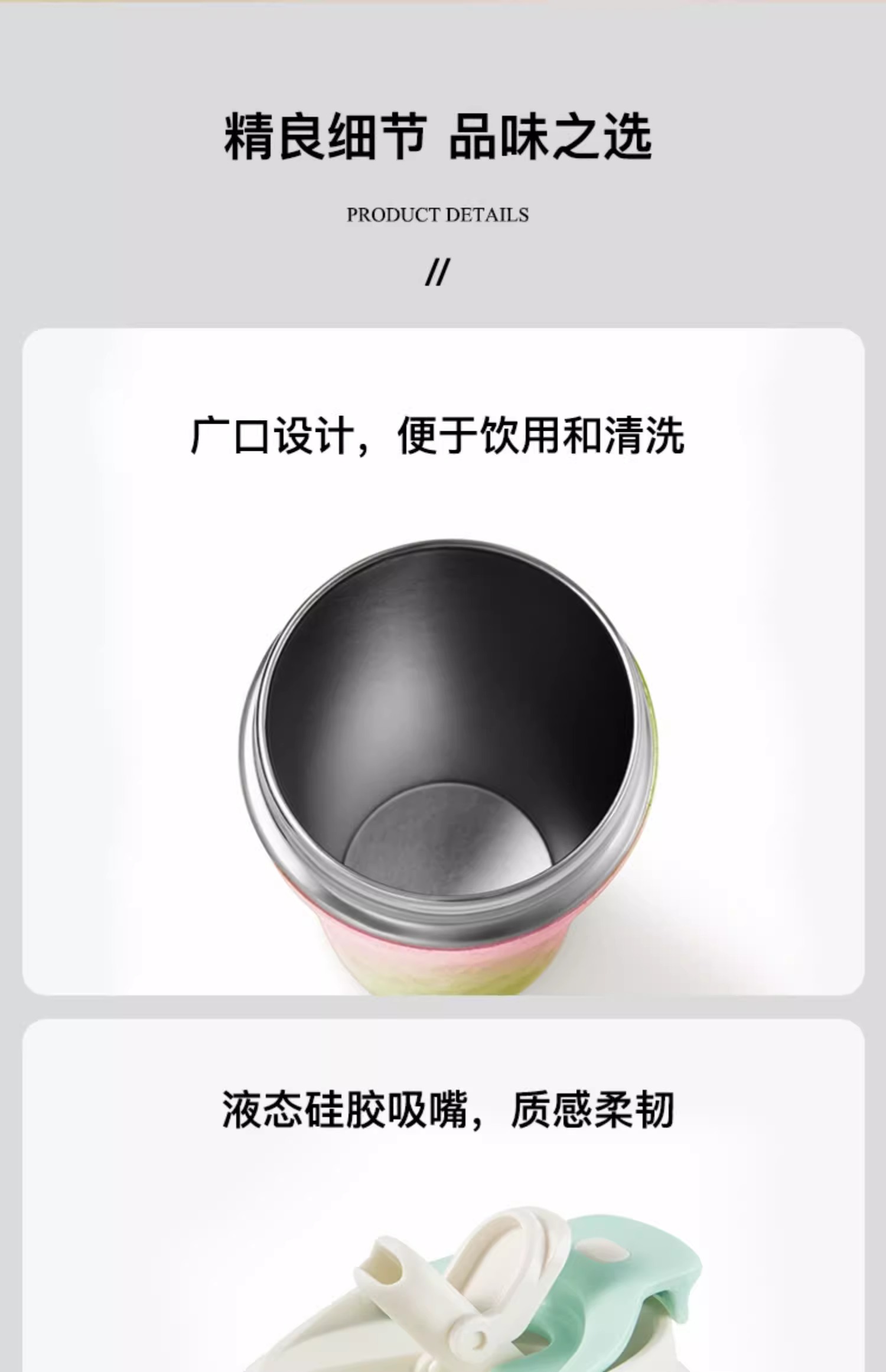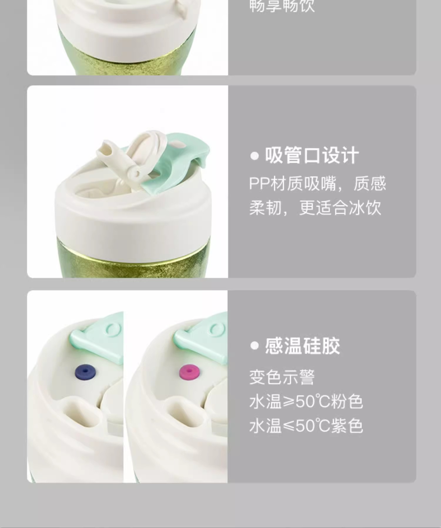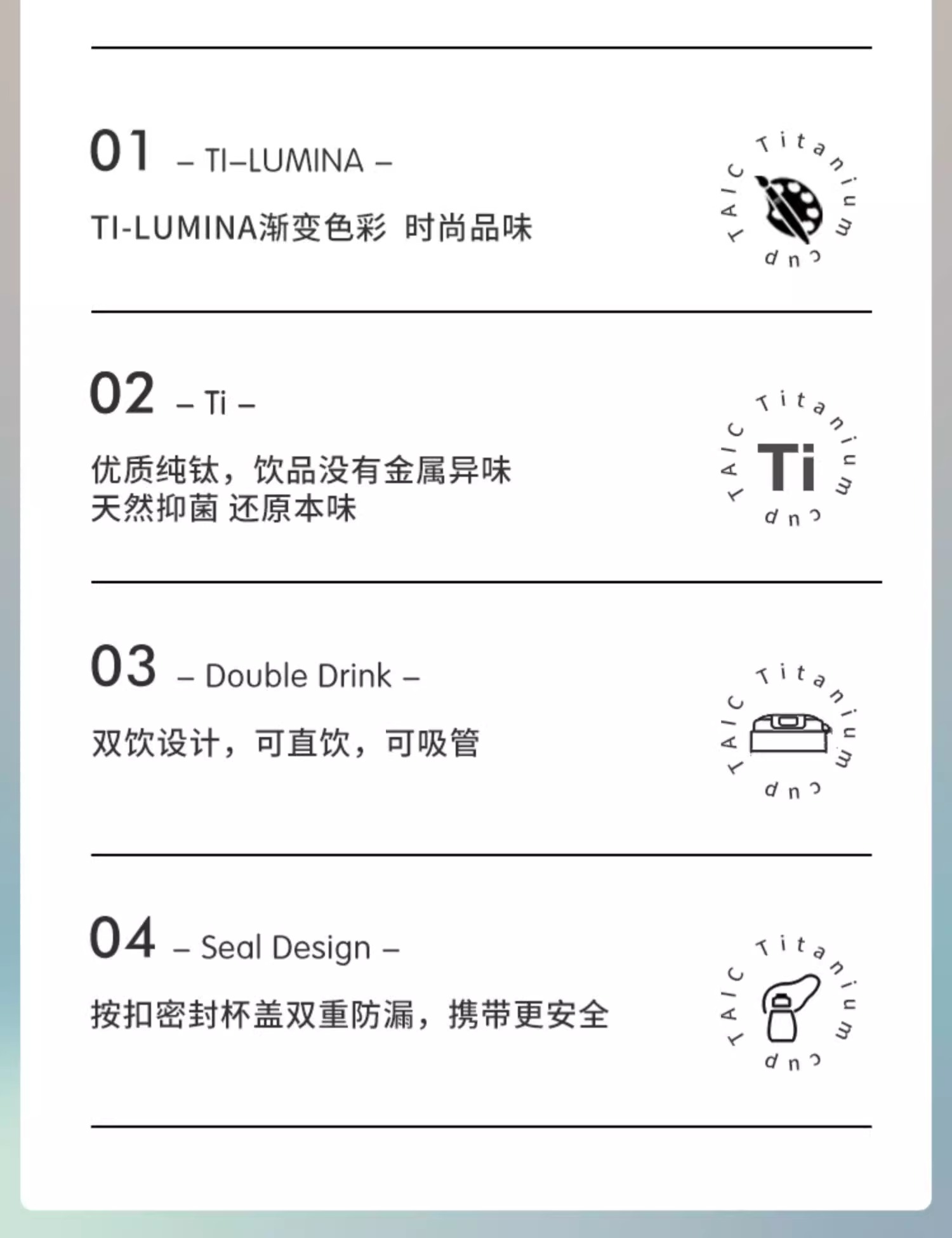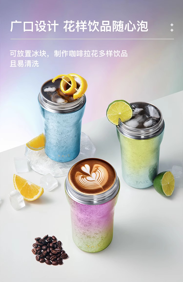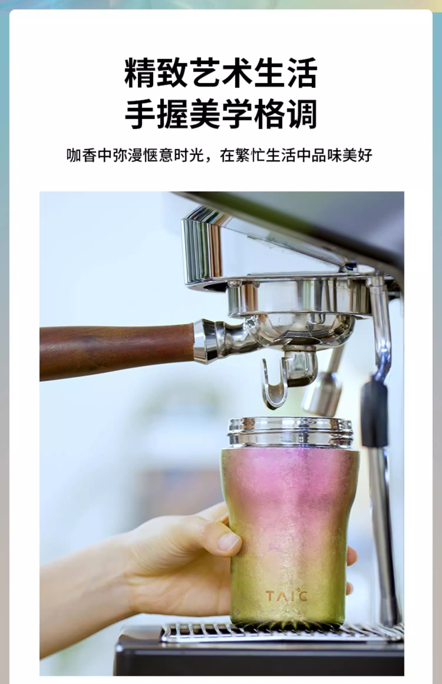 太可纯钛双层焕彩·吸管咖啡杯高颜值轻奢水杯380ml(绿萝青)-YHD