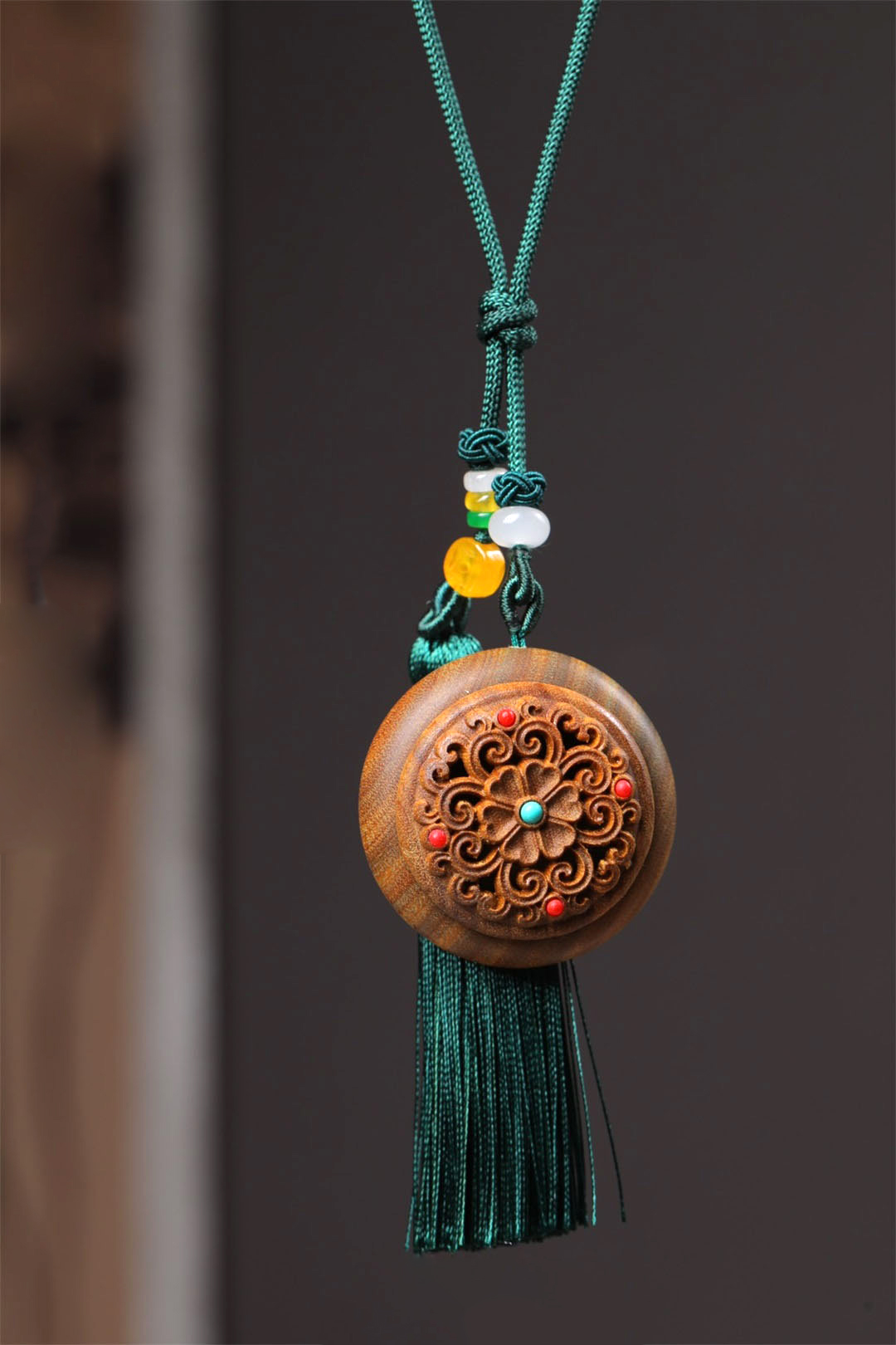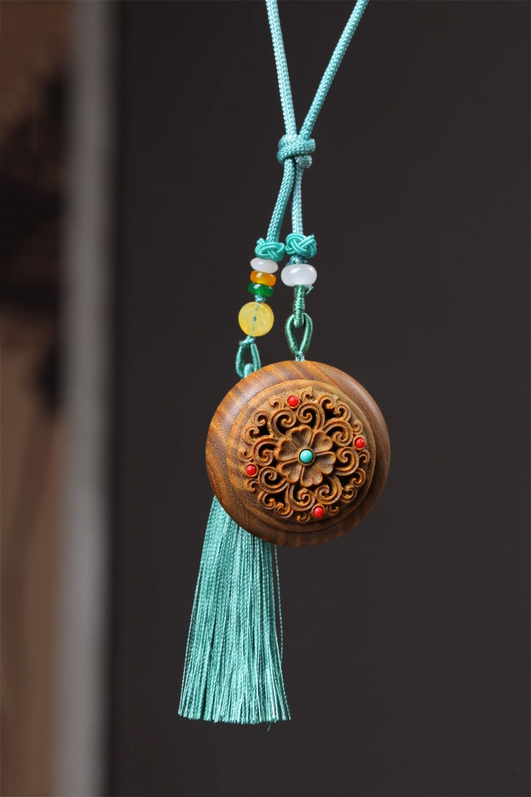 小如来/月光宝盒°绿檀香囊长绳挂件