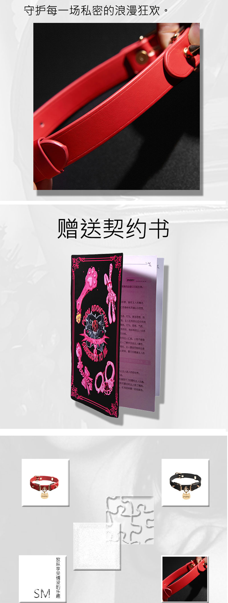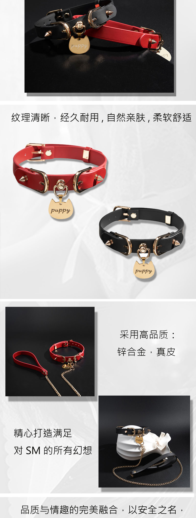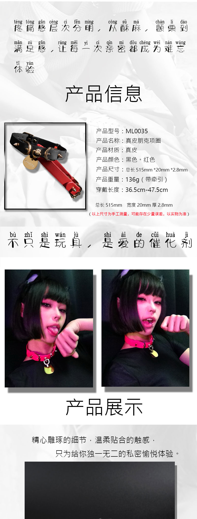 魅灵温变 朋克喵印choker(真皮版)项圈+牵引 黑色