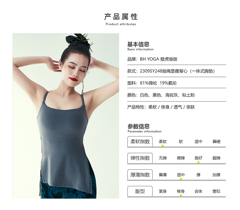 壁虎瑜伽【2309SY248】抽绳显瘦背心(一体式胸垫)清仓不退不换