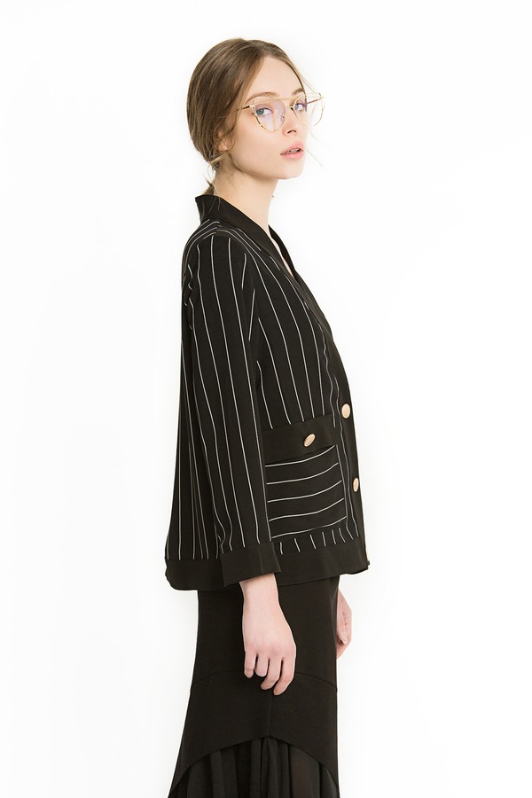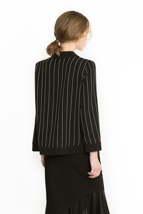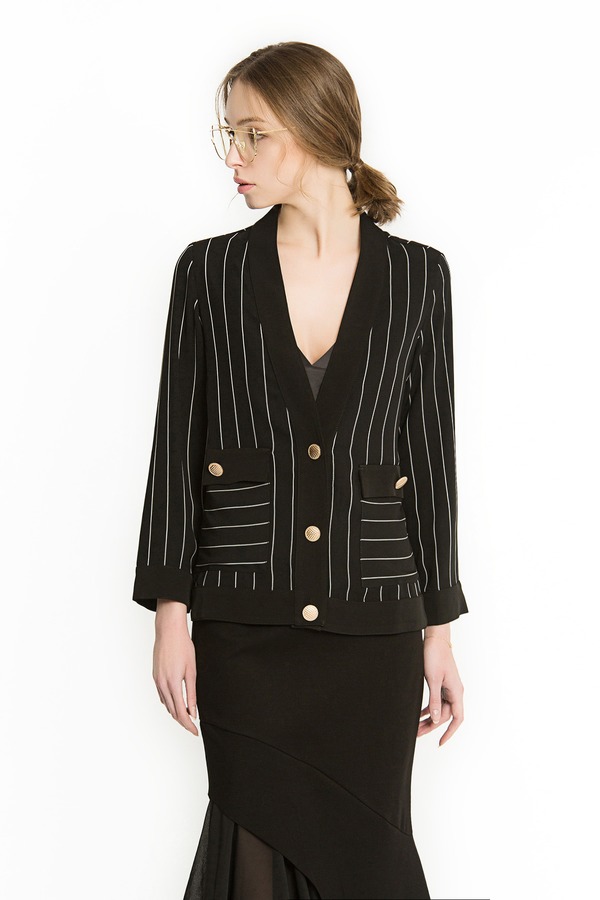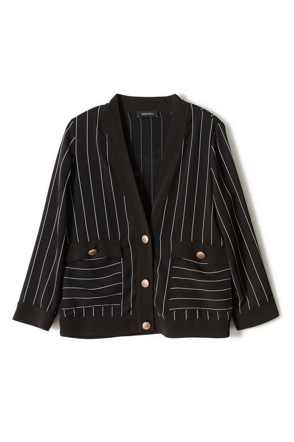 ROSEHOO 黑色V领条纹开衫 1154