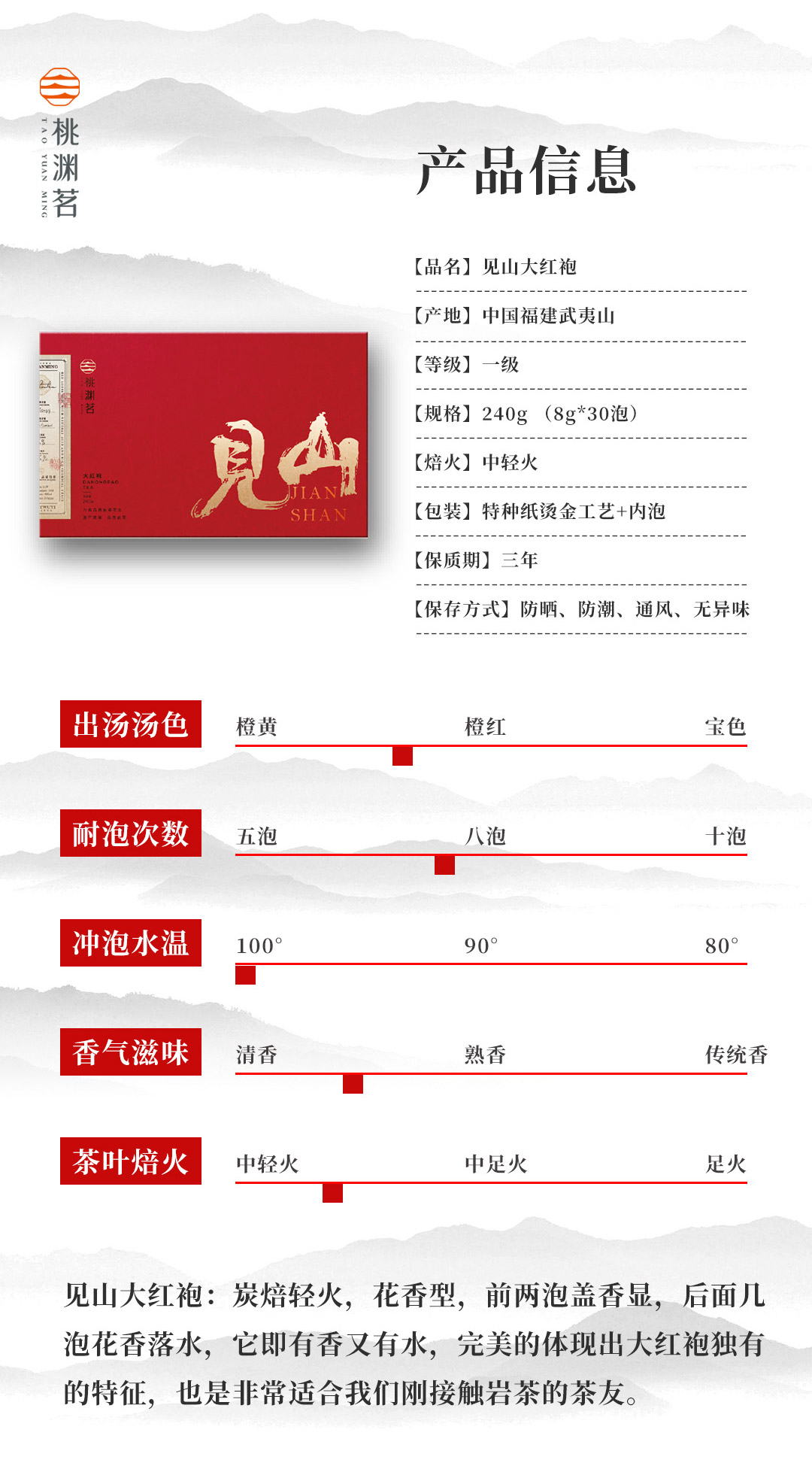 【花香清火】桃渊茗 见山 一级大红袍 武夷岩茶 240g/盒 礼盒装