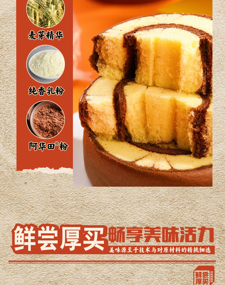 鲜尝厚买阿华田蛋糕卷300g 可可味瑞士卷夹心面包 100035999514