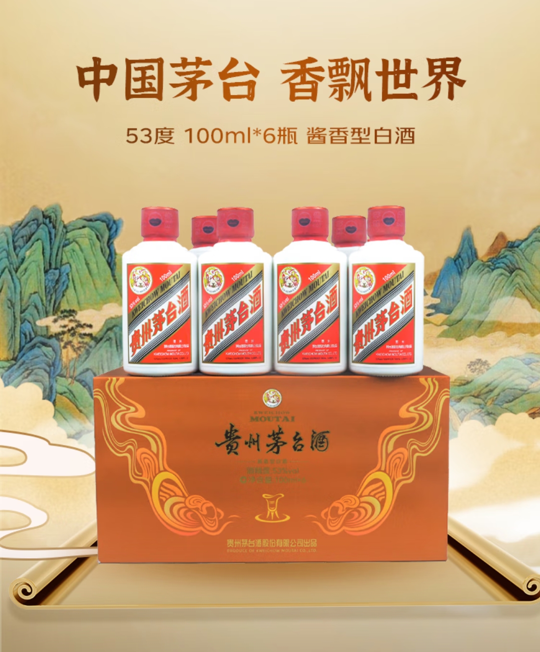 【自营】茅台飞天 酱香型白酒 53度 100mL*6 礼盒装新老包装随机发货 FZWJ
