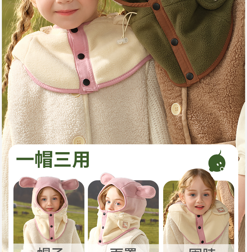 科巢儿童帽子秋冬季男女童宝宝套头冬天围巾围脖一体护耳防风保暖