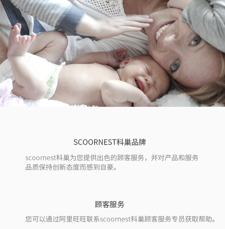 - Scoornest始终秉承给每一位宝宝送去科学的、关心的、创新的成长体验,通过提供商品和服务,使顾客形成守护、发展、巩固这种弥足珍贵的亲情的爱。