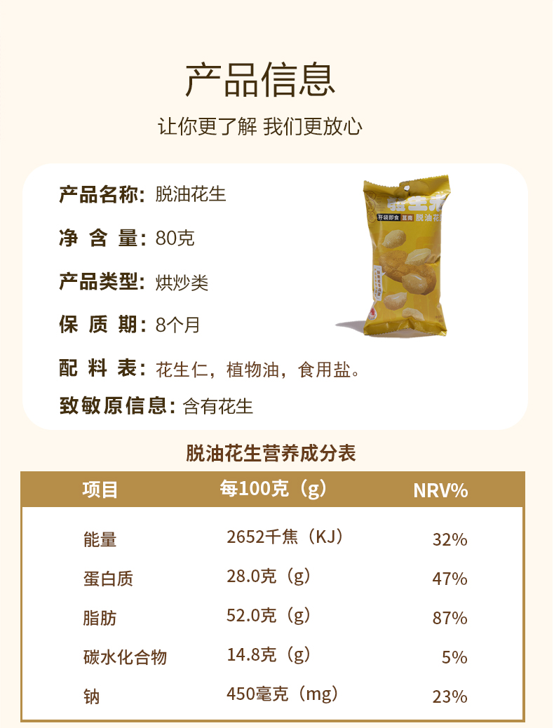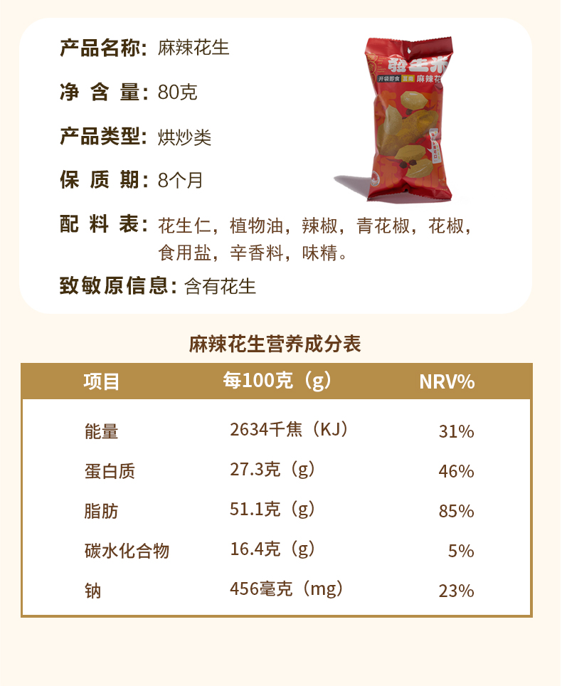 【质农】地理标志产品 沂蒙莒南花生米80克*5袋 休闲下酒菜解馋脱油花生炒货不油腻无负担