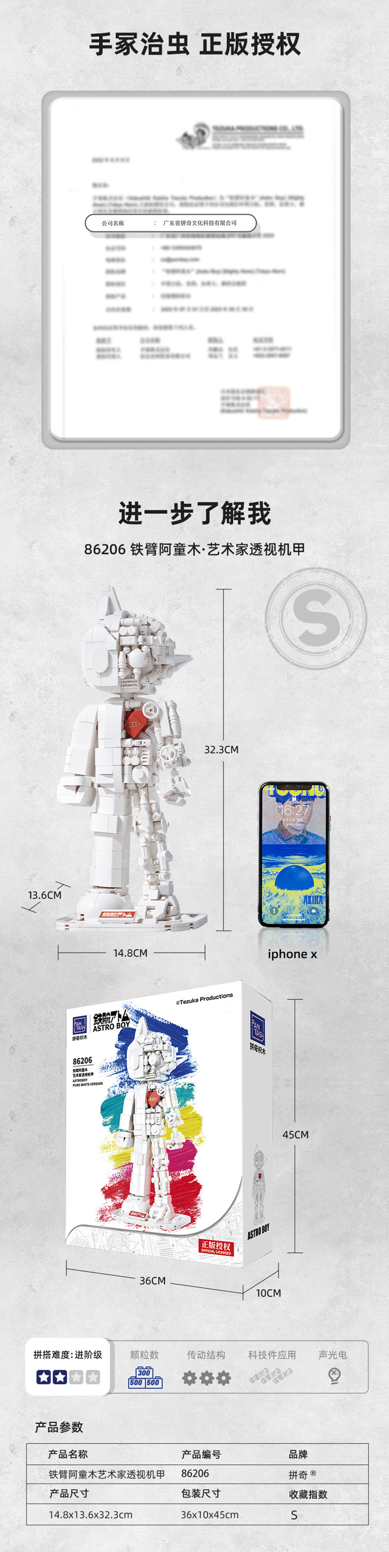 拼奇积木86206-铁臂阿童木· 纯白透视机甲