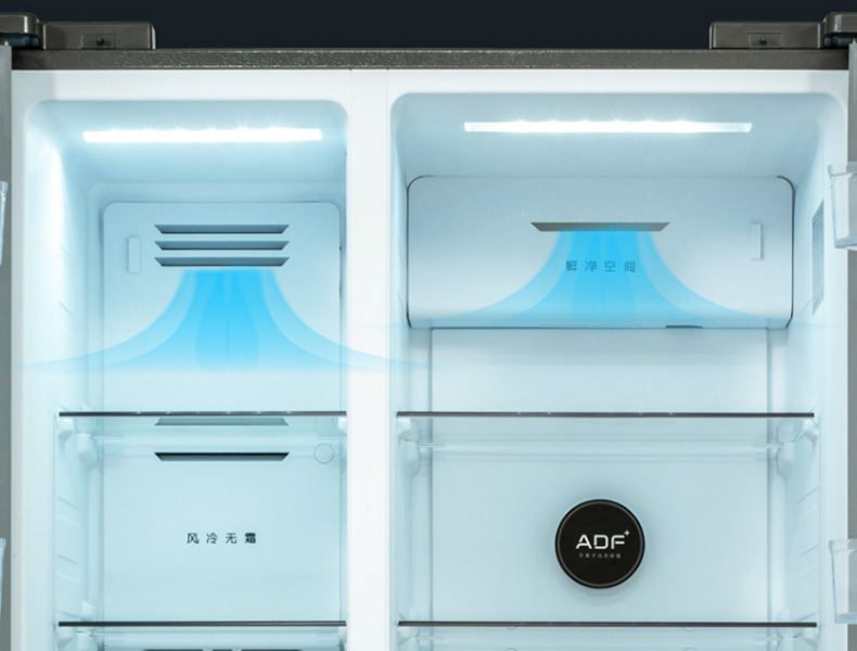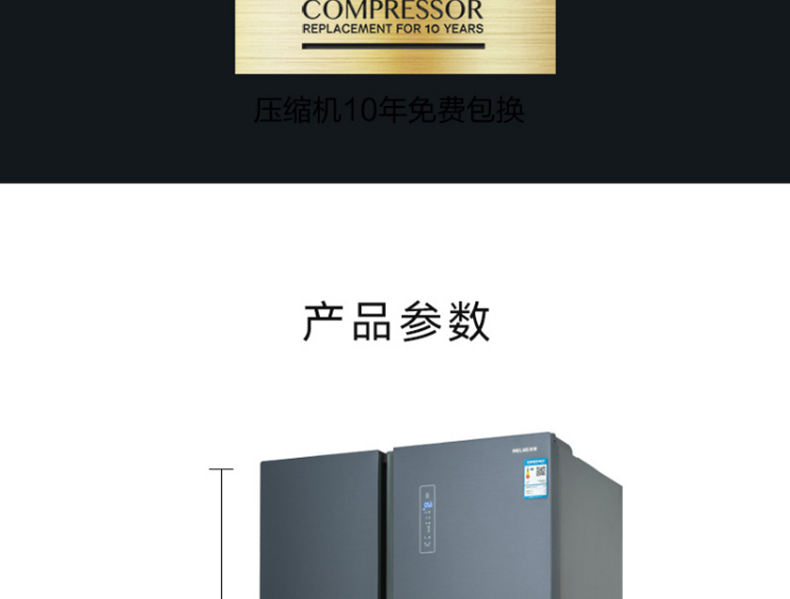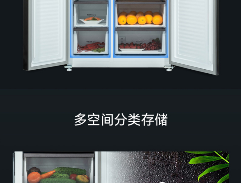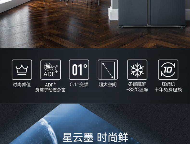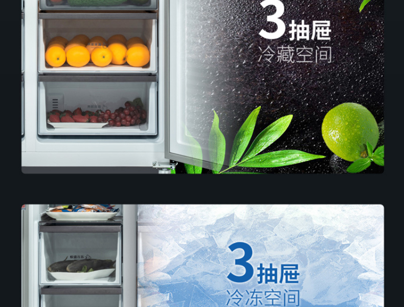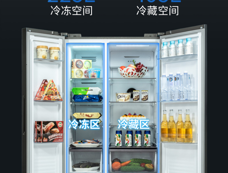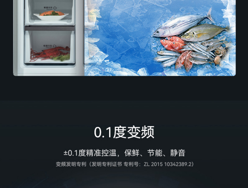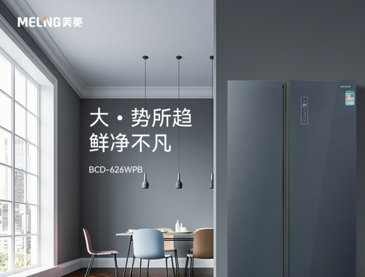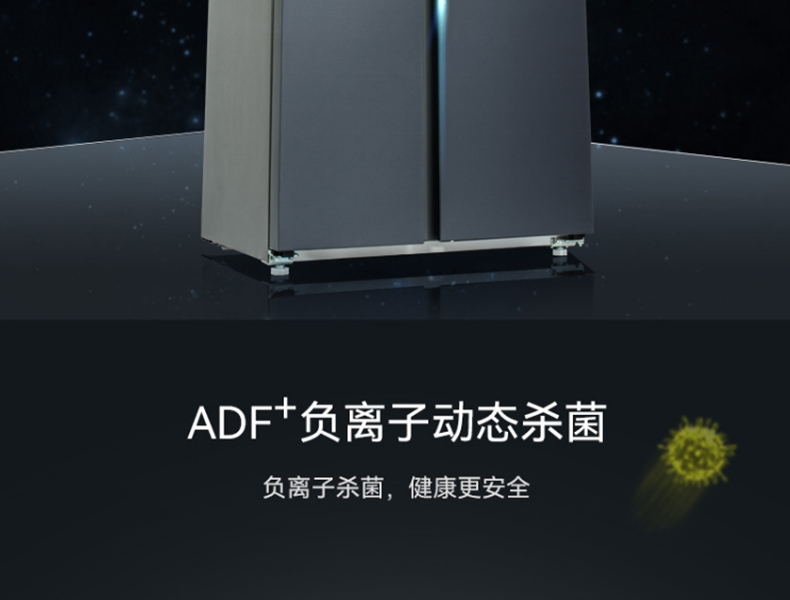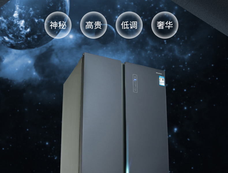 美菱626L风冷无霜0.1度精准温控双变频家用节能对开门双开门冰箱一级能效大容量钢化玻璃面板 BCD-626WPB星云墨