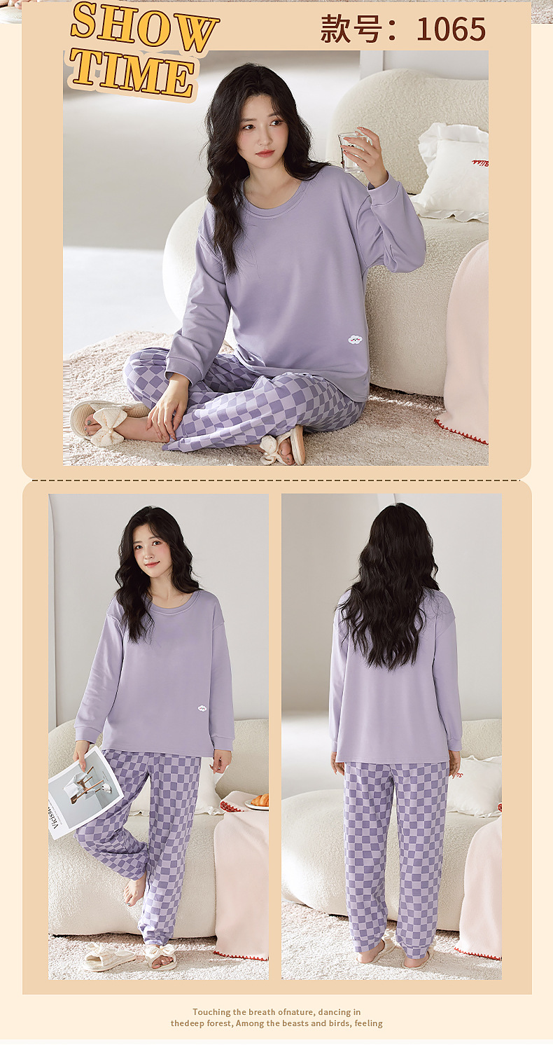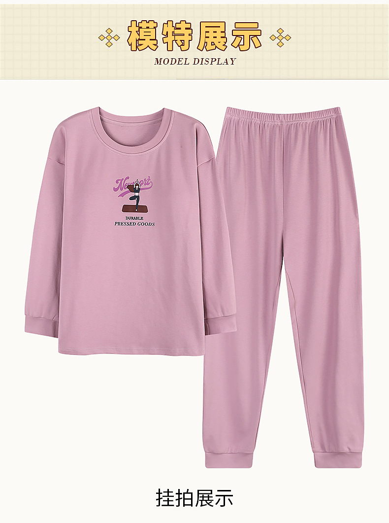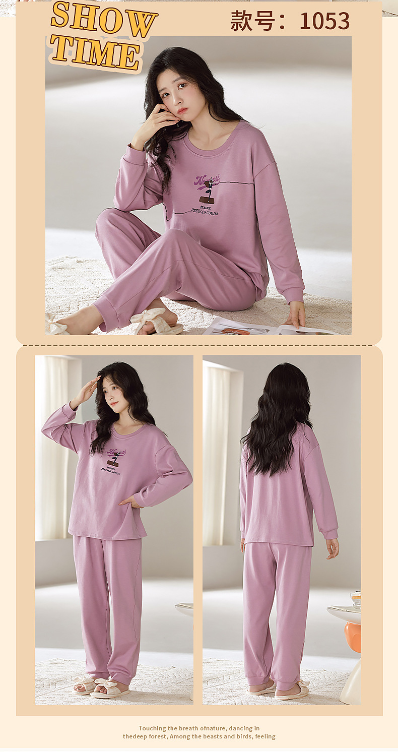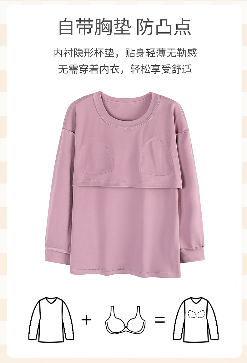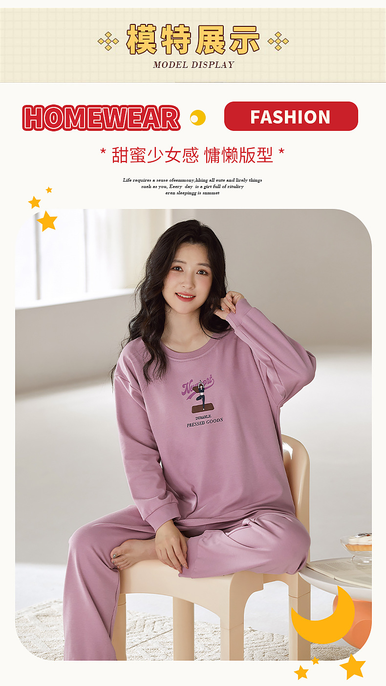 2025年带胸垫卡通薄款睡衣女春秋款长袖圆领棉质家居服可外穿套装
