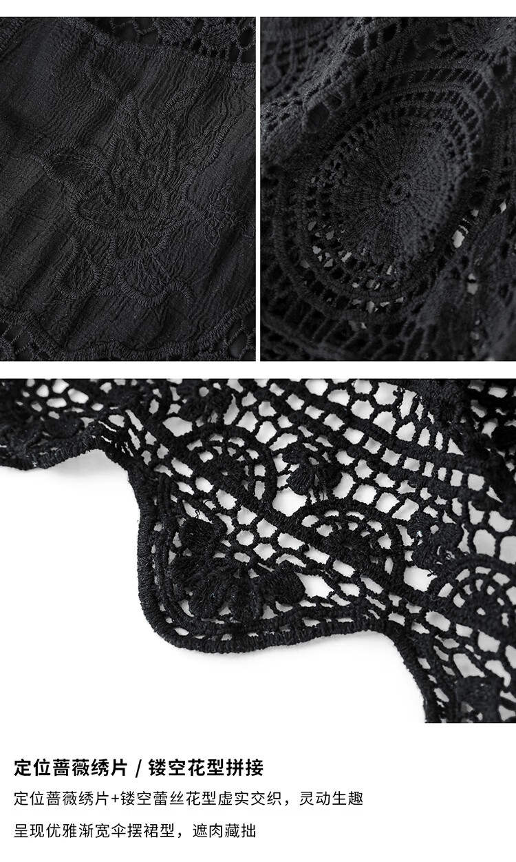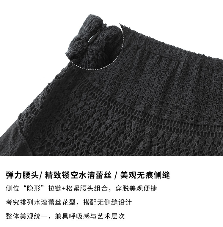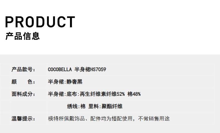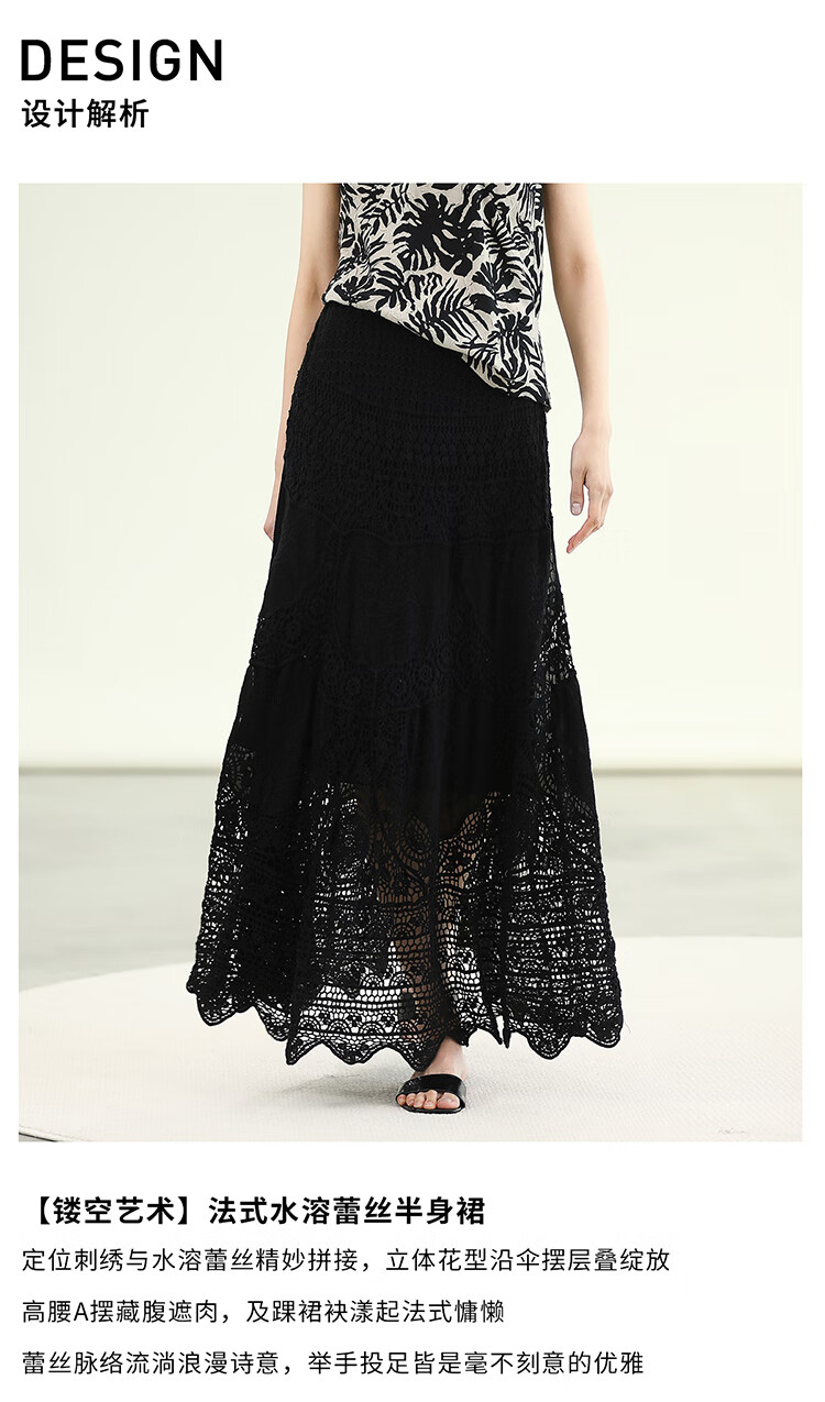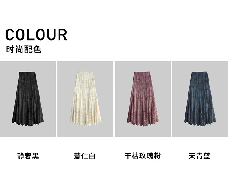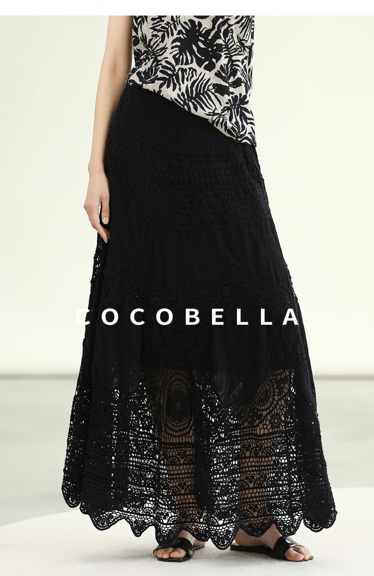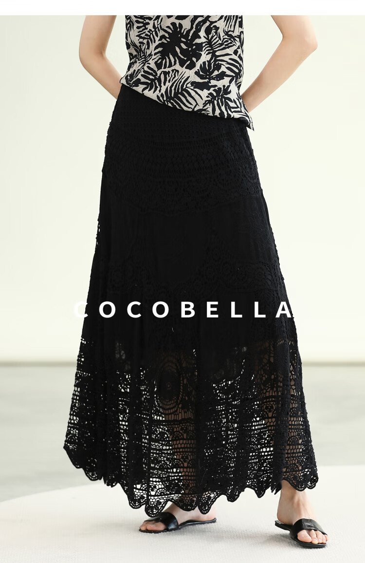 COCOBELLA镂空水溶蕾丝刺绣半身裙赫本风舒适无缝长裙HS7059-4