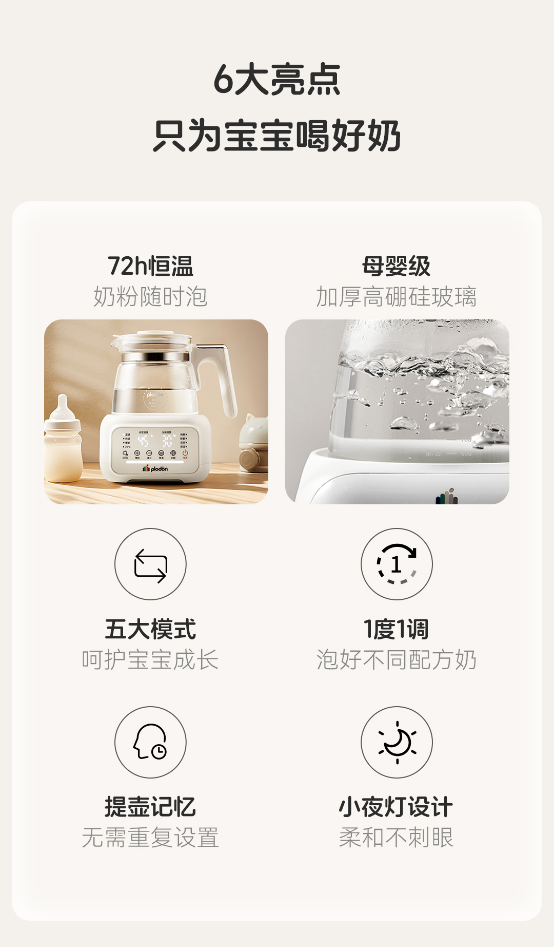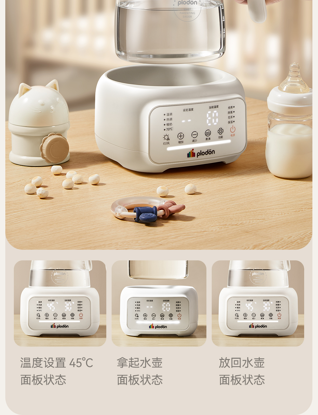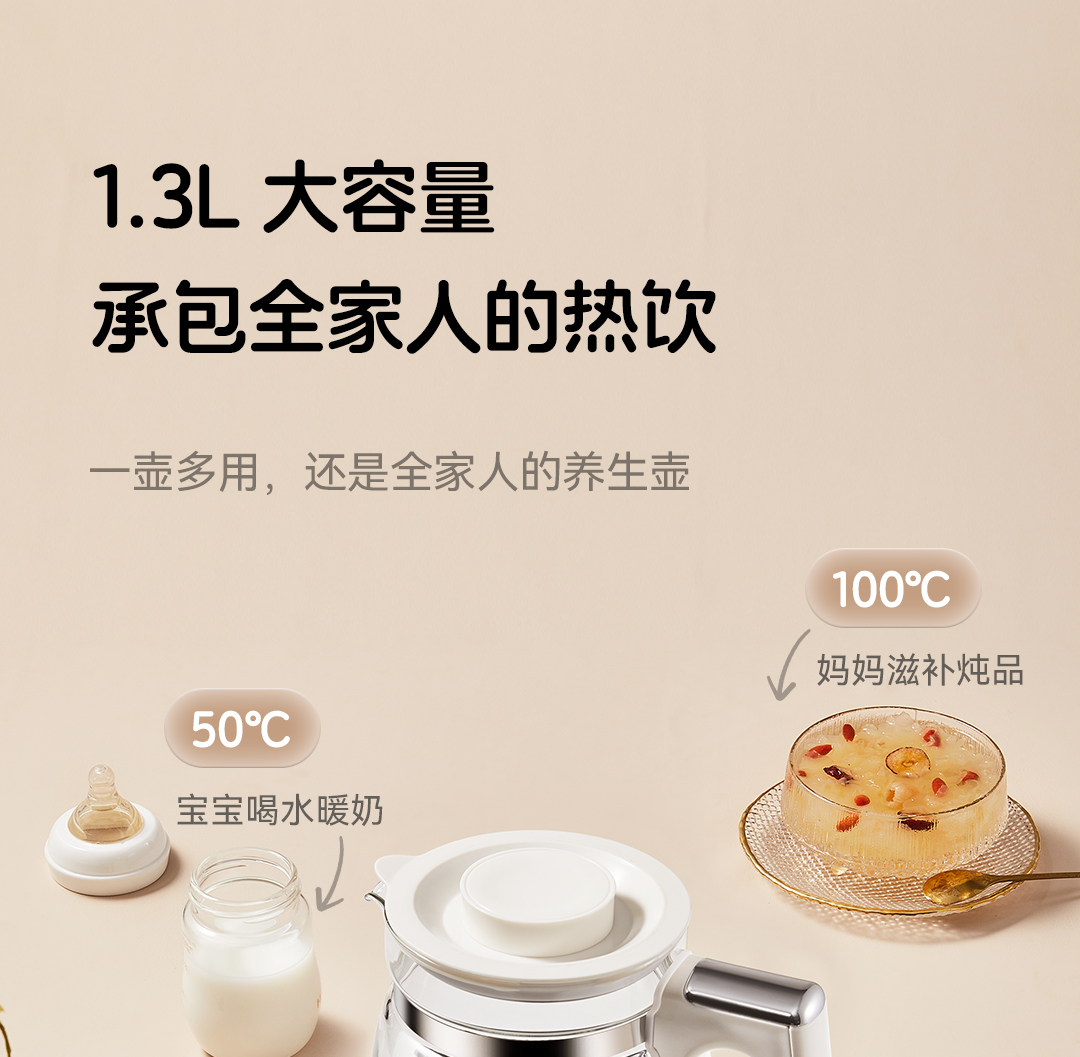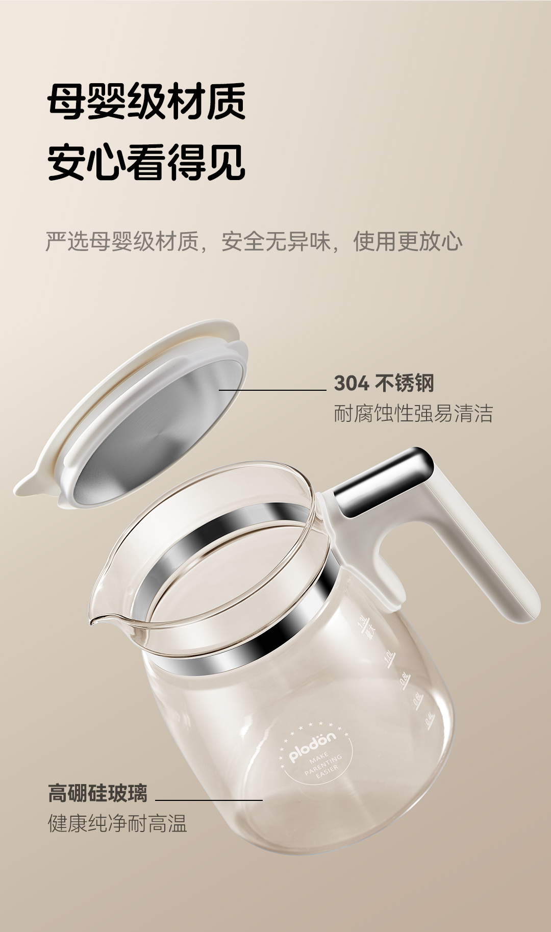浦利顿全玻璃恒温壶泡奶机婴儿专用泡冲奶家用调奶器母婴级养生壶PLD-501