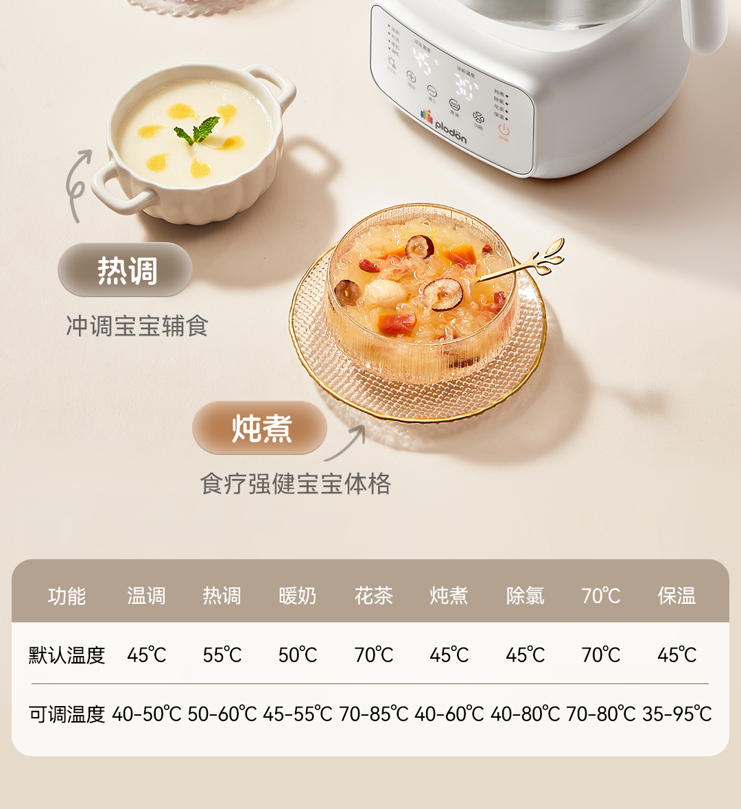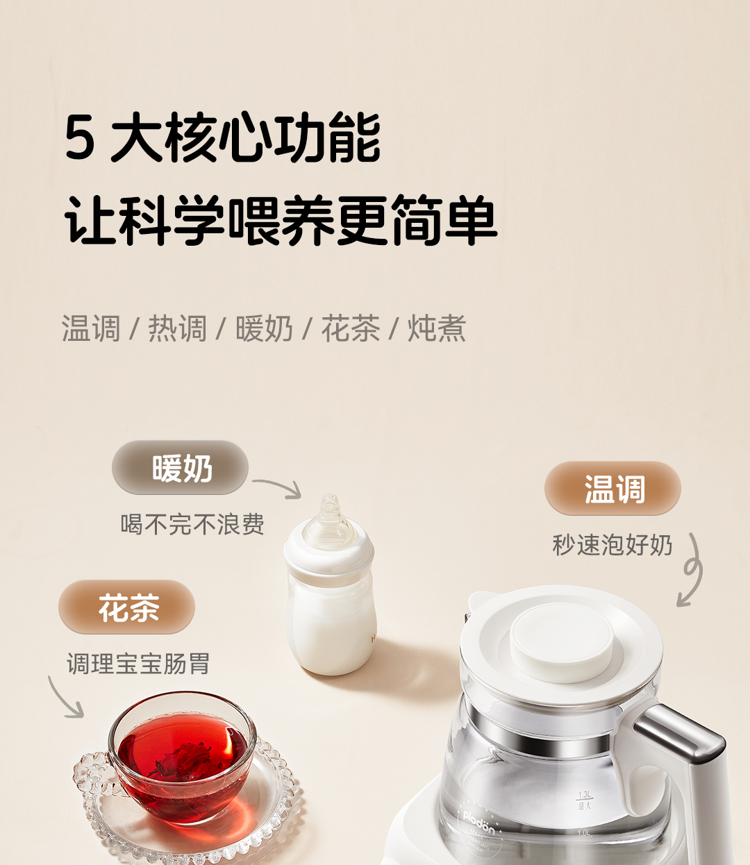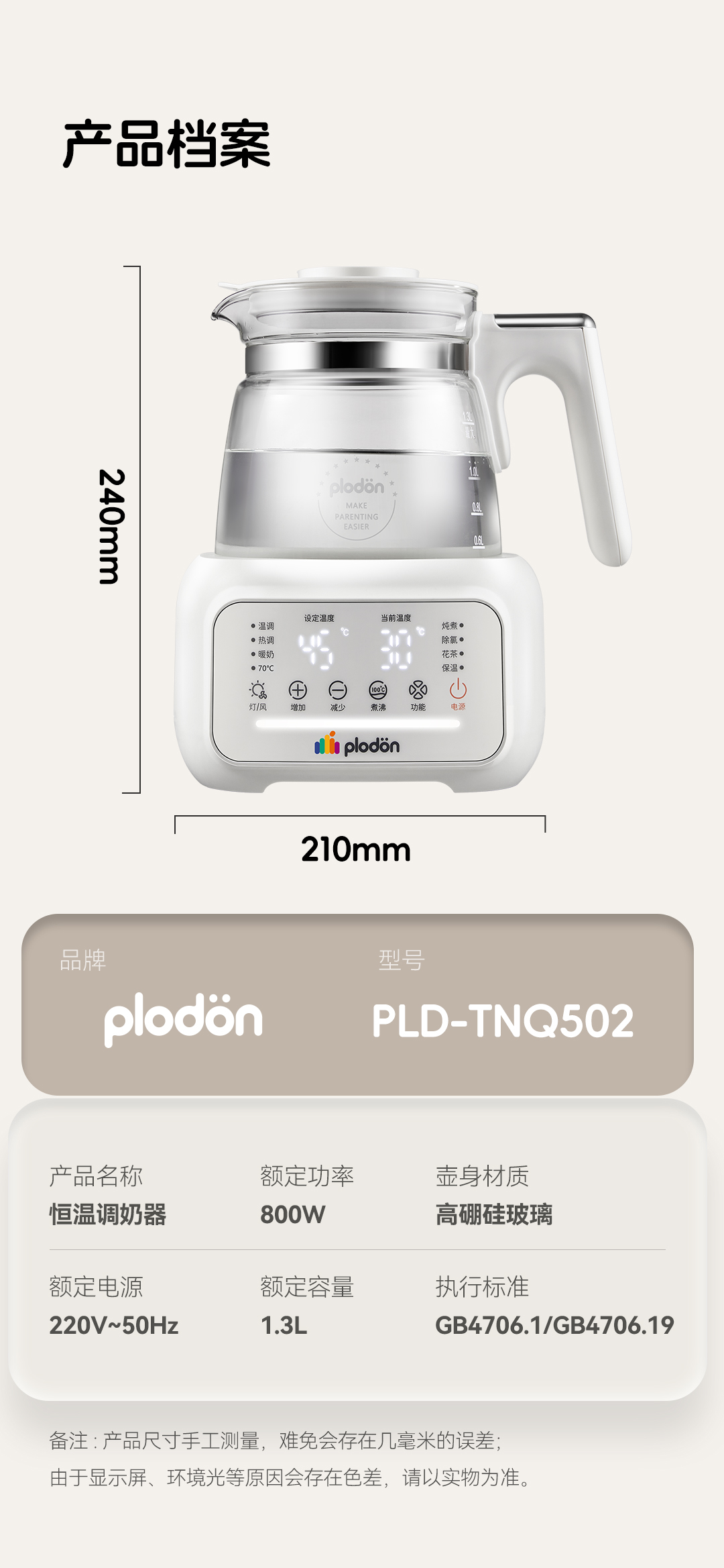 浦利顿全玻璃恒温壶泡奶机婴儿专用泡冲奶家用调奶器母婴级养生壶PLD-501