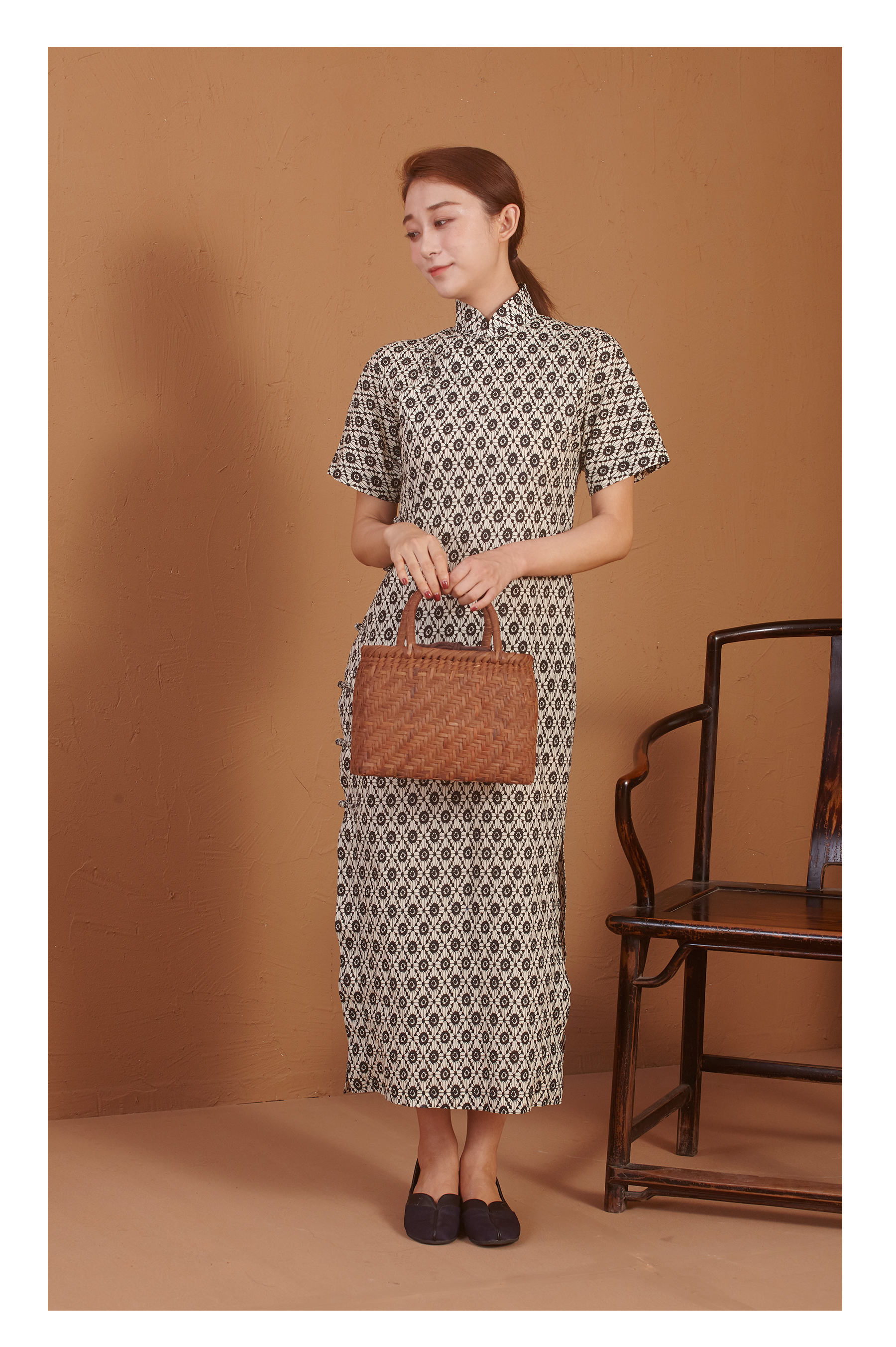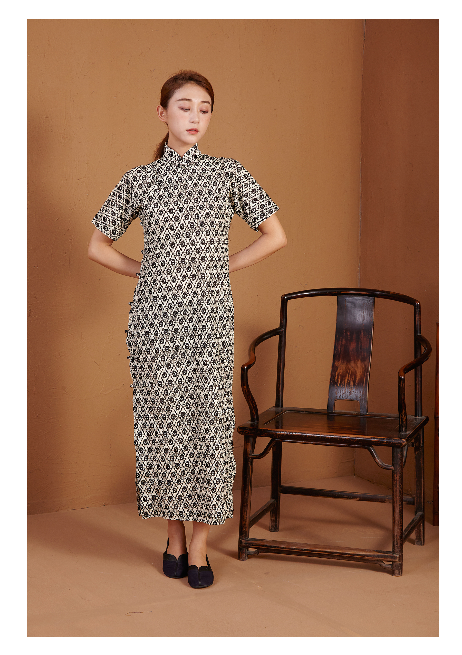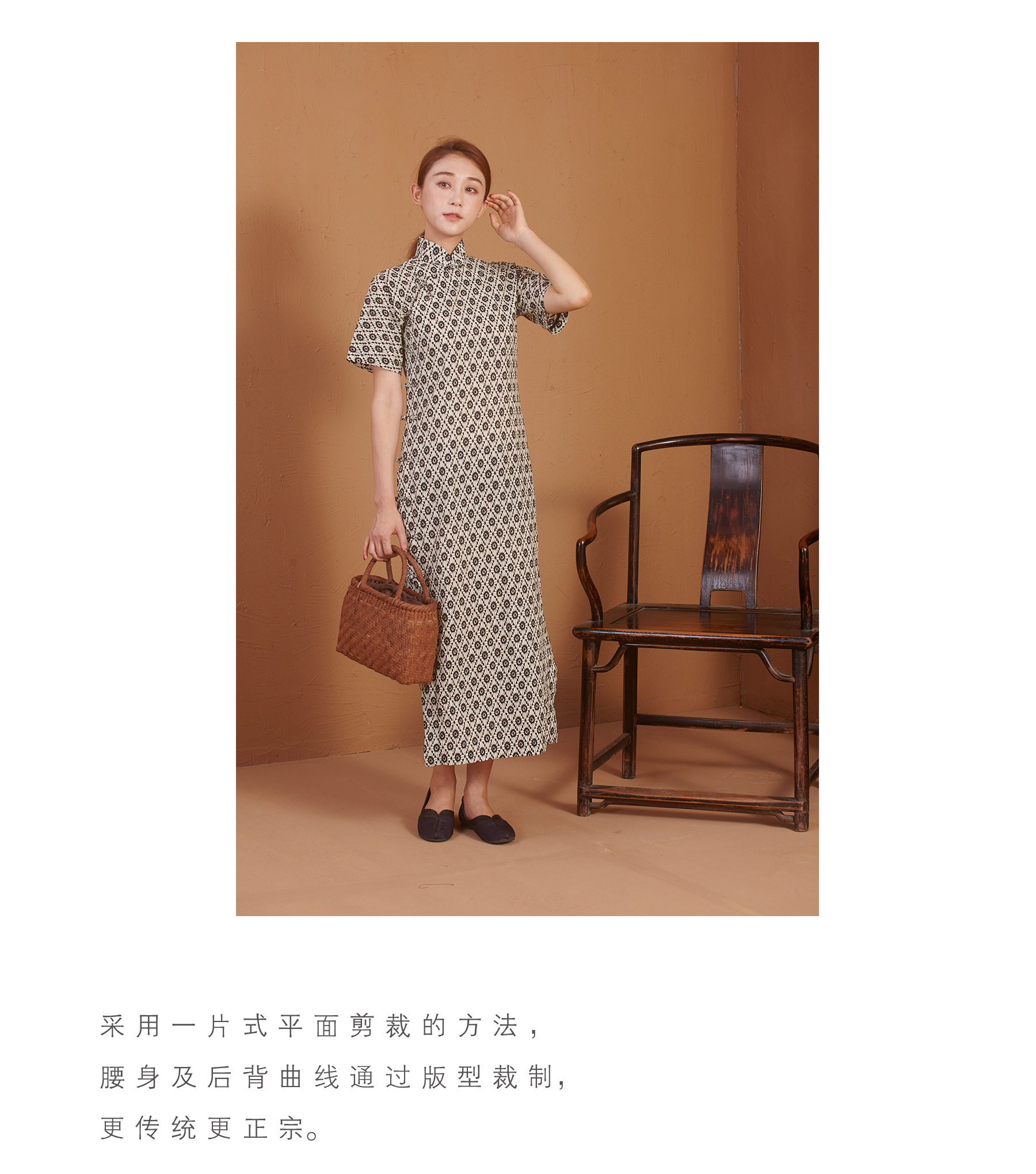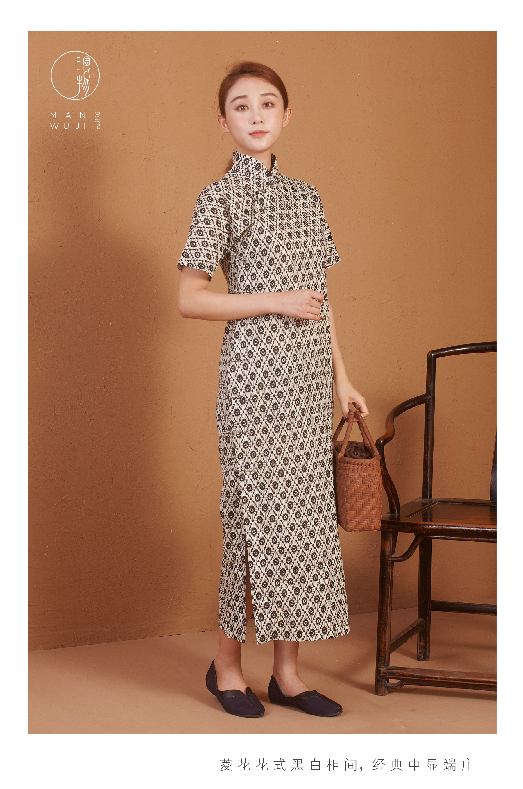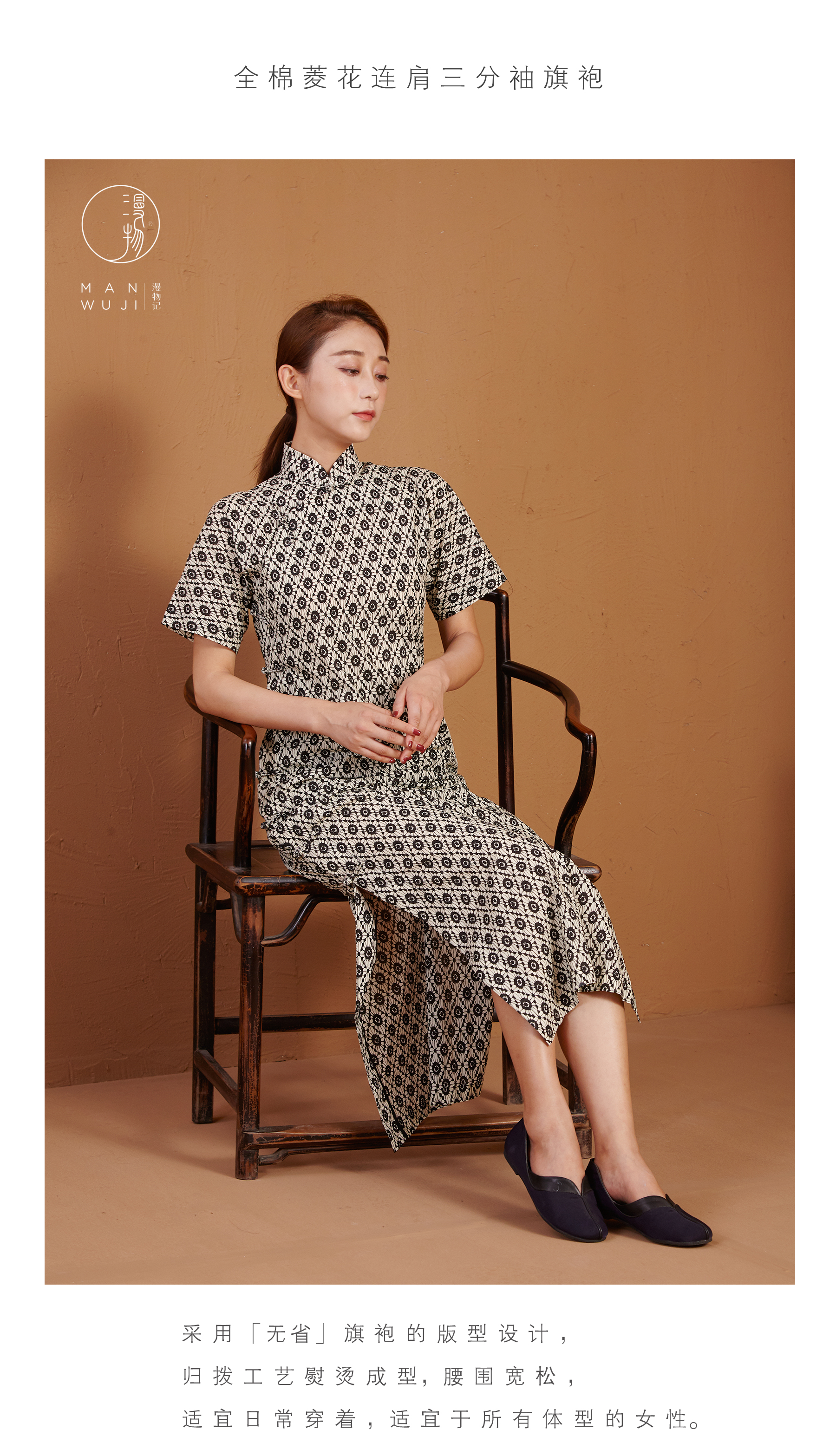 【漫物记】全棉菱花连肩三分袖旗袍
