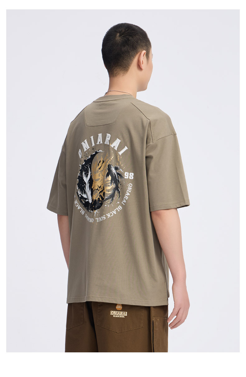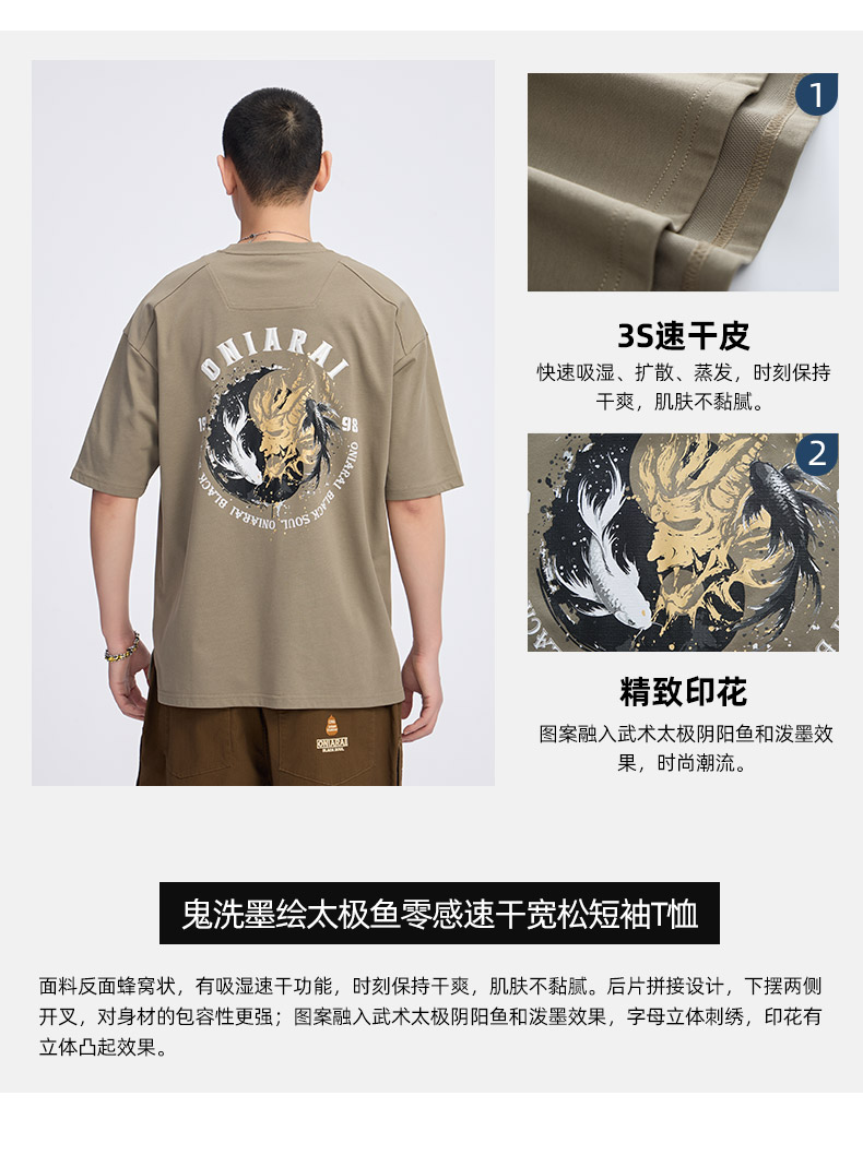 ONIARAI/鬼洗25春夏新品墨绘太极鱼零感速干宽松短T男款 B840267