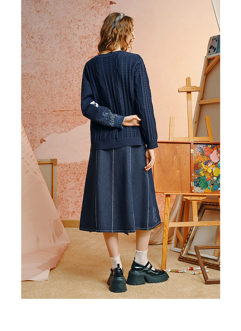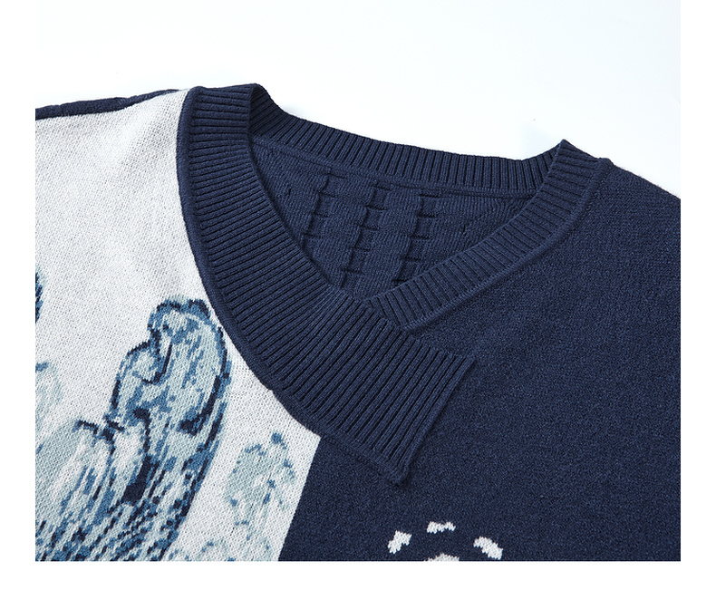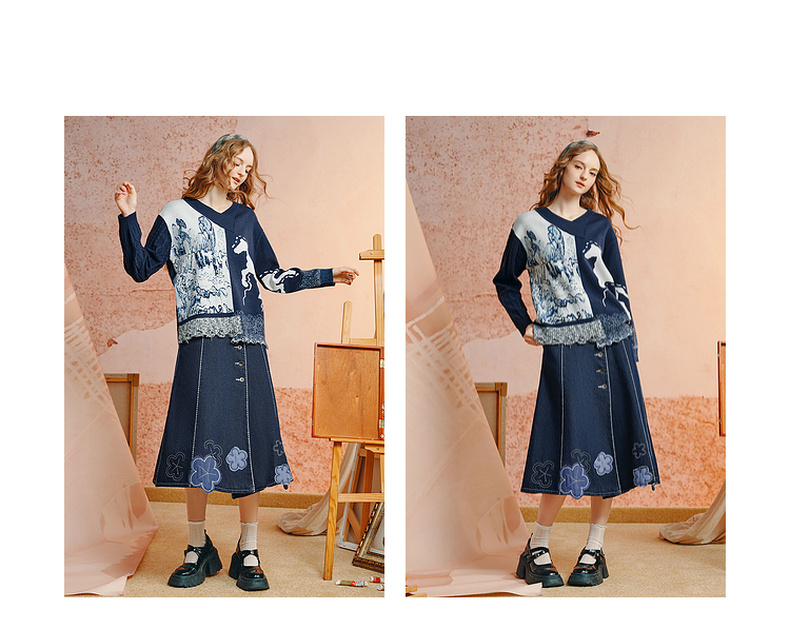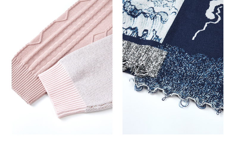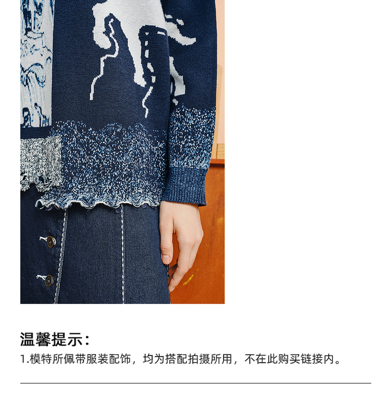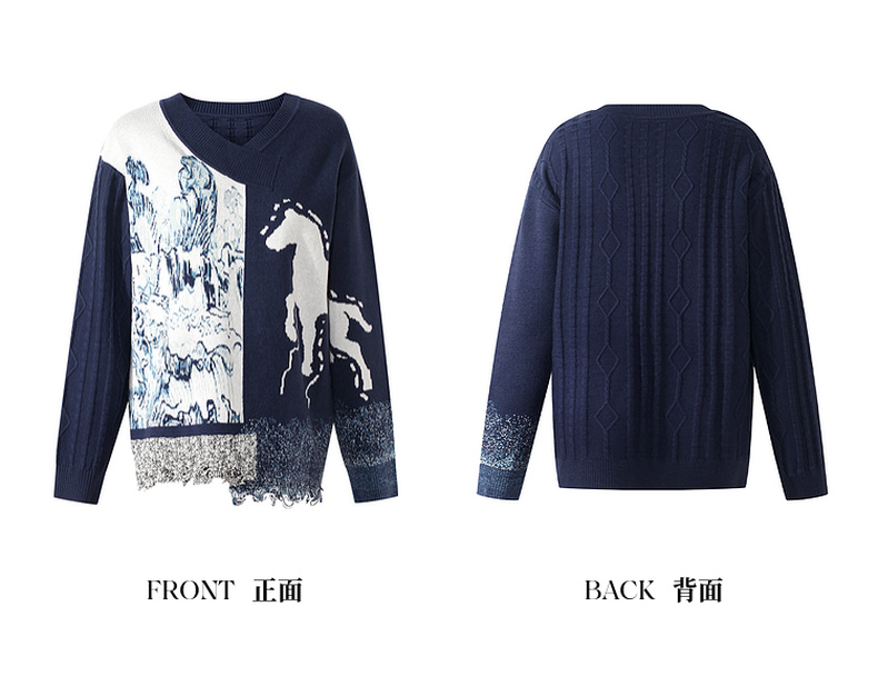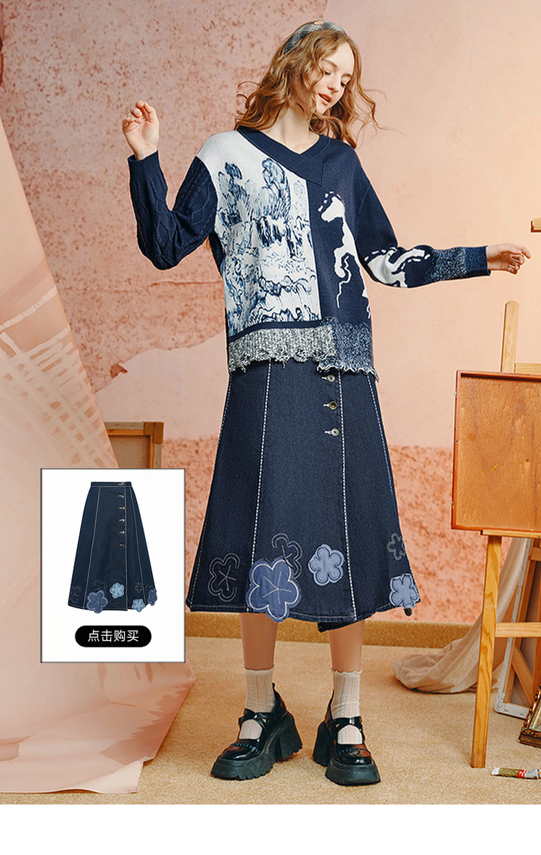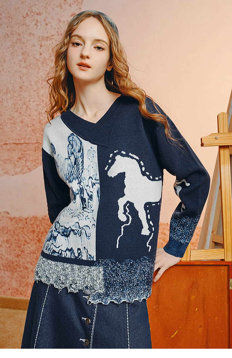 两三事梵高文艺垂芒溯夜2025秋季新款不对称木耳边下摆花色毛衣女