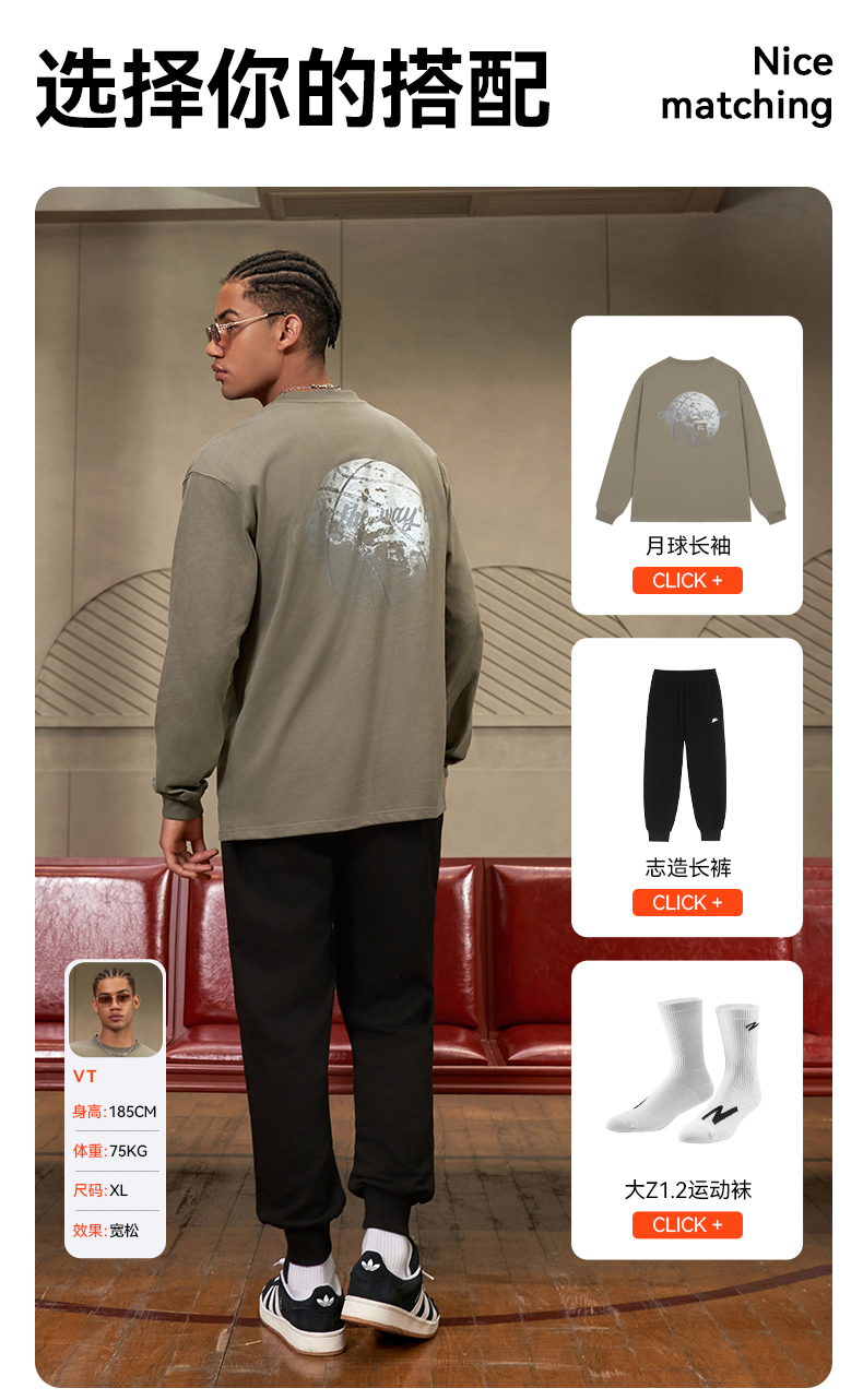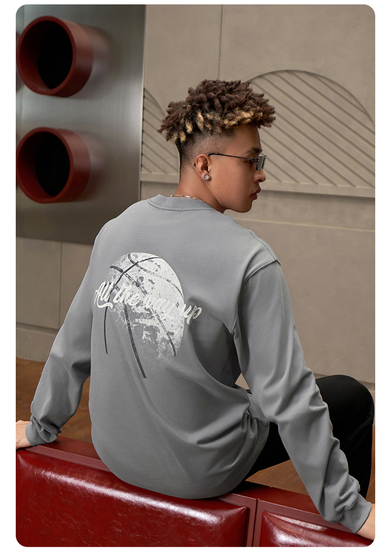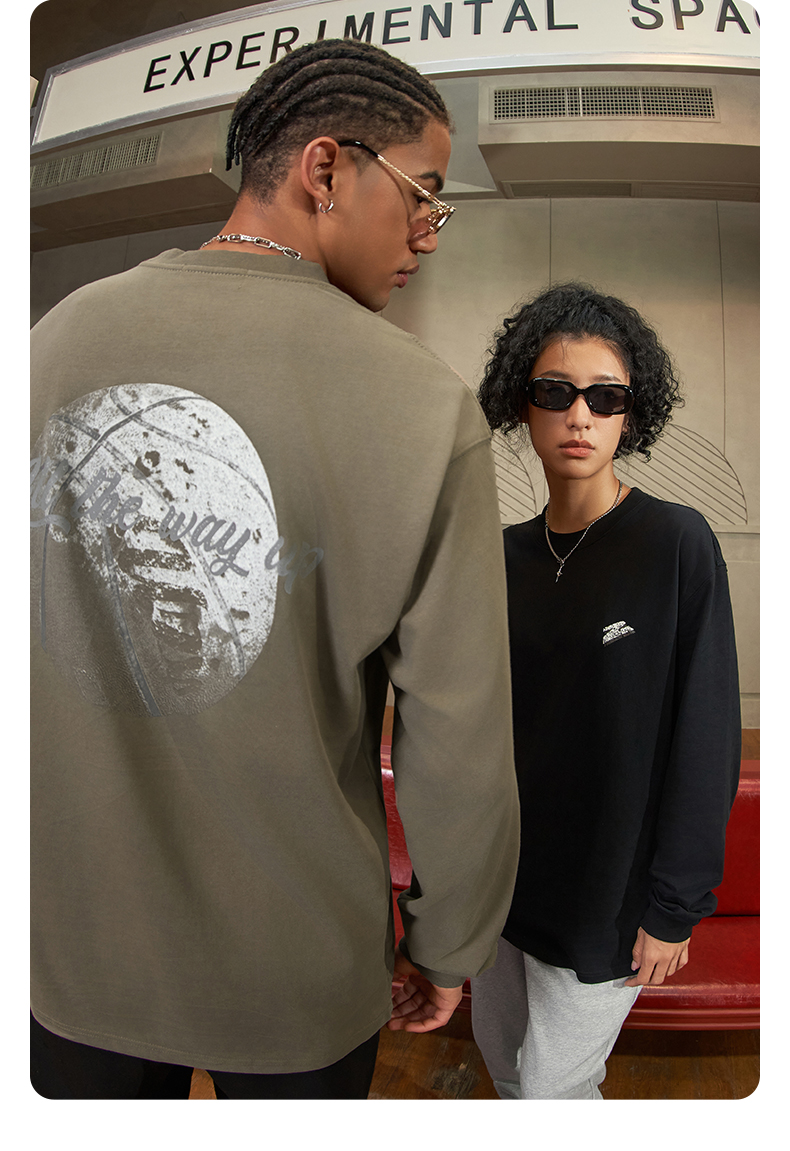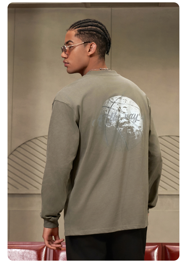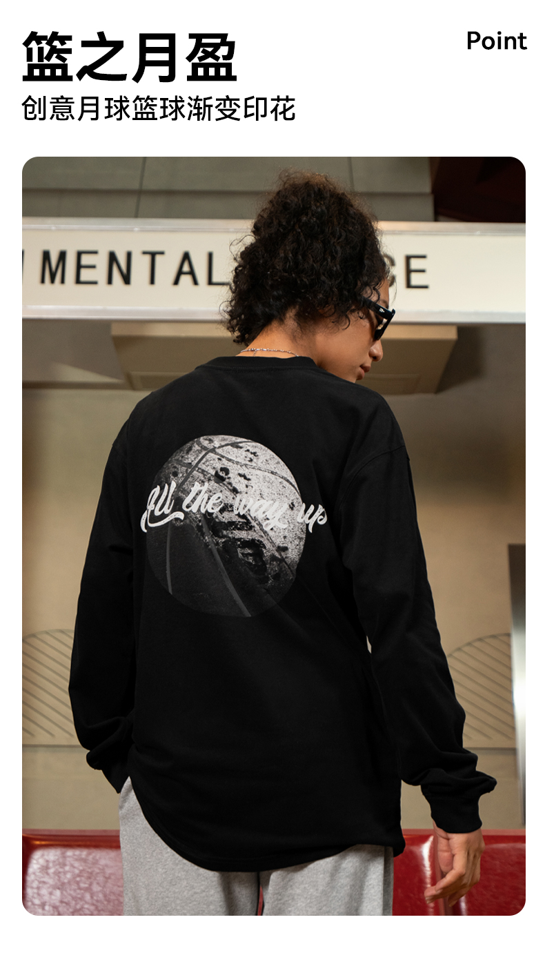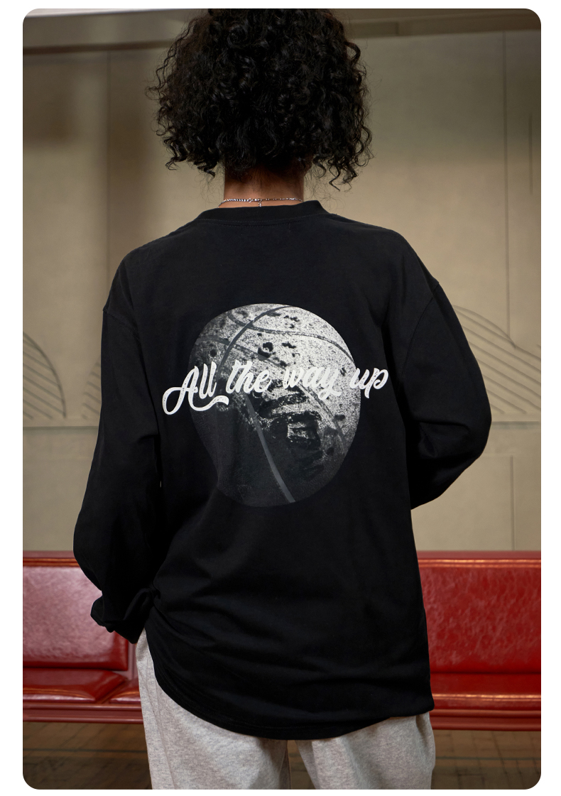 有志者UZIS 美式复古潮流T恤男秋季休闲纯棉圆领篮球运动长袖月球