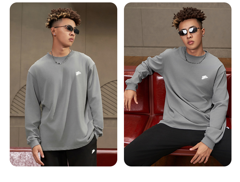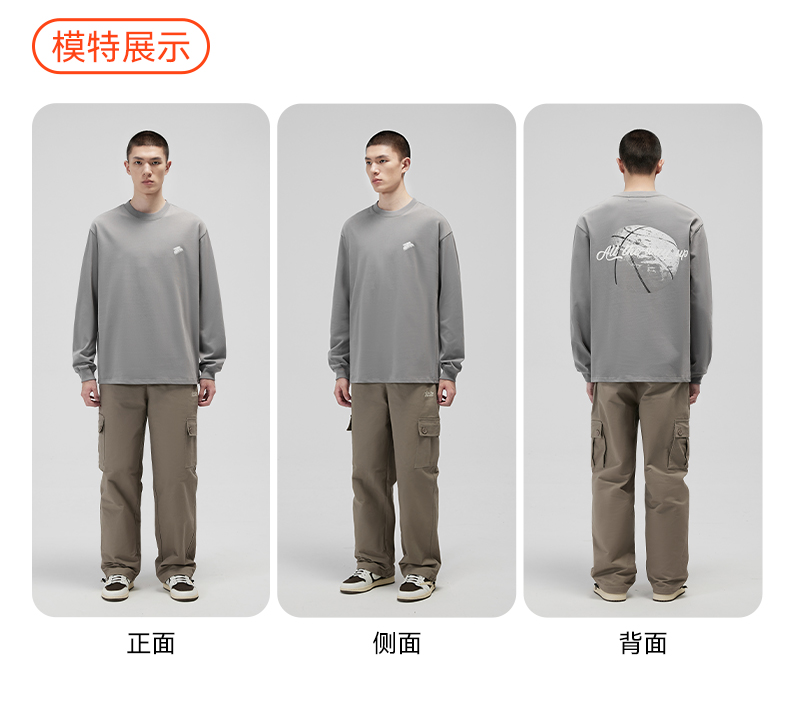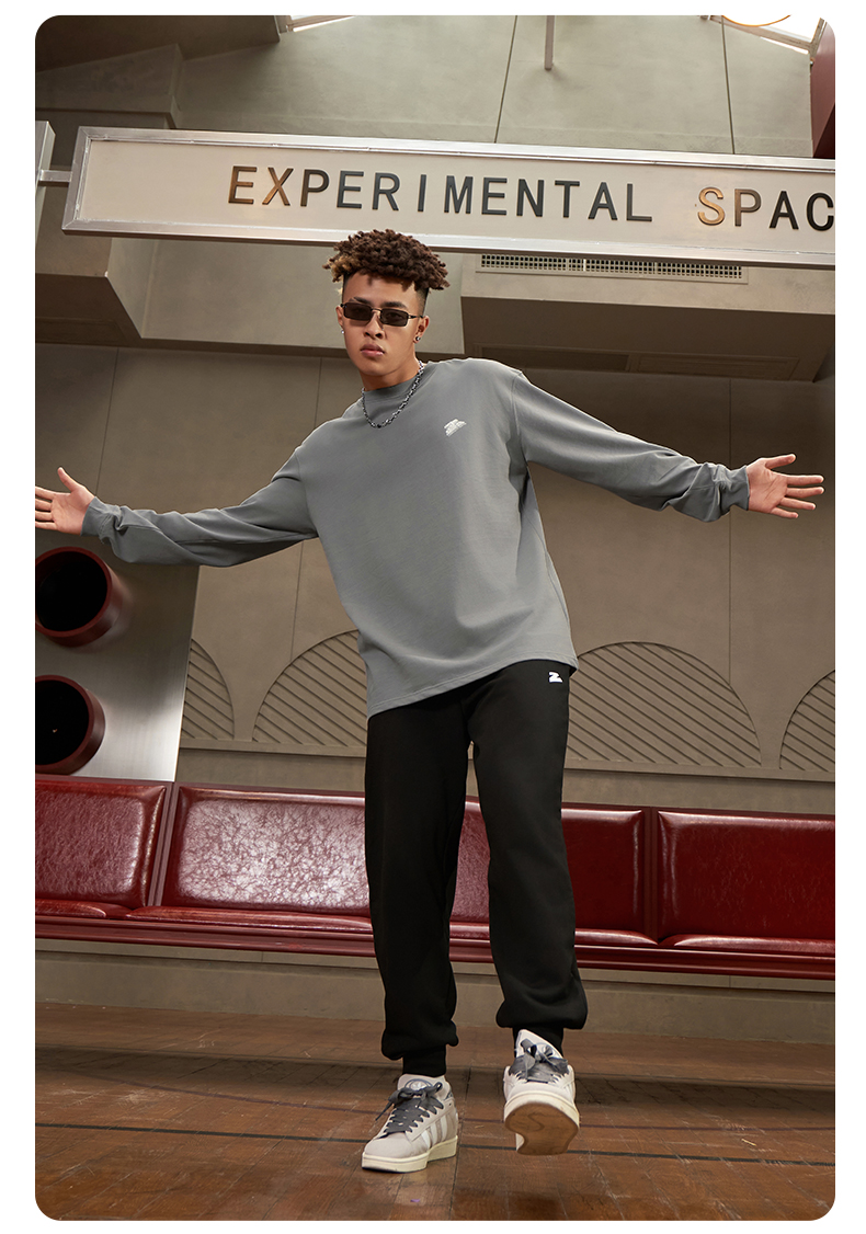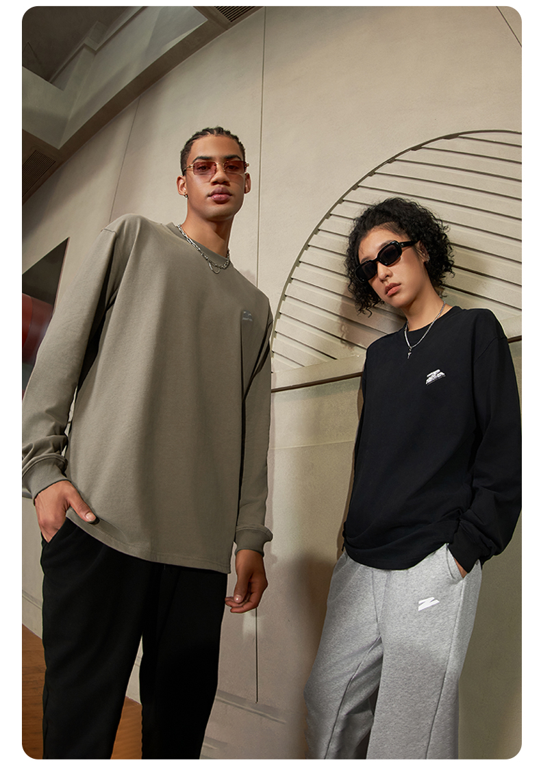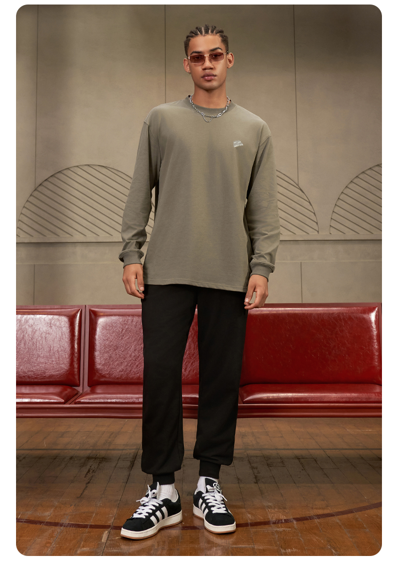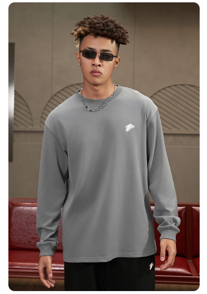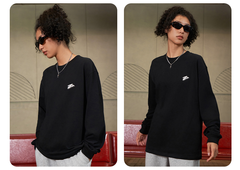 有志者UZIS 美式复古潮流T恤男秋季休闲纯棉圆领篮球运动长袖月球