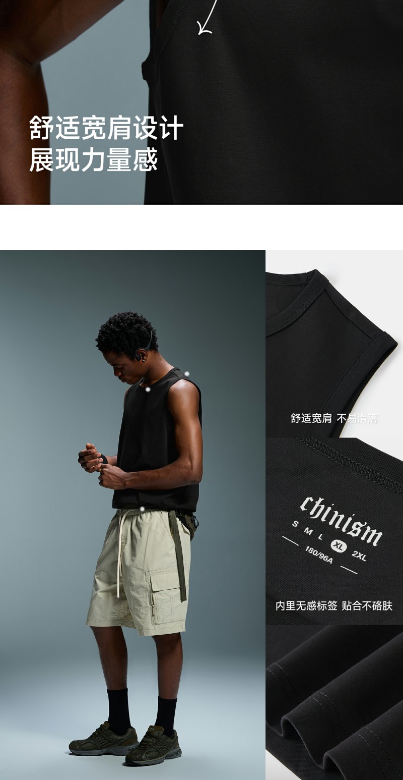 CHINISM赤尘 黑色跨栏背心男夏季新款纯棉男士坎肩男生无袖t恤