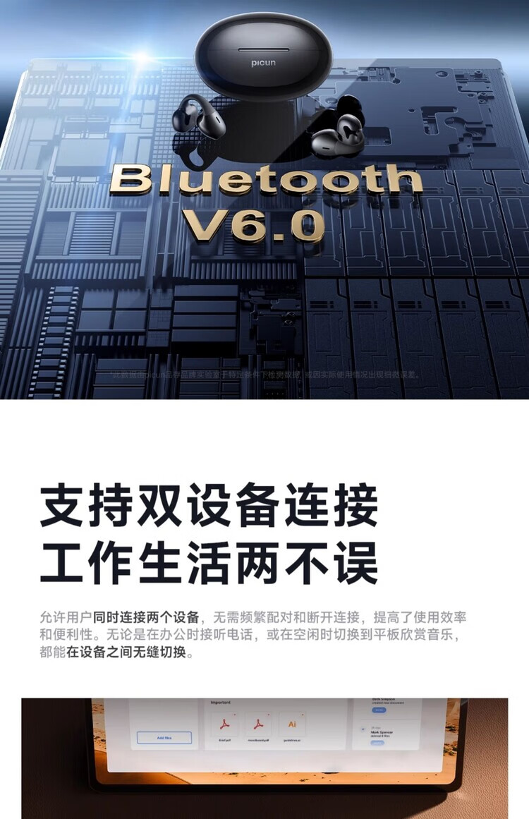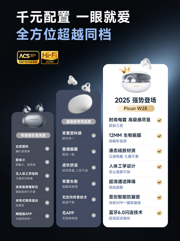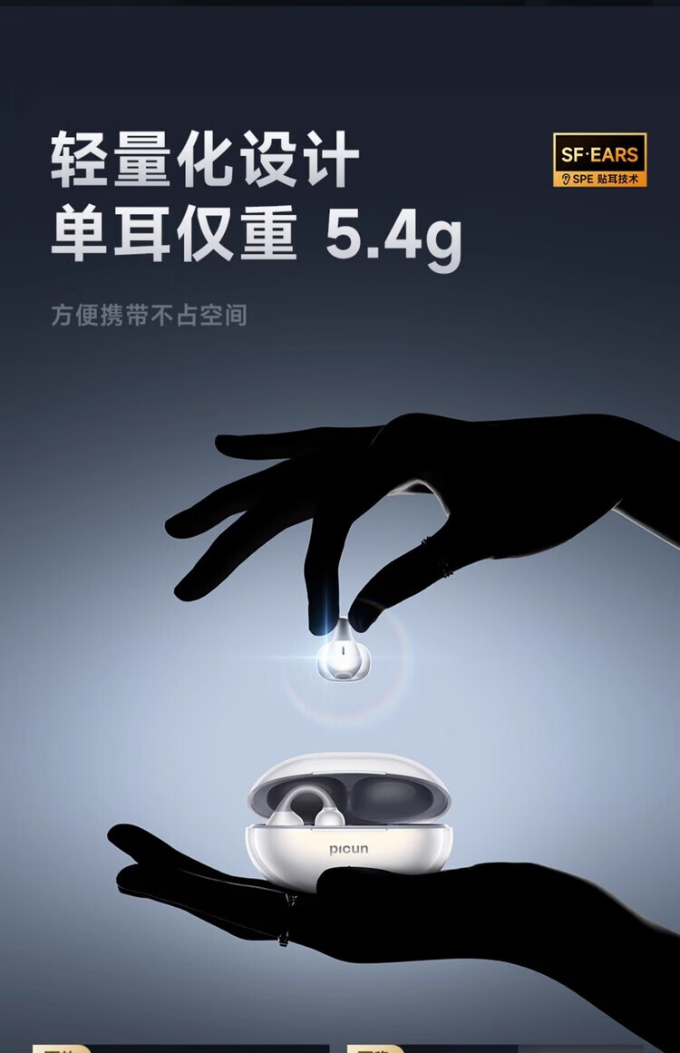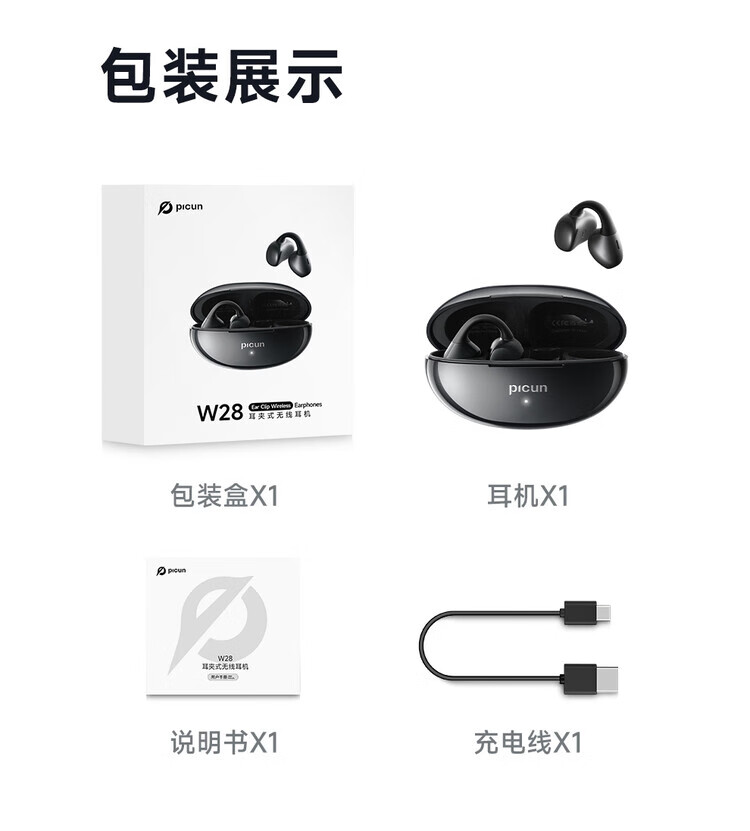 品存(picun)IPX5防水防汗兼容双设备耳夹式耳机W28