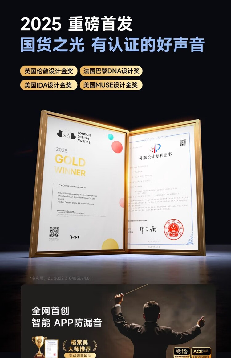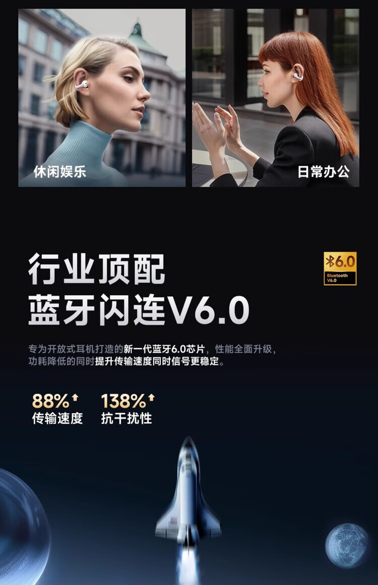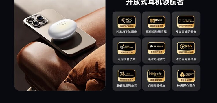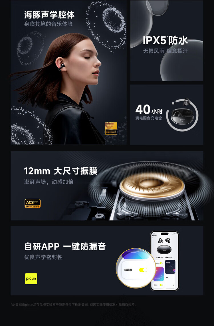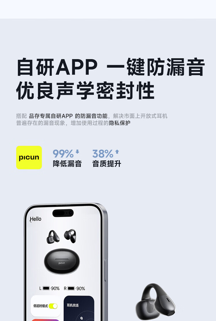 品存(picun)IPX5防水防汗兼容双设备耳夹式耳机W28