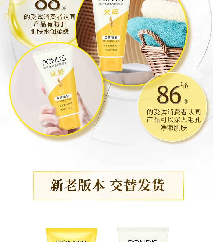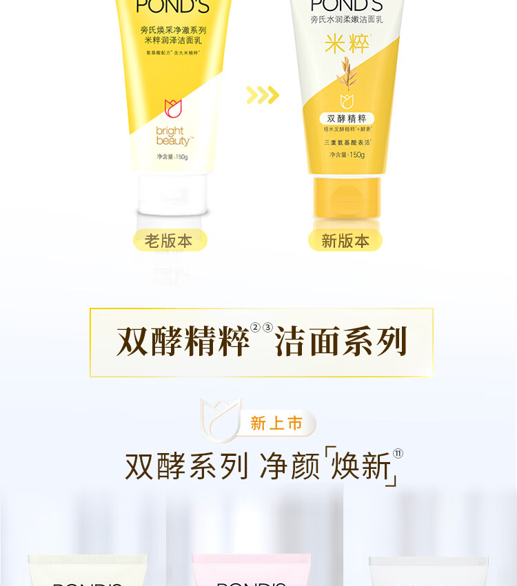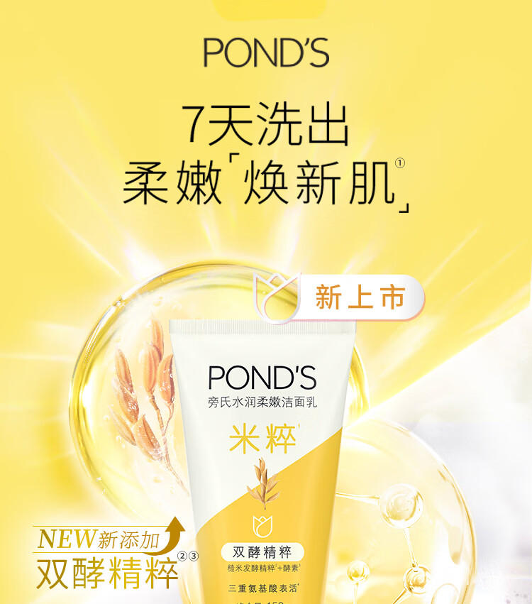 旁氏(POND'S)米粹润泽保湿洁面乳150g 氨基酸洗面奶男女去角质 615036