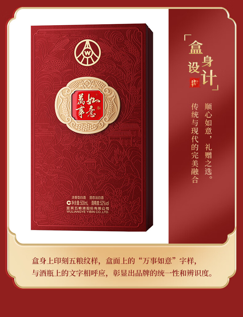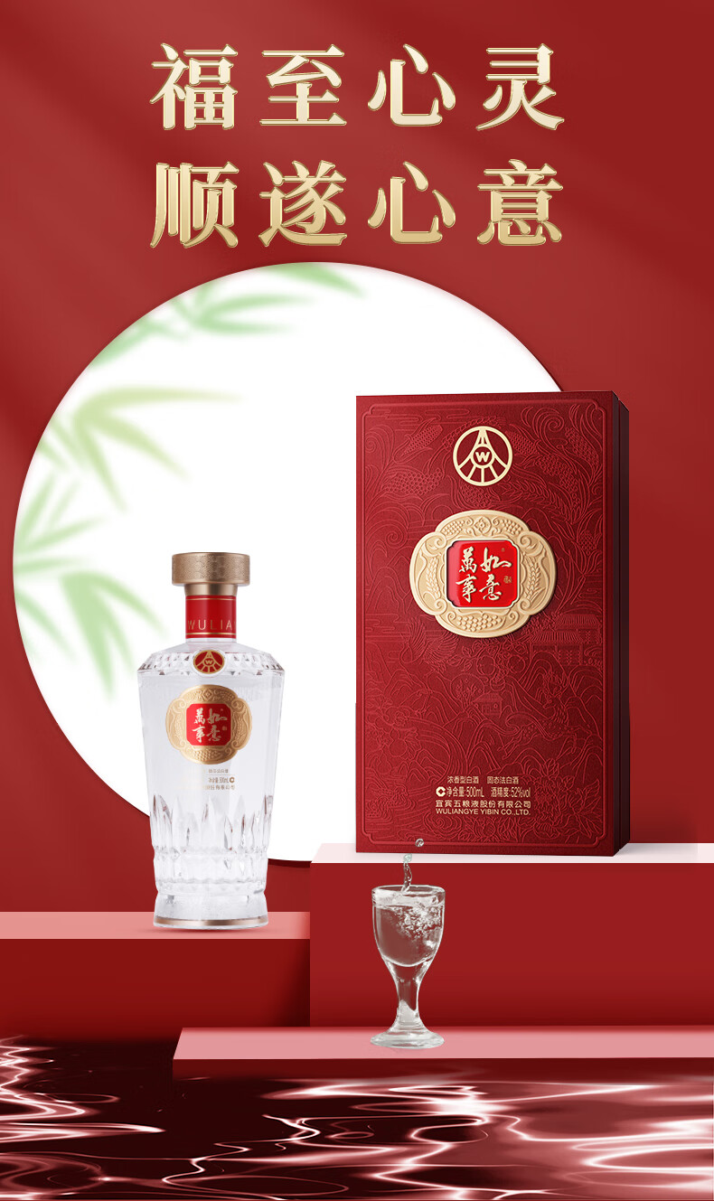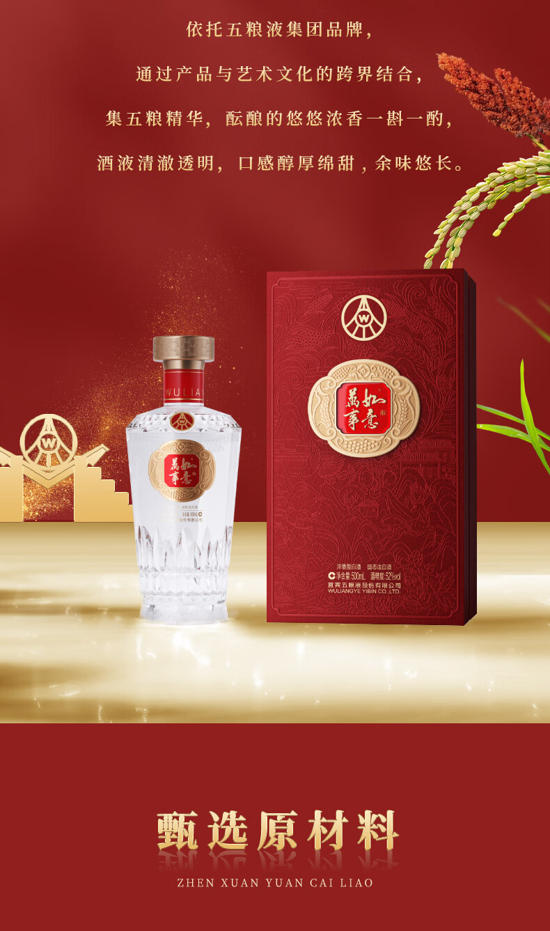 五粮液万事如意福顺浓香型纯粮食白酒 52度500ml×2瓶