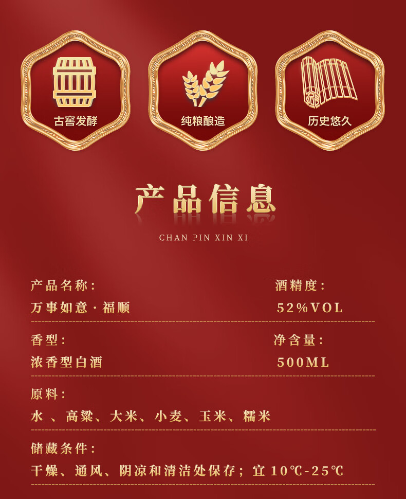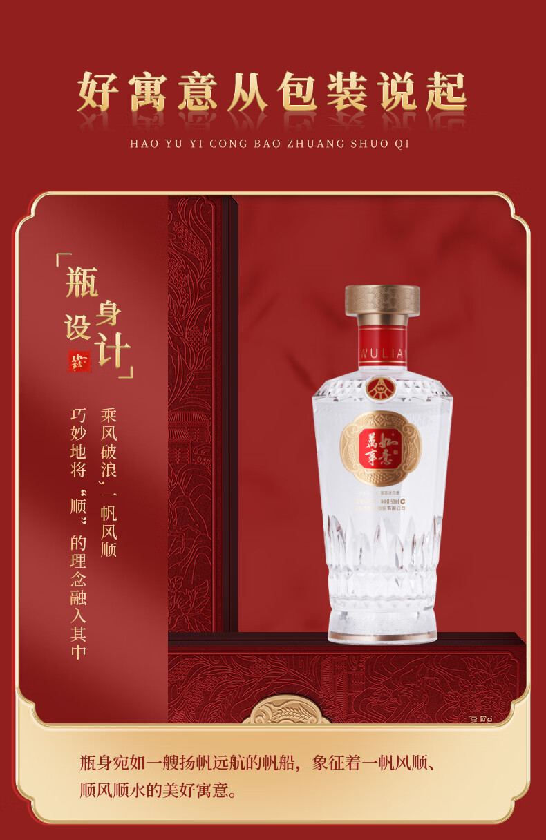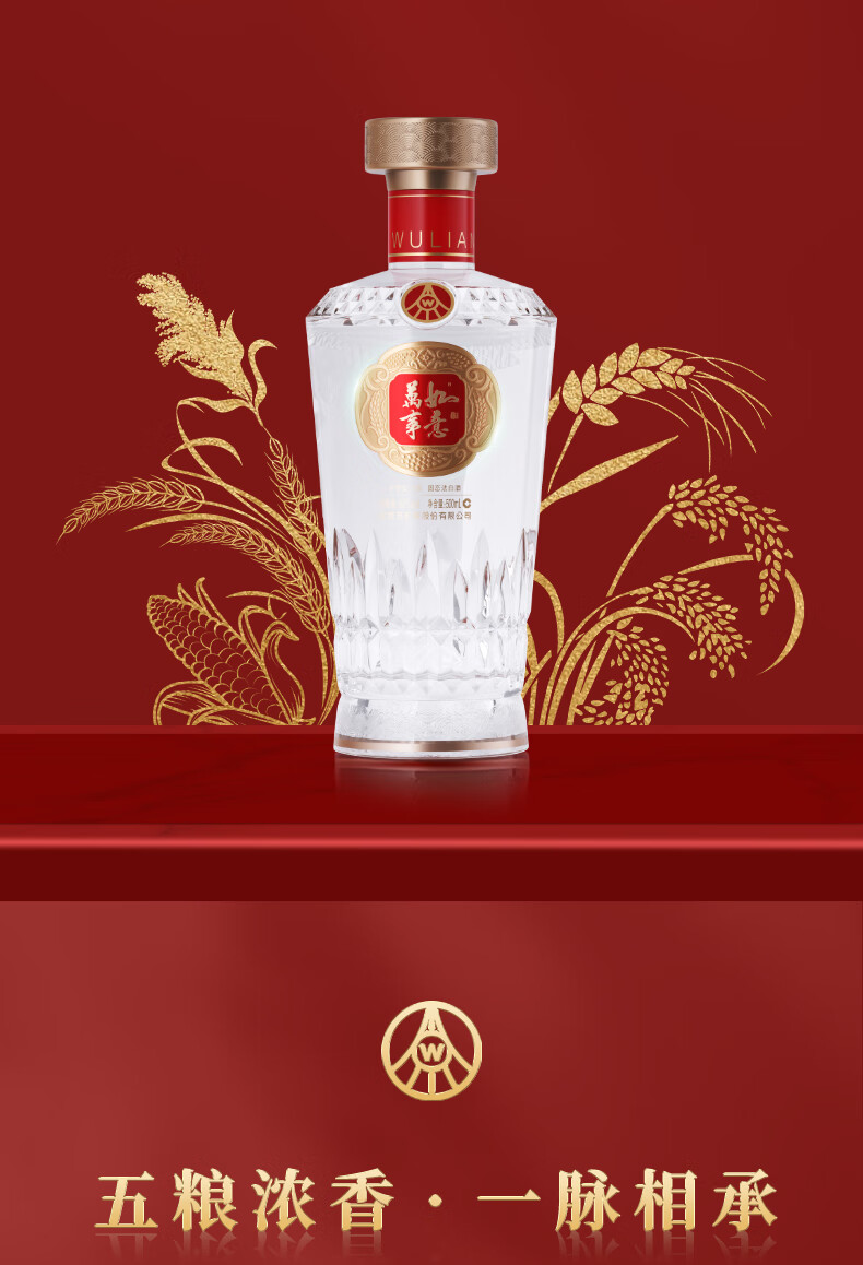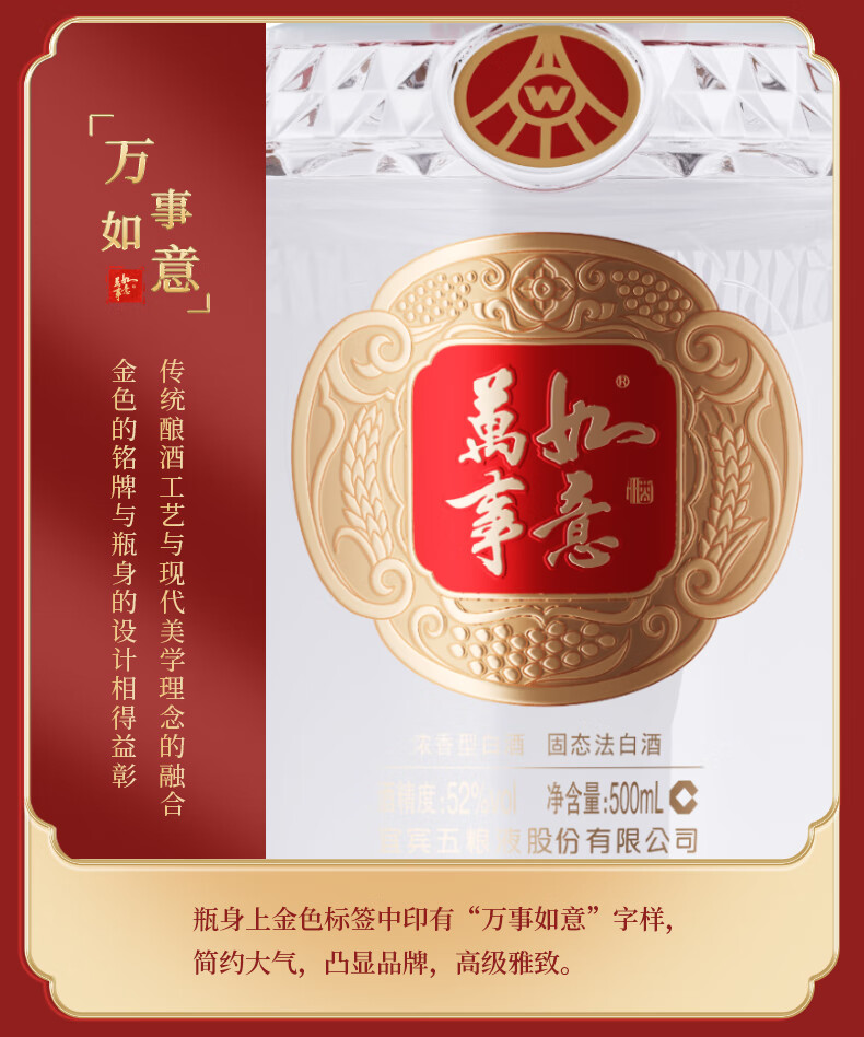 五粮液万事如意福顺浓香型纯粮食白酒 52度500ml×2瓶