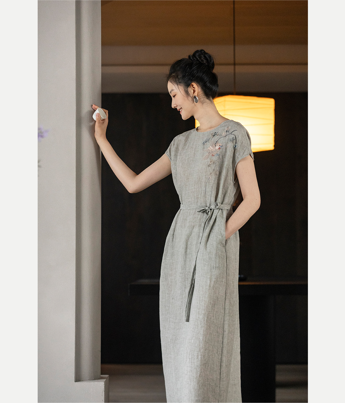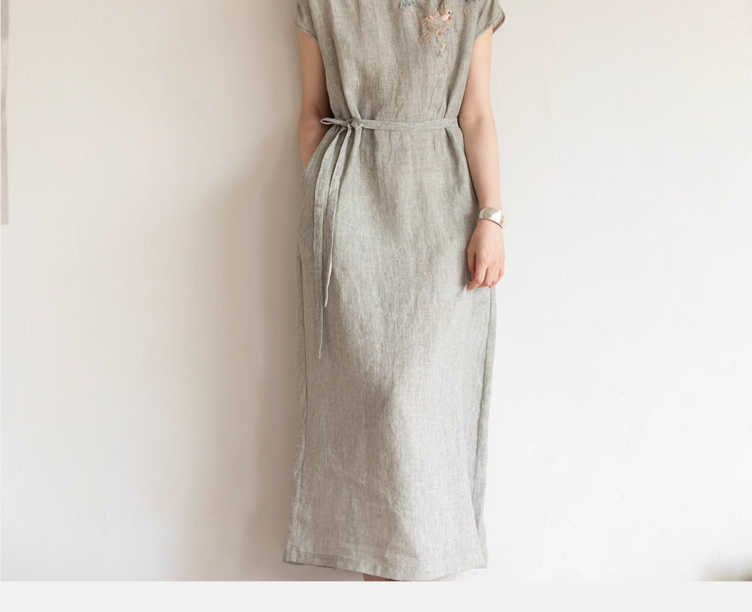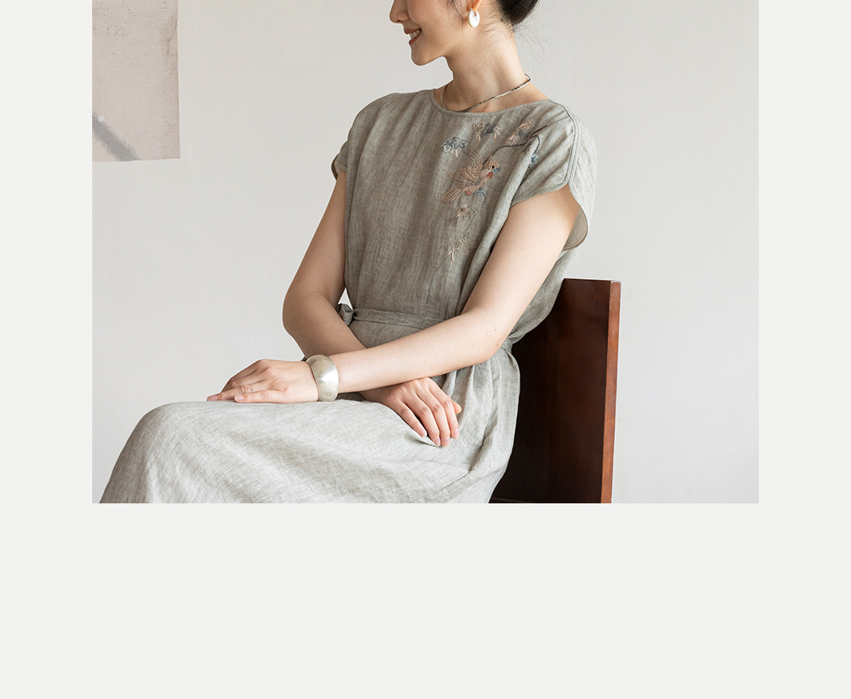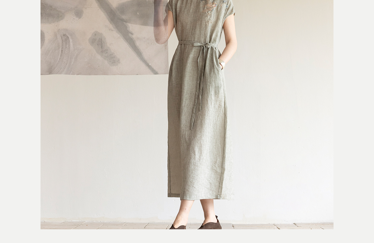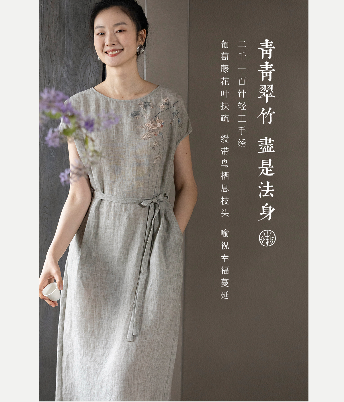牧衣游原创 手工刺绣炒色汉麻连衣裙轻薄柔软质朴宽松长裙 孟津