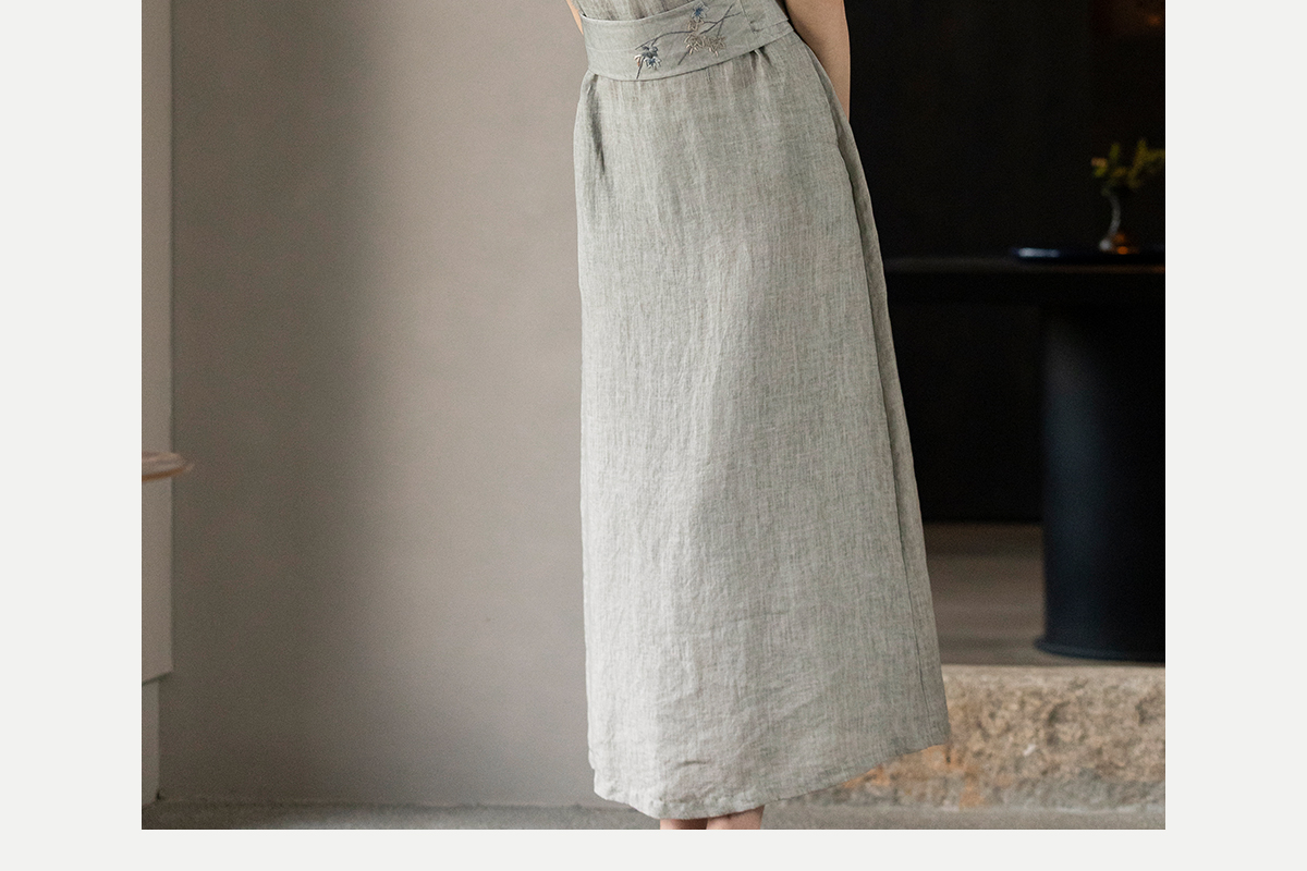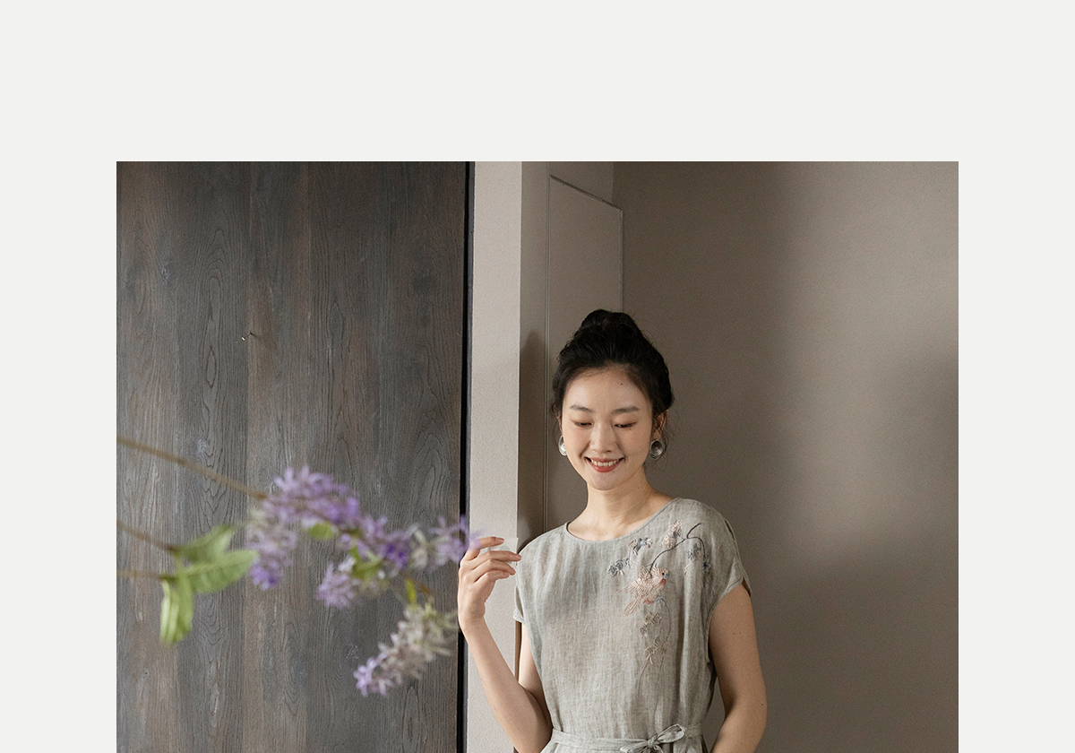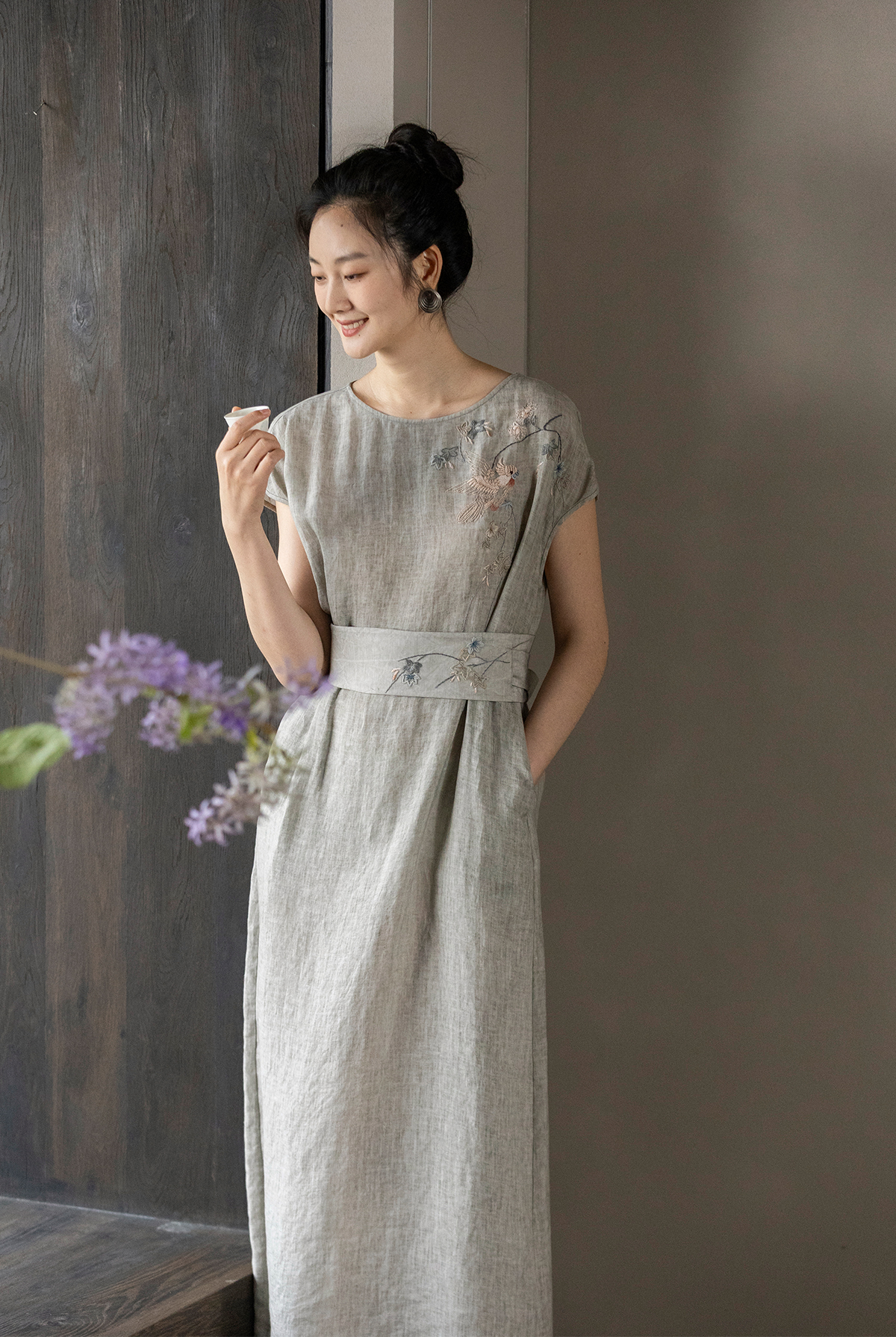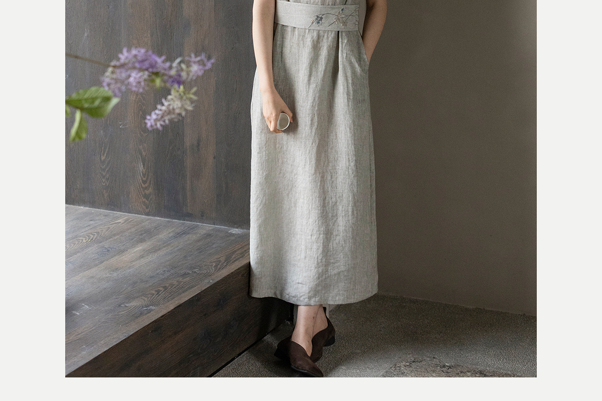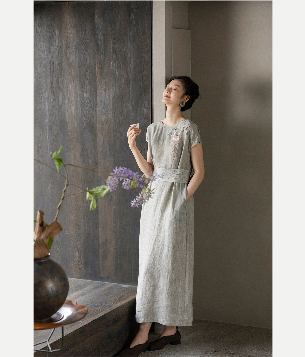 牧衣游原创 手工刺绣炒色汉麻连衣裙轻薄柔软质朴宽松长裙 孟津