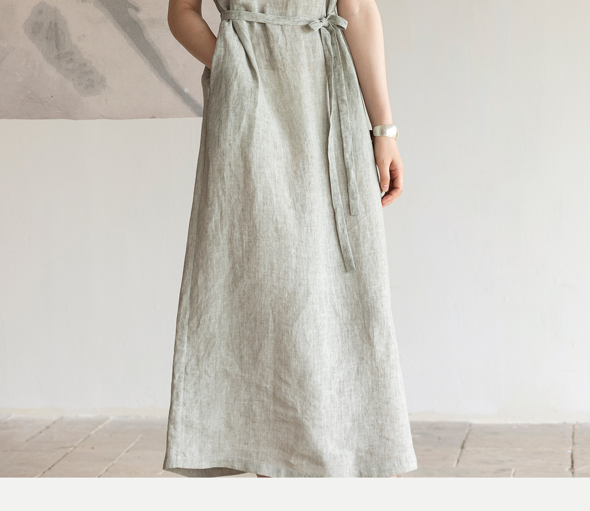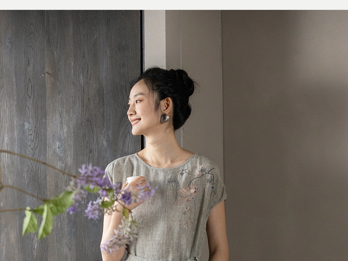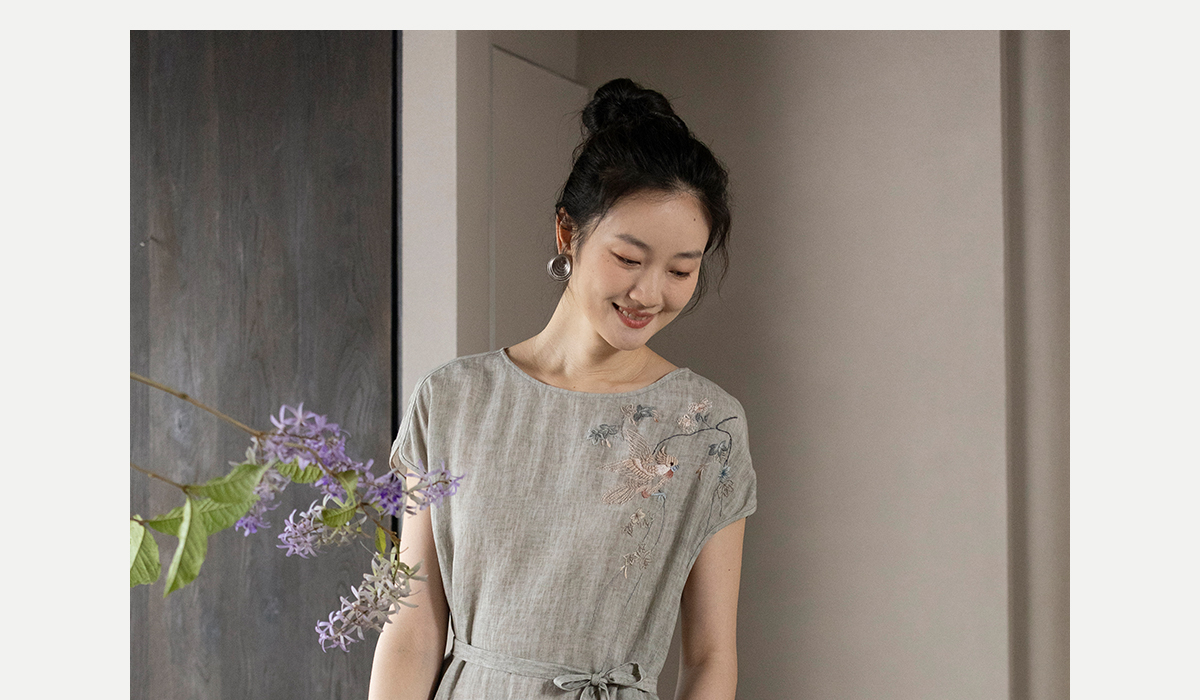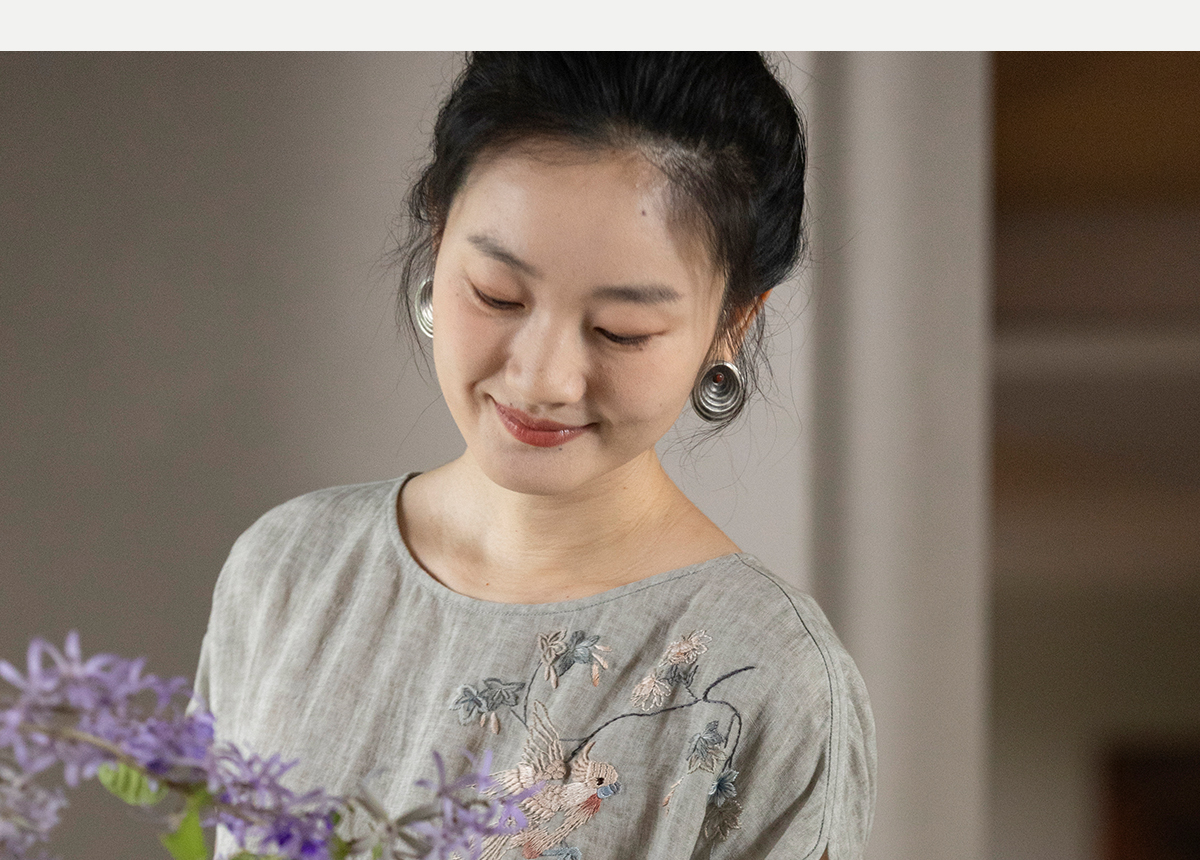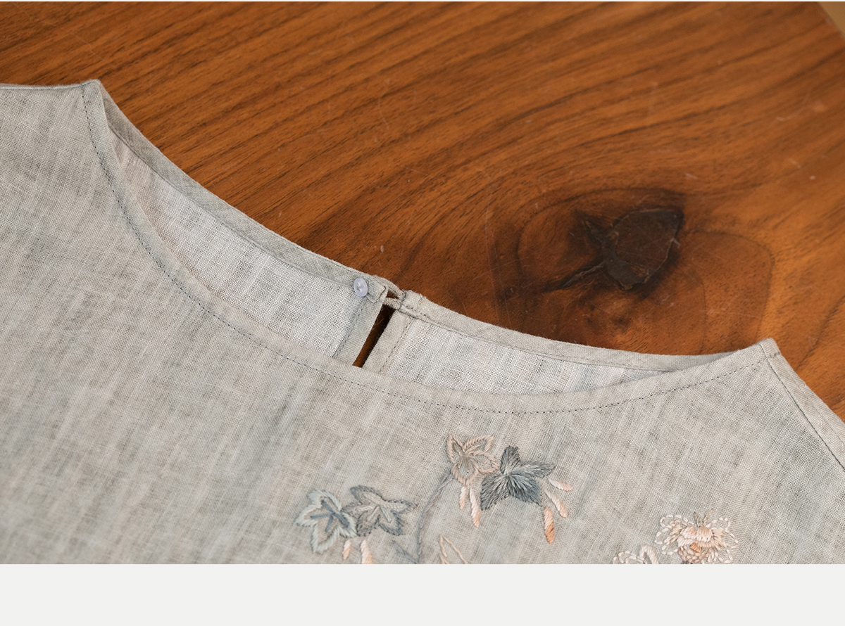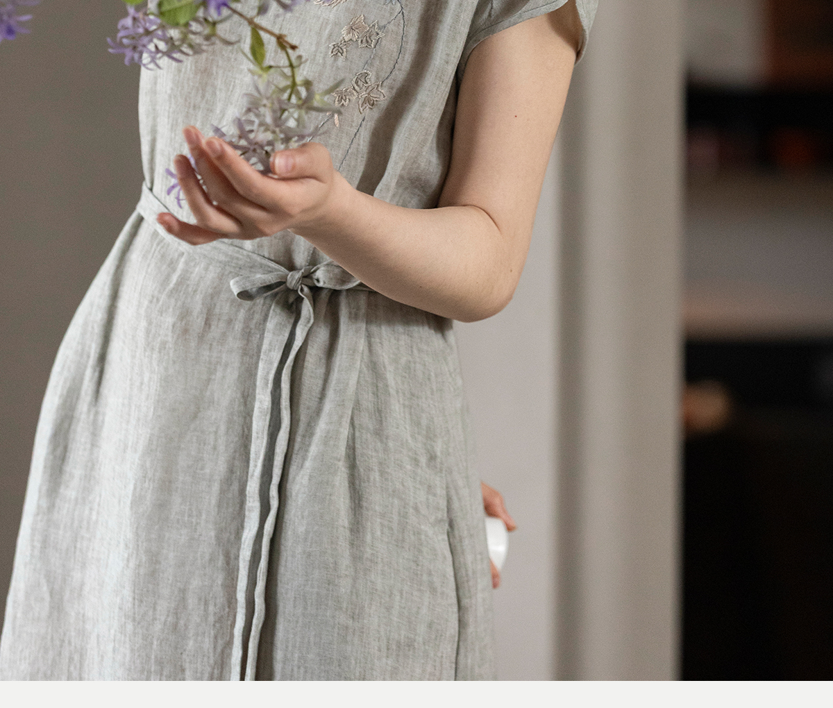 牧衣游原创 手工刺绣炒色汉麻连衣裙轻薄柔软质朴宽松长裙 孟津