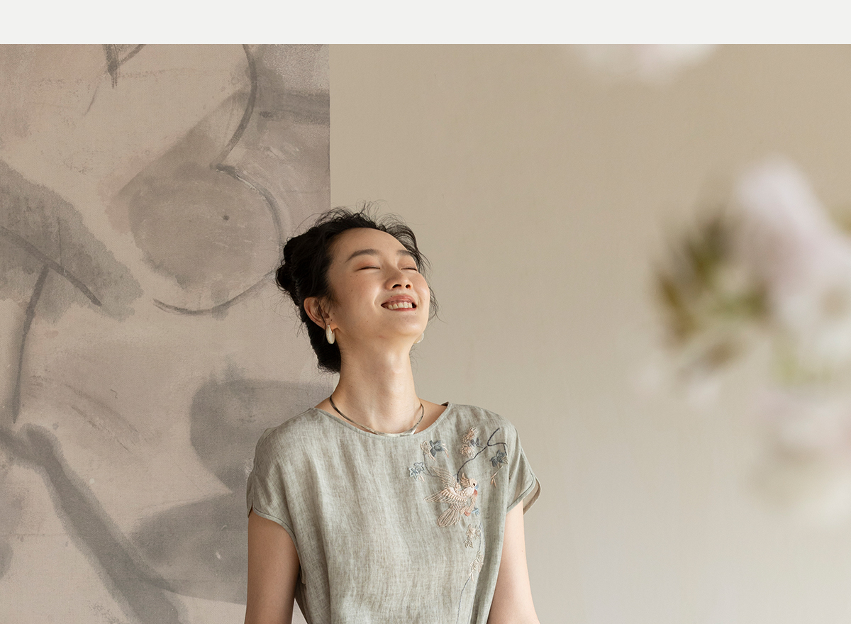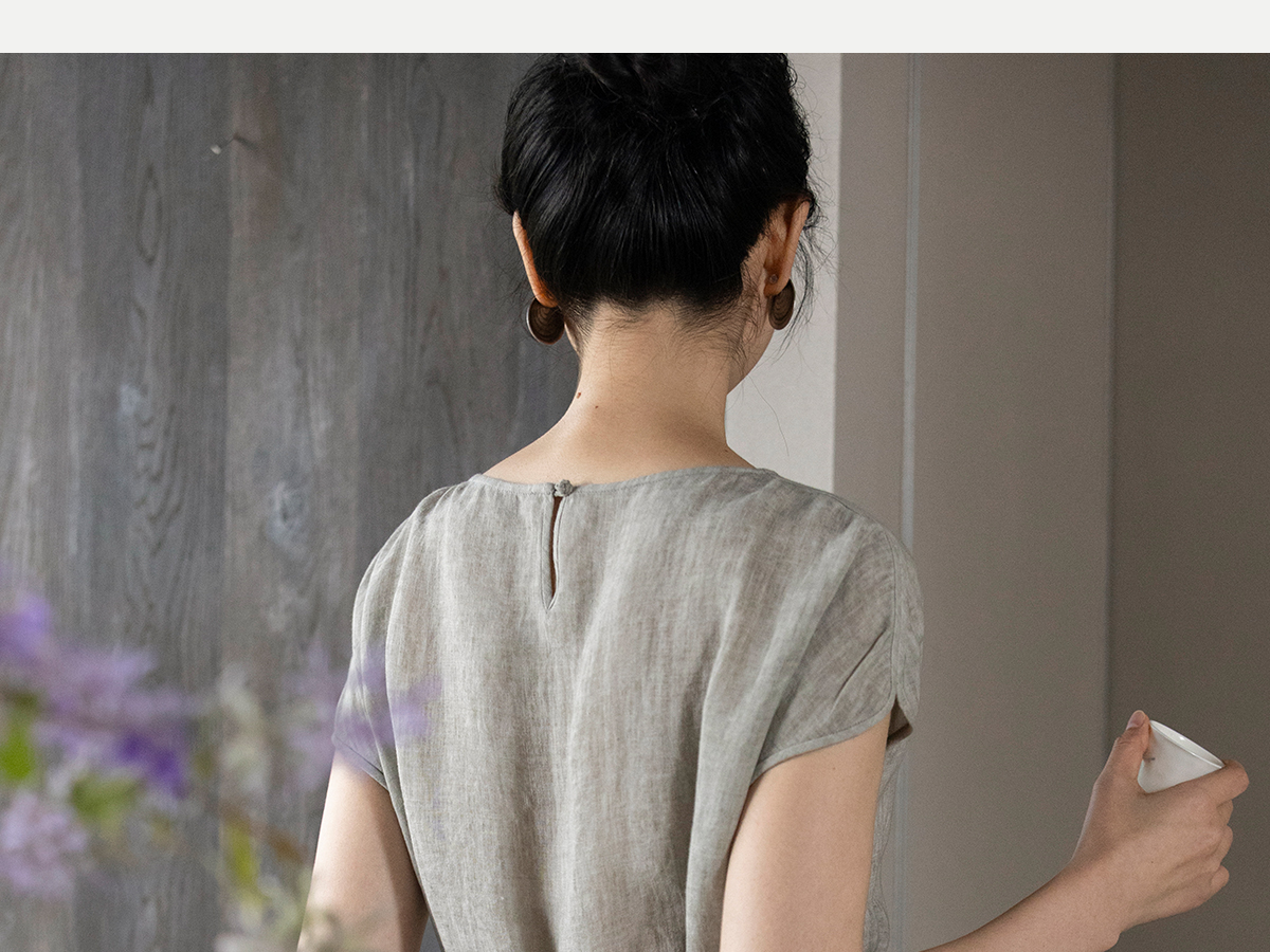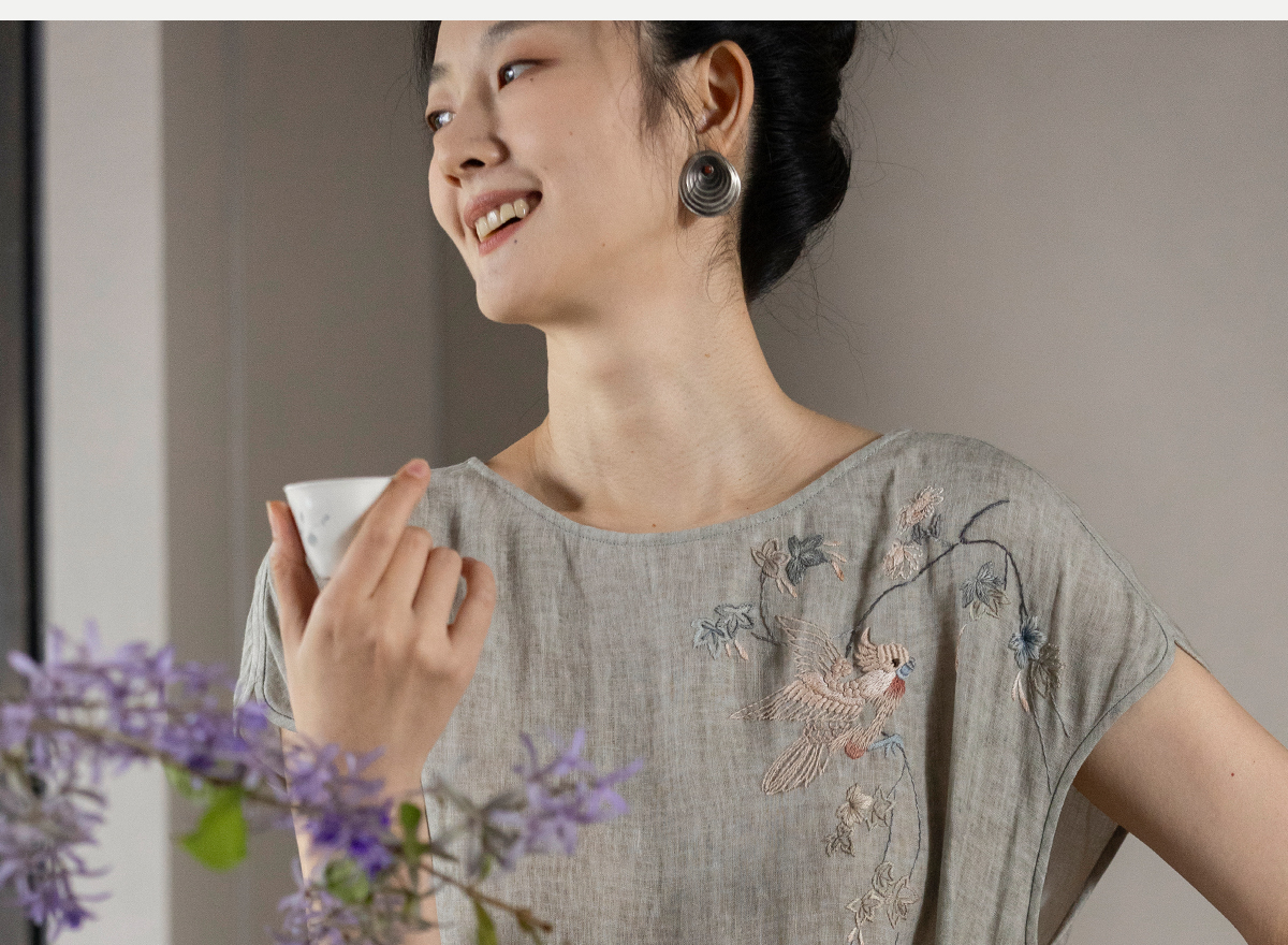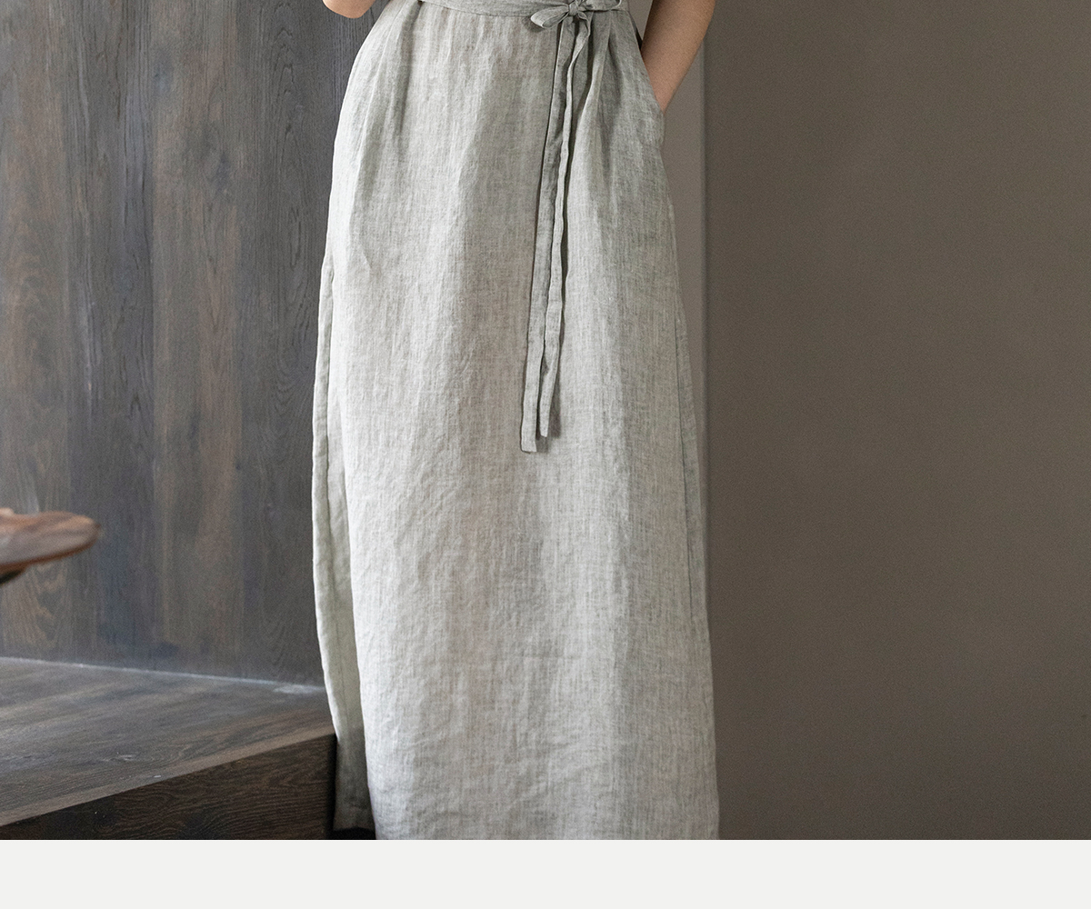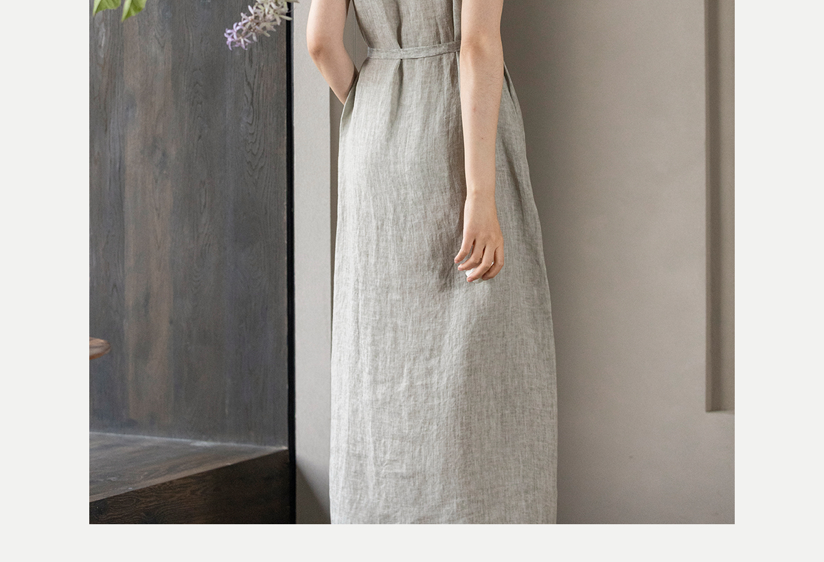 牧衣游原创 手工刺绣炒色汉麻连衣裙轻薄柔软质朴宽松长裙 孟津