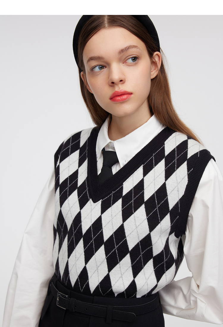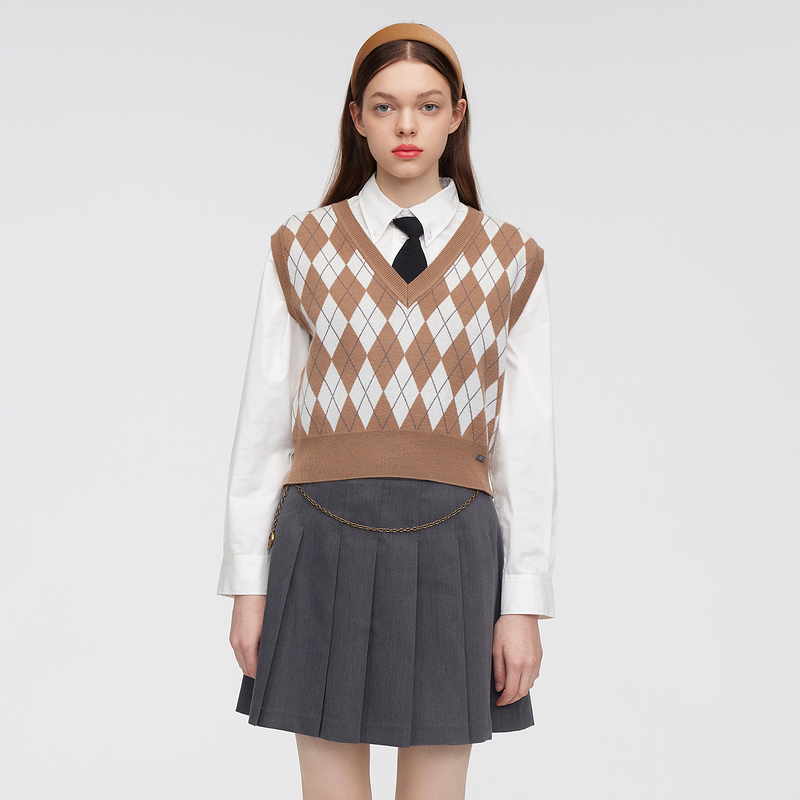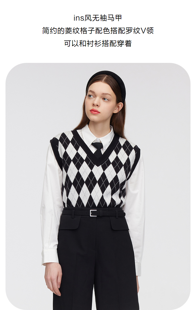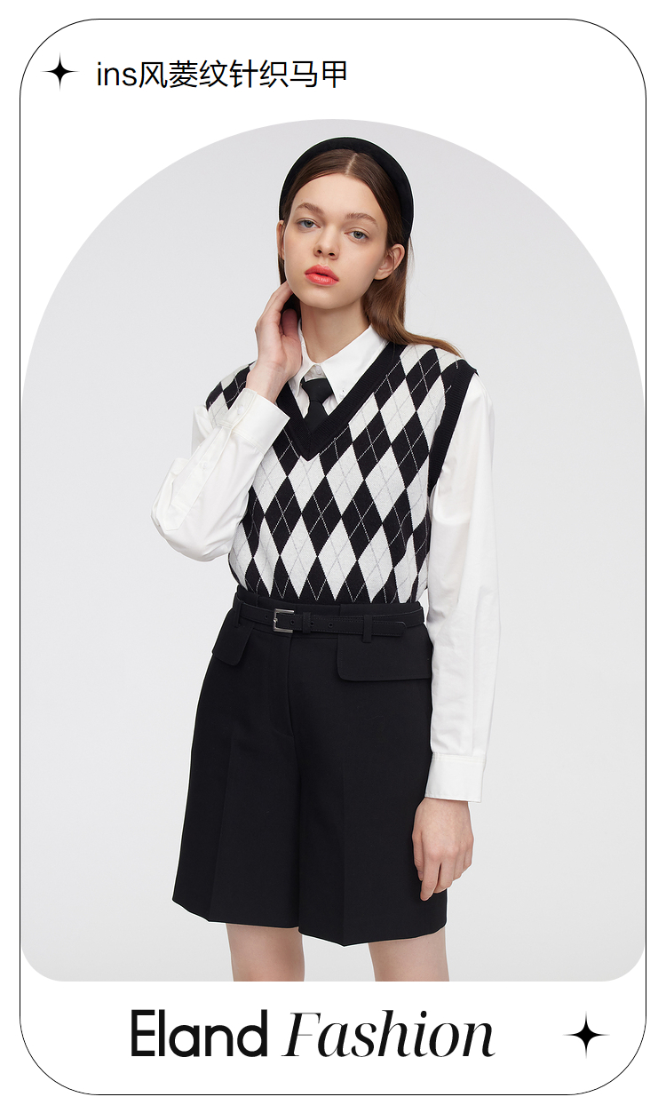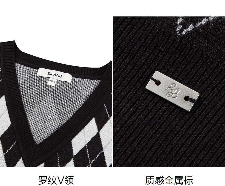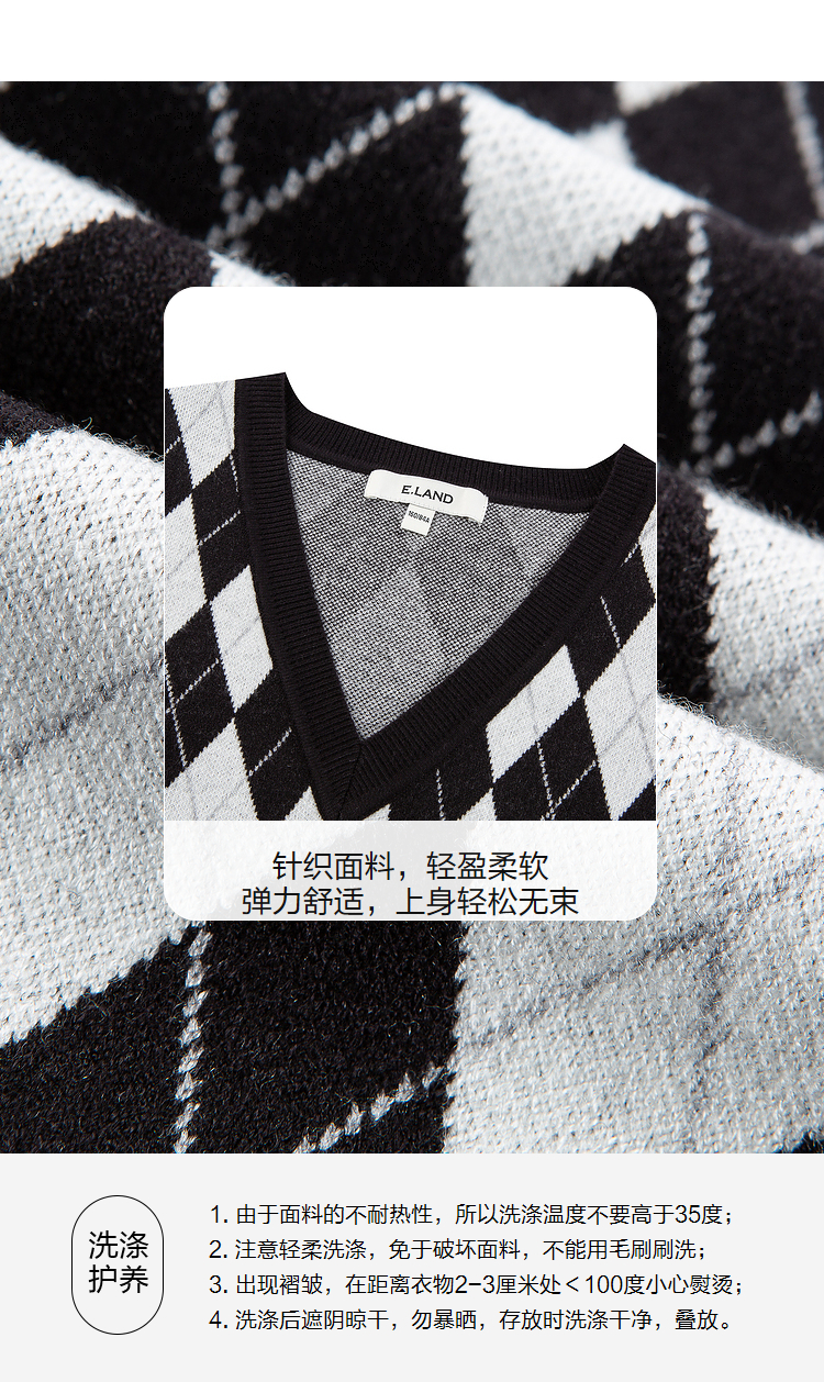 ELAND衣恋简约格子针织马甲EEVKC12H1C