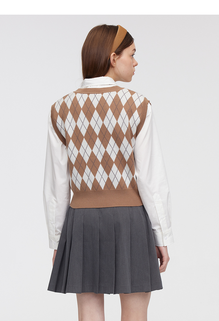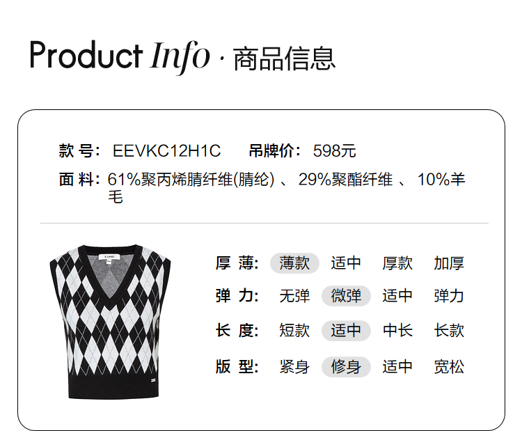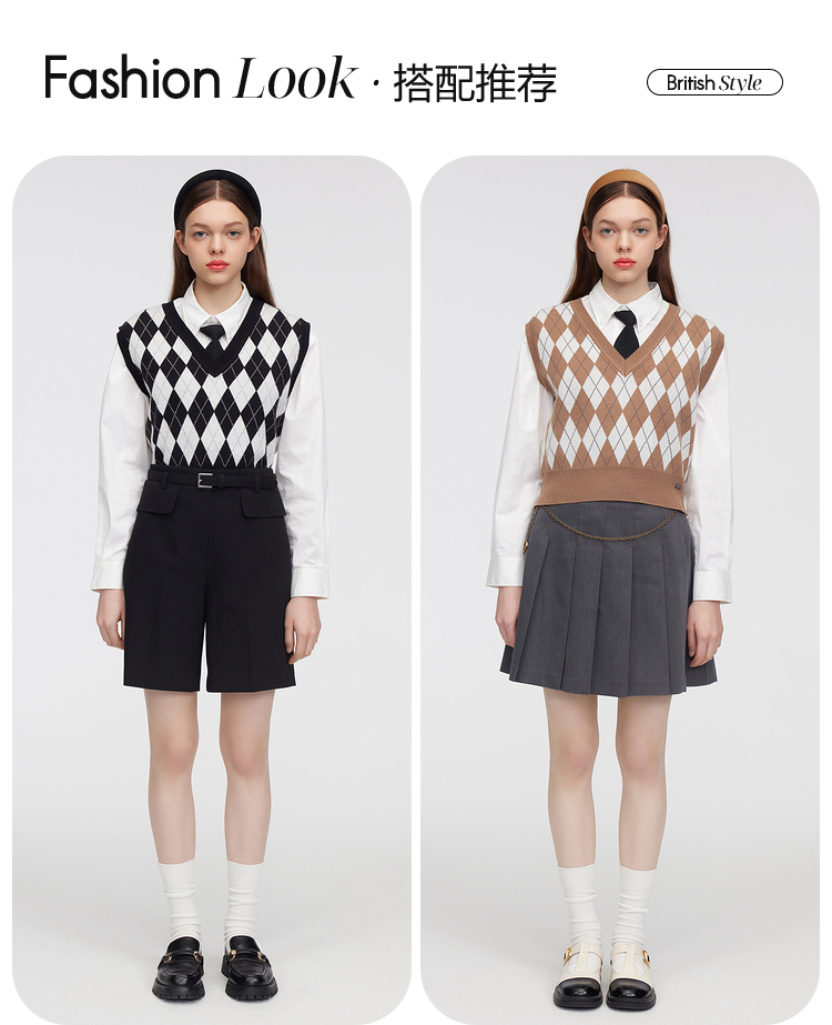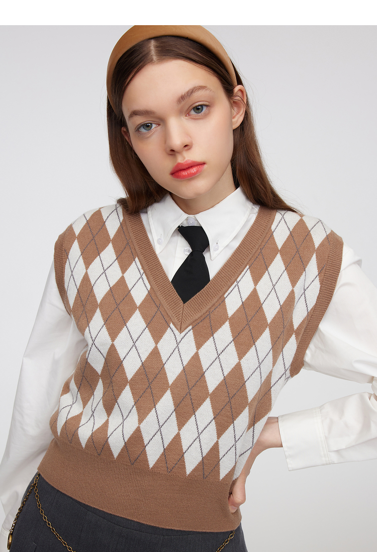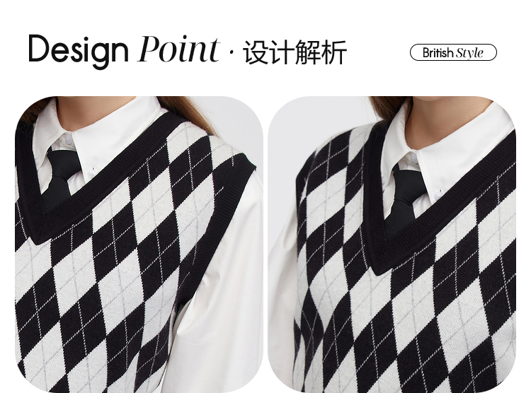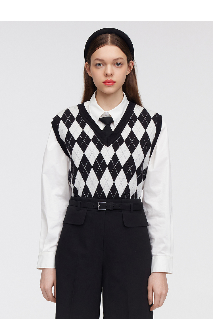 ELAND衣恋简约格子针织马甲EEVKC12H1C