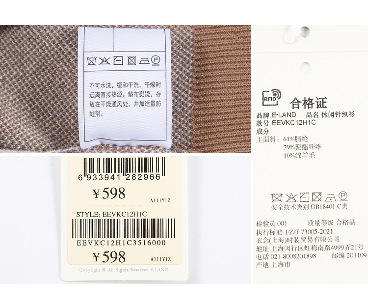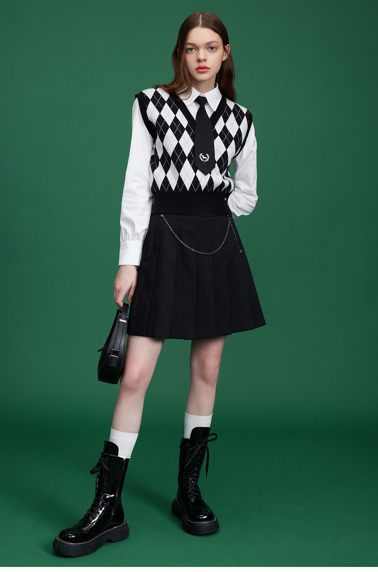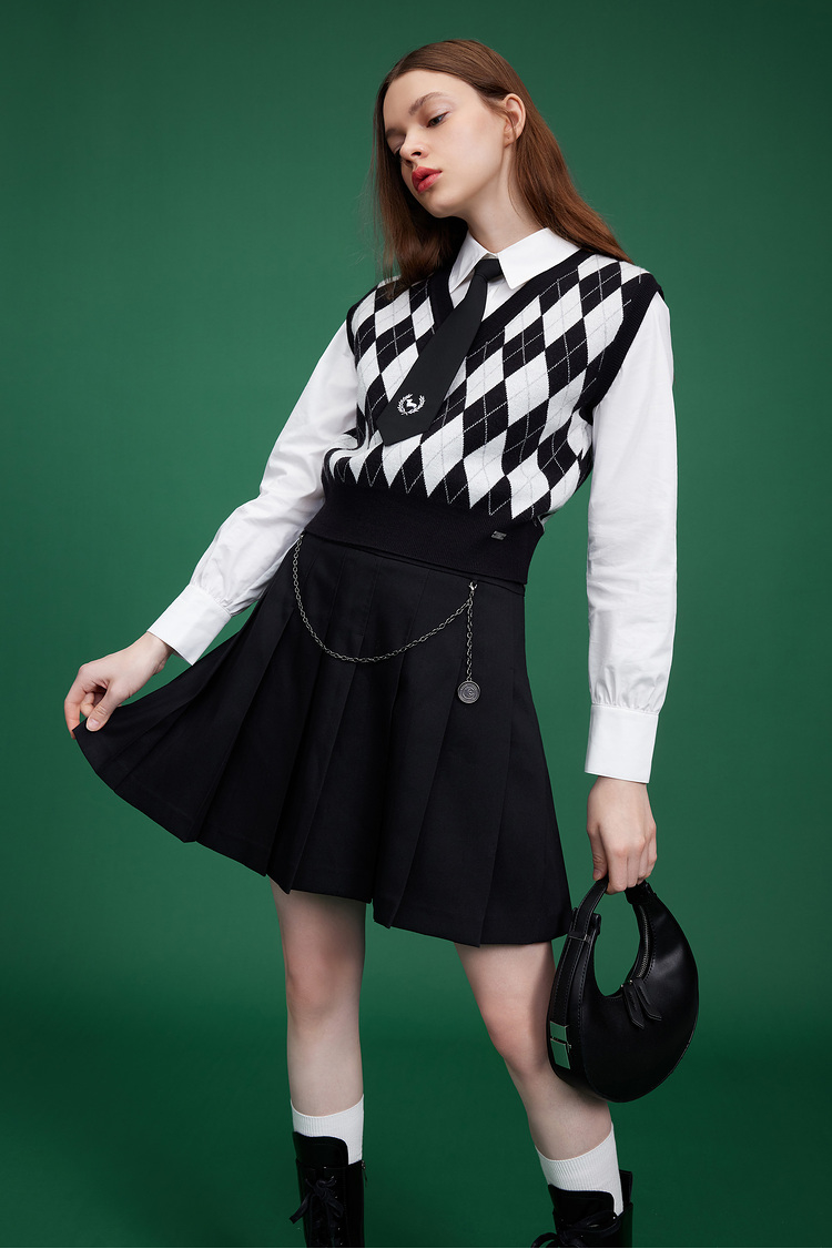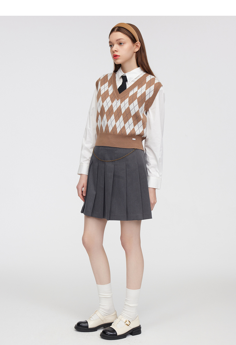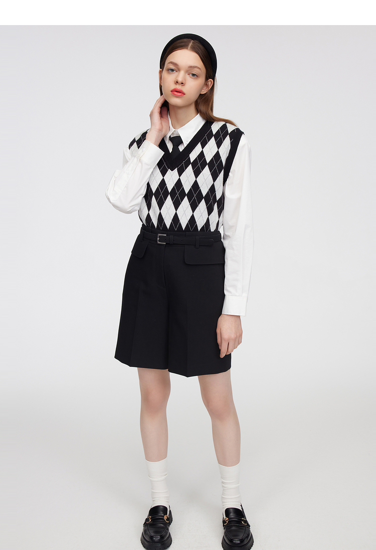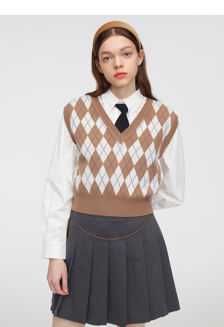 ELAND衣恋简约格子针织马甲EEVKC12H1C