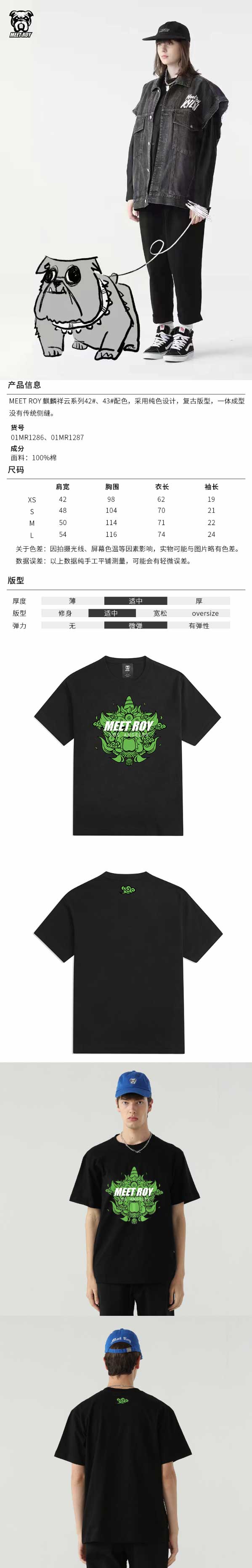 MEET.ROY麒麟祥云复古圆筒圆领无缝短袖T恤男011286MR