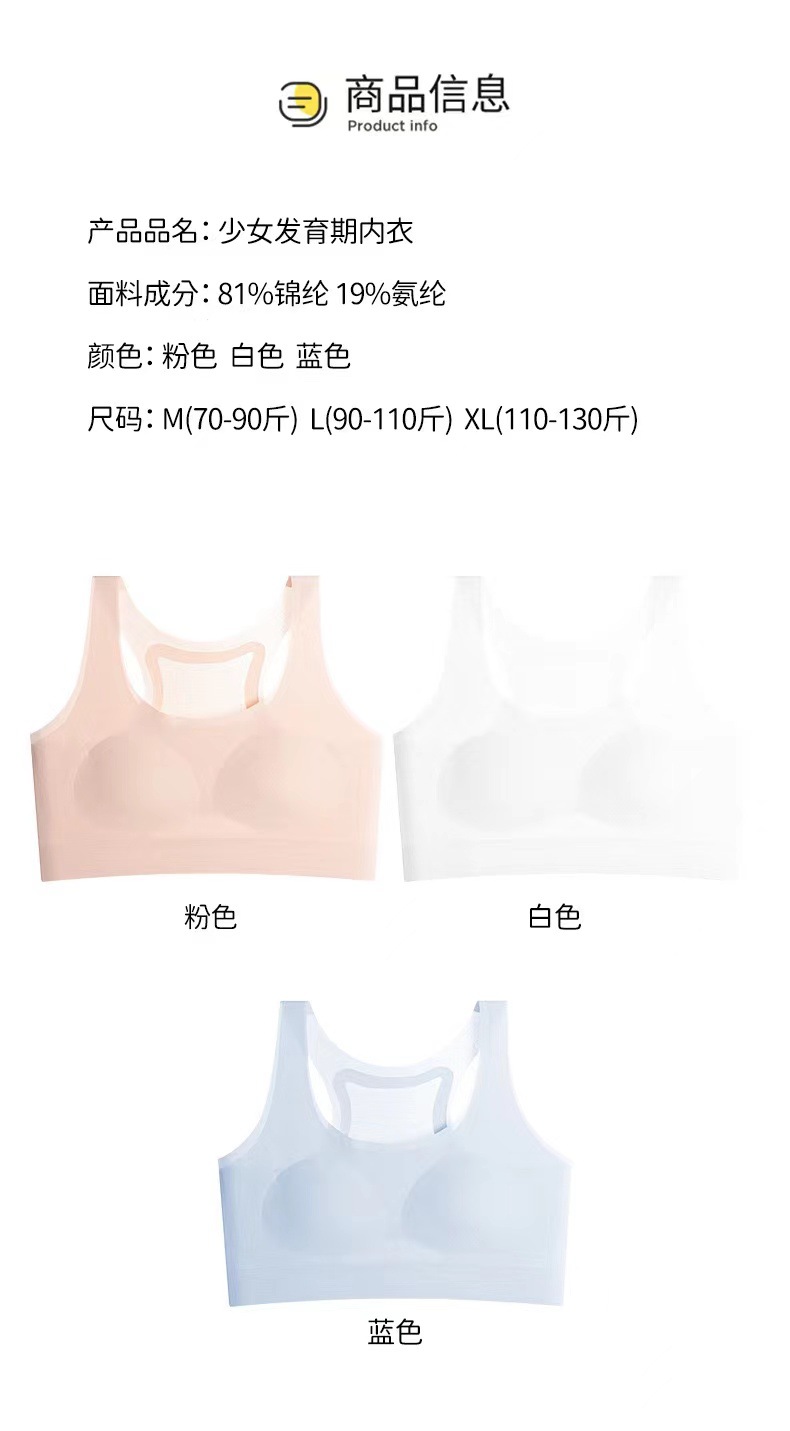 买一送一0感无痕少女初高中生发育期内衣女生无钢圈透气运动美背背心文胸