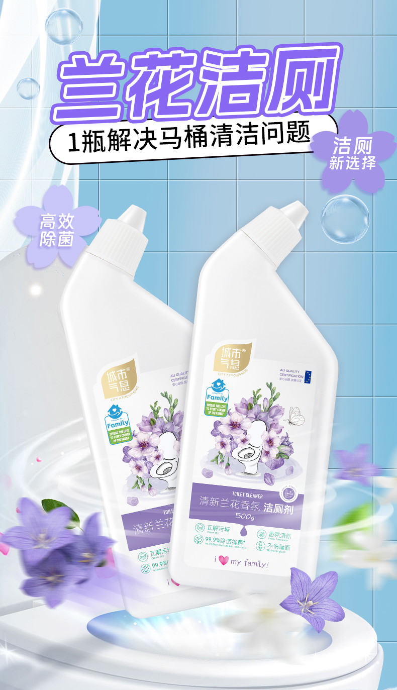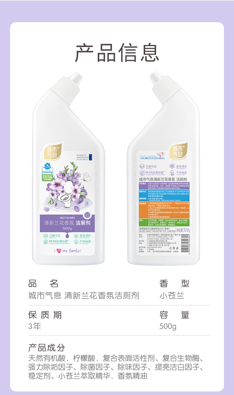 【到手5瓶,洁厕4+1】城市气息 清新兰花香氛洁厕剂500g*4瓶+阳光松木强效洁厕剂 500g*1瓶