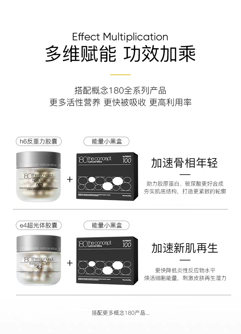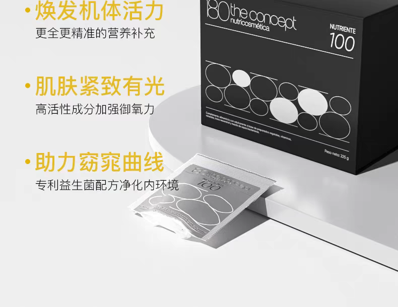 180 the concept由西班牙抗衰老和营养分析专家Gema Cabahero于2010年在西班牙创建品牌专注于美容配方保健。是西班牙各界社会名流时尚达人首选口服抗衰品 被誉为西班牙最佳美容食品