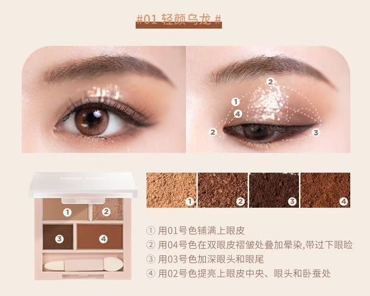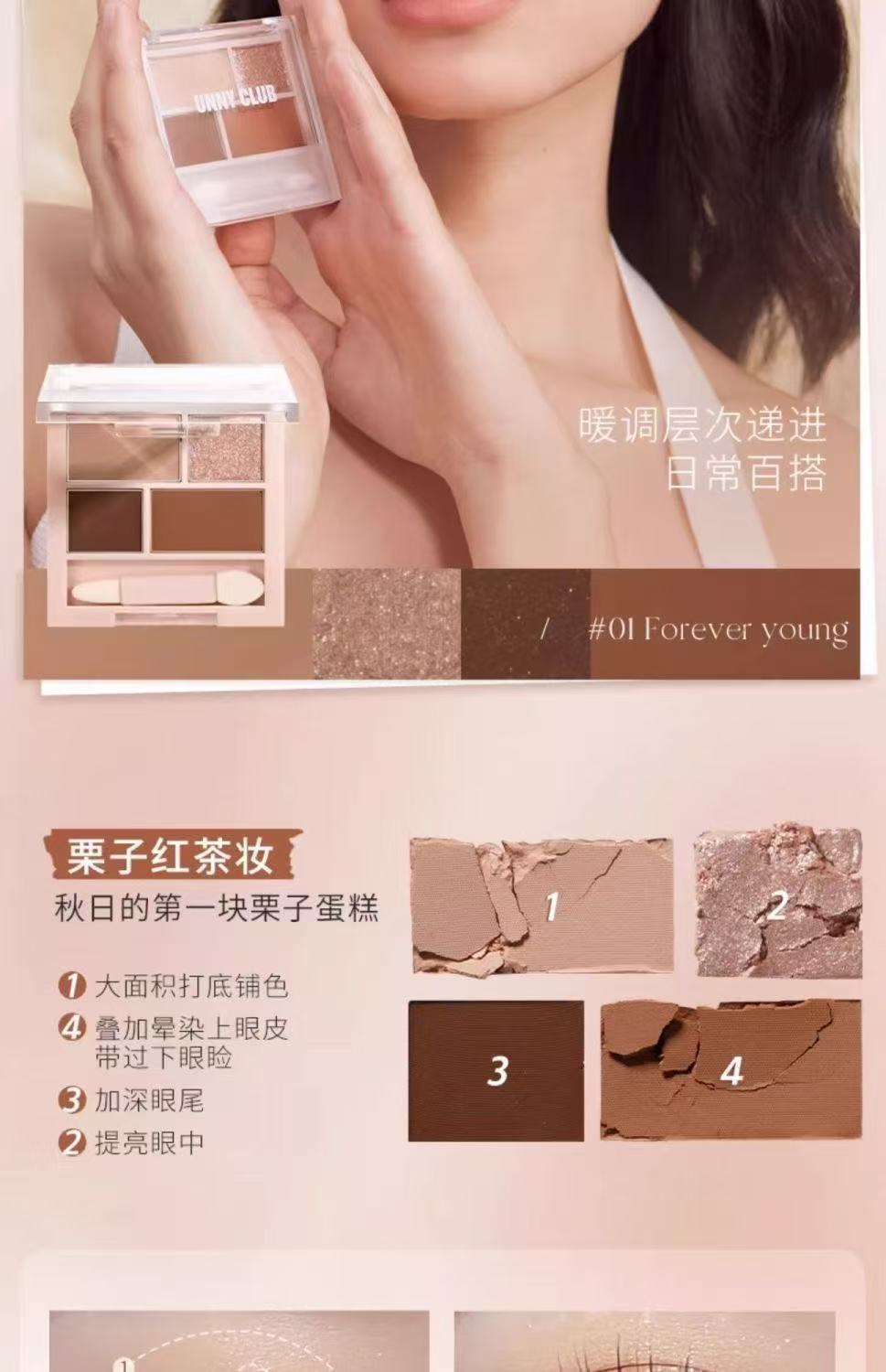 【特价清仓】unny悠宜柔羽焕彩四色眼影3g,效期:2027/3/26(全新产品 包装微瑕 不做退换 介意勿拍)