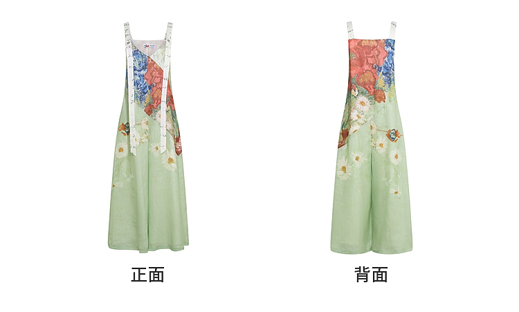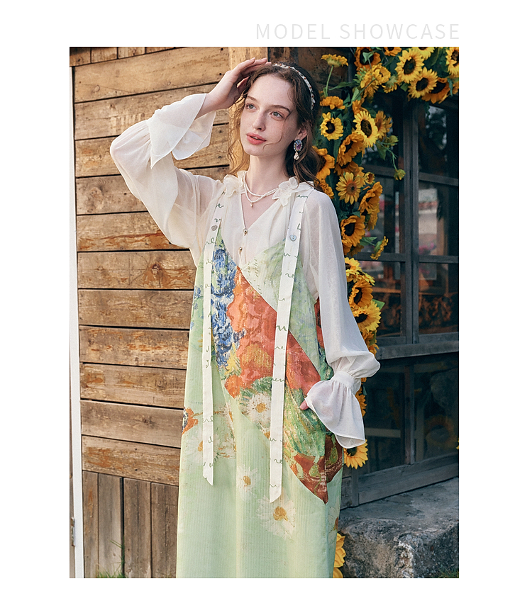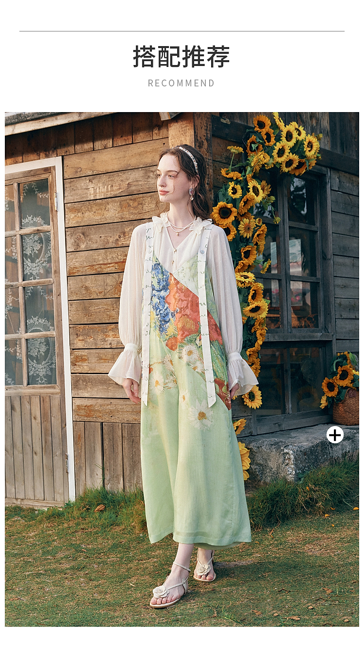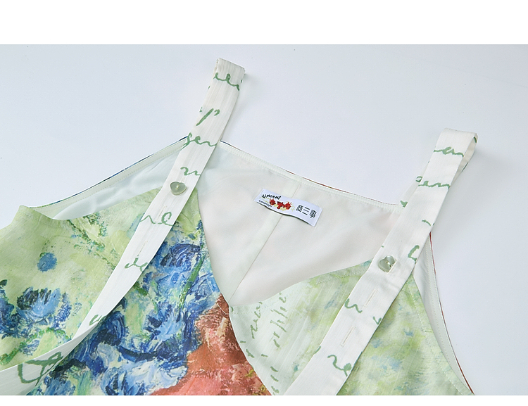 两三事 星隙独舞 2025夏季新款复古印花布拼接假两件吊带裙连衣裙